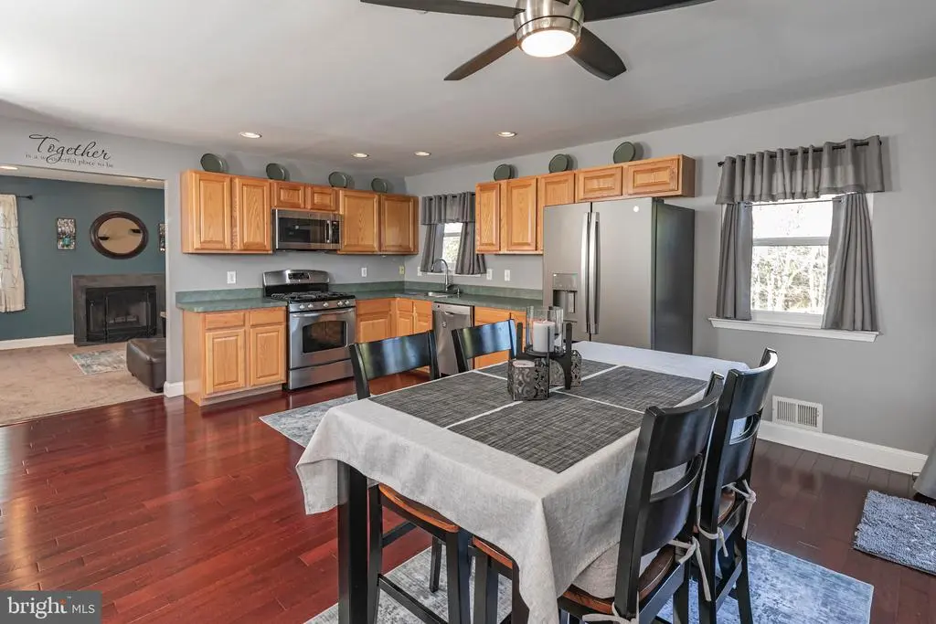 Nestled on a cul-de-sac backed by mature trees and greenery, this Beekman Manor home is perfect. Flexible floor plan is comfortable thanks to a warm modern palette and hardwood floors. Replaced windows let in loads of light, especially in the two-story foyer and open entertaining rooms. The roomy, eat-in kitchen equipped with stainless steel appliances flows out to a new, no-maintenance deck, overlooking the parklike yard, perfect for sipping morning coffee in the fresh air. A fireplace and recessed lighting let you customize the mood in the adjoining family room. You’ll find the powder room and laundry conveniently tucked away near the garage. Head downstairs to the finished basement offers plenty of storage, is perfect for play time or a workout that can be squeezed into a hectic schedule. Upstairs, double doors introduce the primary suite, offering a large walk-in closet, with a newly renovated bathroom and modern vessel sinks, backed by hexagonal tile, a big soaking tub, a separate shower behind frosted glass. A neutrally tiled hall bath serves three more bedrooms. With a prime lot, ample indoor space and smart improvements, this home is the perfect spot for your next chapter! Short distance to Greenbrook elementary and Blue Ribbon Schools. Close to Rt 1, 27, NJ Turnpike, Garden State Parkway, Rutgers University, RWJ Hospital, great restaurants and shopping. Improvements to the home include: newer refrigerator, newly renovated primary bath, replaced windows, custom shades throughout, newer front door, newer deck, epoxy garage floor, newer HVAC, new hot water heater, newer roof, extra insulation between garage and second bath for increased efficiency. App controlled - Ring ready, security system, front door key pad, motion lights. (Some photos include virtual staging.)
