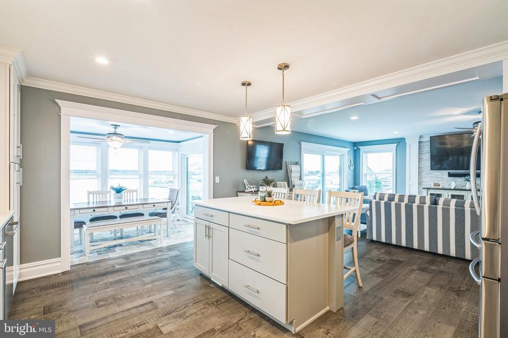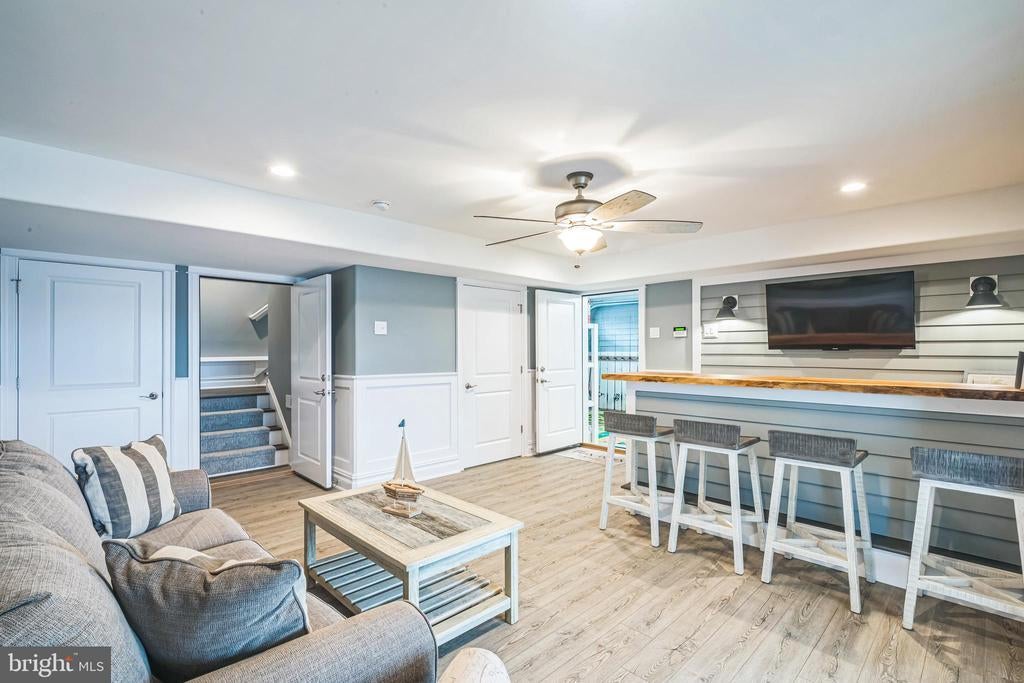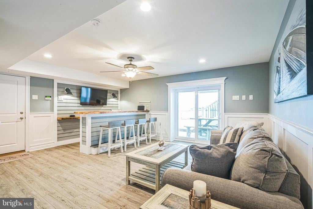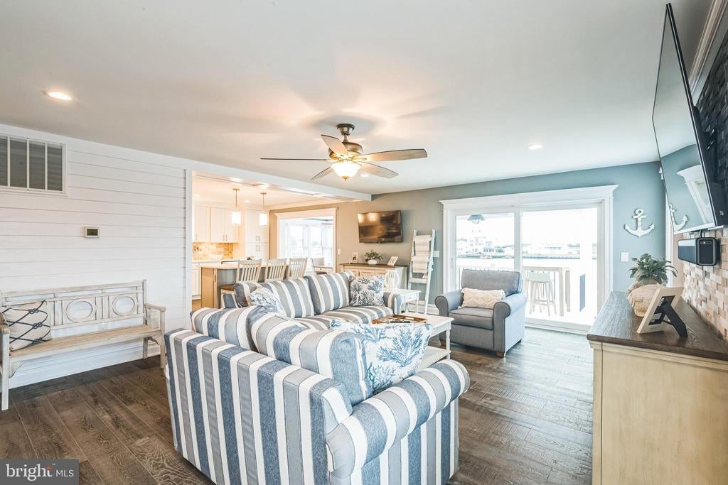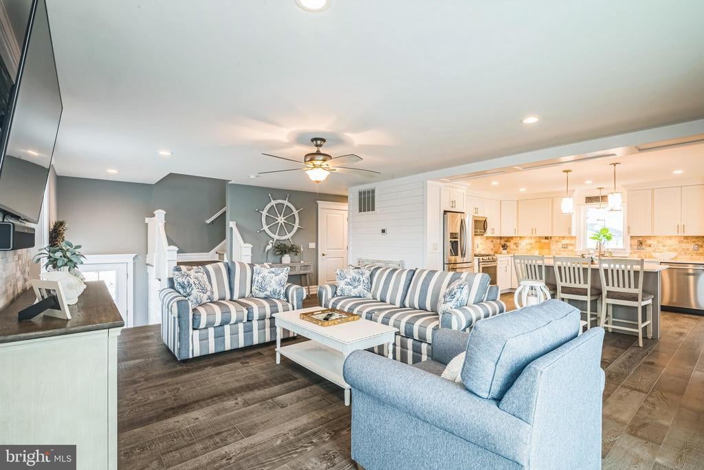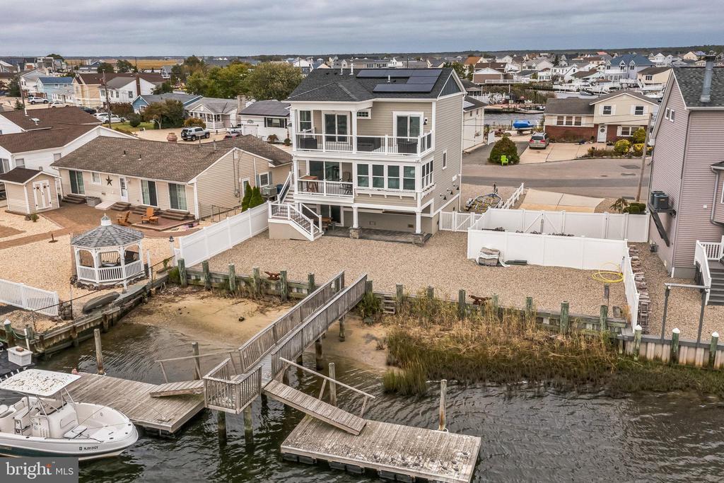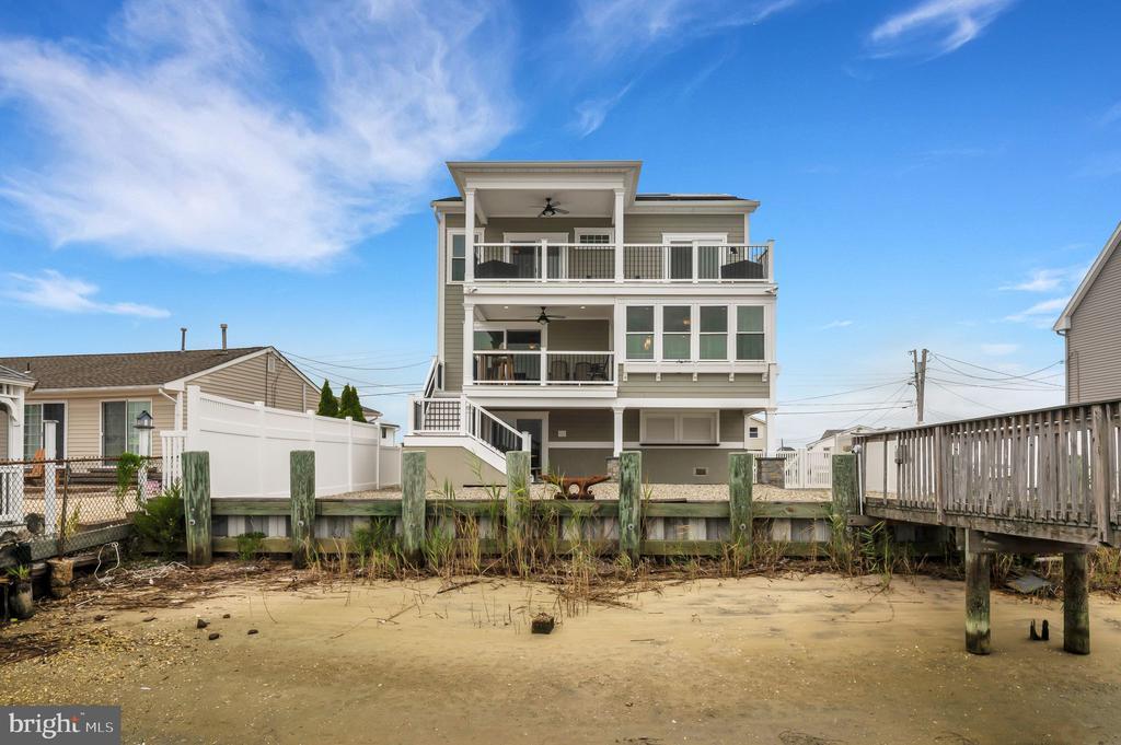 WATERFRONT! LOCATION! THIS IS IT! The one you have been waiting for. Coastal living at its finest with deep water lagoon and channels to the inlet. Everyday here is a vacation – the best panoramic views on the island from the entire rear of the home. This stunning waterfront home custom built by builder as his personal resort with the best of materials throughout. Breathtaking lagoon and bay views and an abundance of natural light throughout. Custom kitchen with large center island, quartz countertops, and stainless-steel appliances overlooking the great room and solarium dining room. Step out of the dining room or great room onto a spacious, partially roofed fiberglass deck across the rear of the home with access from the dining room and great room, all overlooking the bay/lagoon. Plank flooring throughout the entire home. Butler pantry off the kitchen and powder room. Upstairs is a master suite with a massive walk-in shower with multiple showerheads and heated tile flooring. 2 additional large bedrooms share a full bath with heated tile flooring. Hall laundry area with full size stackable washer/dryer and quartz countertops. A 3rd floor spacious fiberglass deck overlooking the lagoon can be accessed from the master suite and 1 of the additional bedrooms. The lower level is an entertainment room with a full bar. As you walk out the rear of the home is a paver patio the full length of the home with a service window to the interior of the home. Walkway to the 77’ bulkhead with 2 boat slips that were dredged to 7ft in 2021. The entire property front and rear is stoned for no maintenance. The entire exterior is maintenance-free James Hardi cement siding. Take advantage of modest electric bills with brand new Solar Panels. 9 Months electric averages $50/mo.