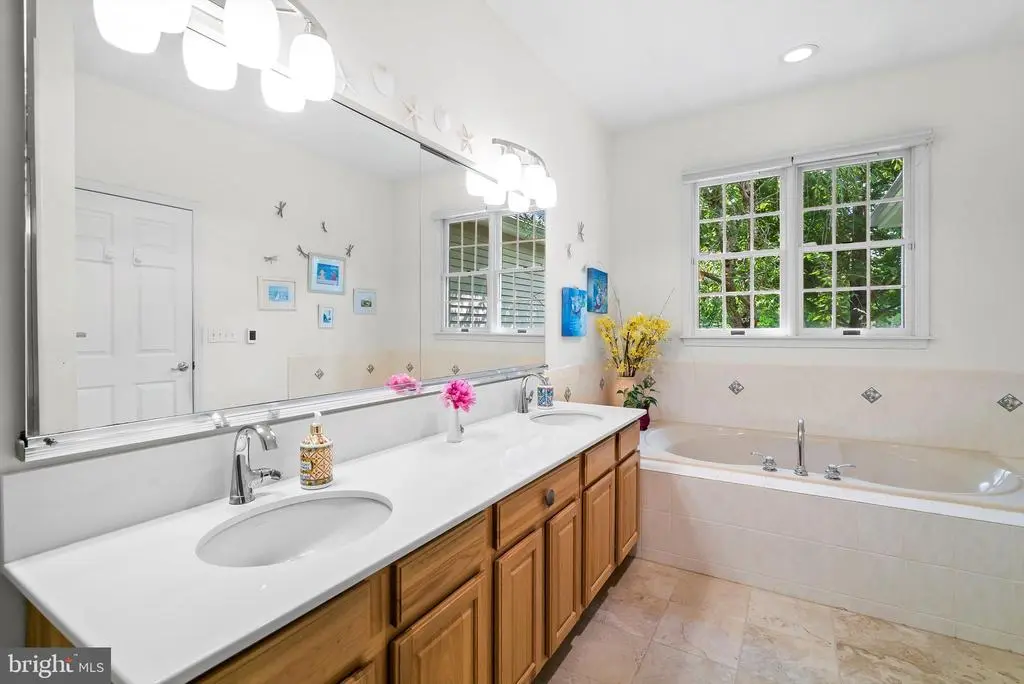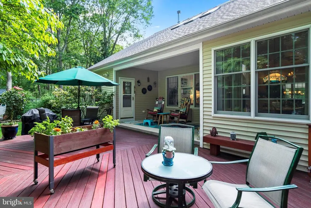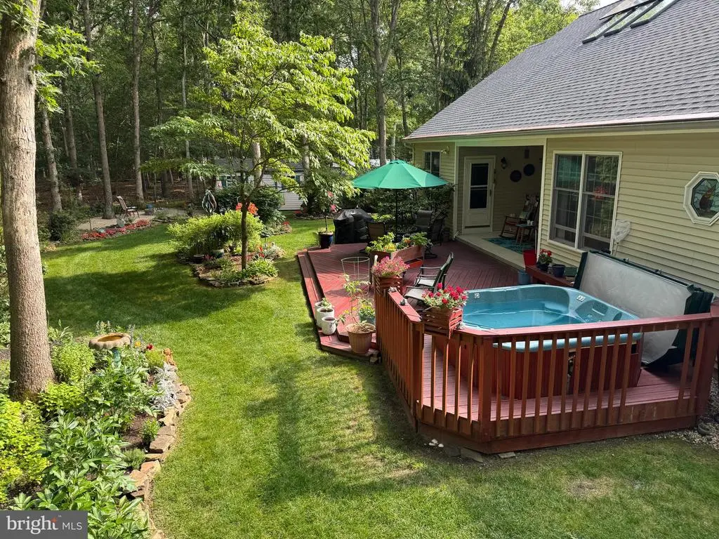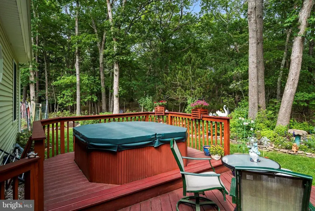 Exquisite home and bucolic location, offering privacy and a park-like setting, on nearly half an acre. Meticulously maintained by original owner with diligence and thoughtful upgrades. Ideal location for with easy access to the Parkway for commuters and LBI for beach lovers. Terrific one level living with an open layout centered around the living area with a magnificent volume ceiling, bathed in sunshine from the skylights. The primary suite is situated off one wing of the house, affording the owners a quiet sanctuary. Remote controlled electric shades shut out the light for peaceful sleep! The primary bath has a heated floor, soaking tub and double vanity. The adjacent bedroom is currently being used as a study. The other two bedrooms are located in the wing off the kitchen, along with a full bath and laundry room. A new roof and skylights were just installed this year and the HVAC system and water heater in 2024. The rear yard is an oasis with a 15' x 27' grade level deck and Jacuzzi hot tub plus a fire pit. There is also a shed providing additional storage. Other notable features include an oversized garage with 11' height that once housed an RV, an enormous attic with walk up staircase from the garage, solar electric panels.