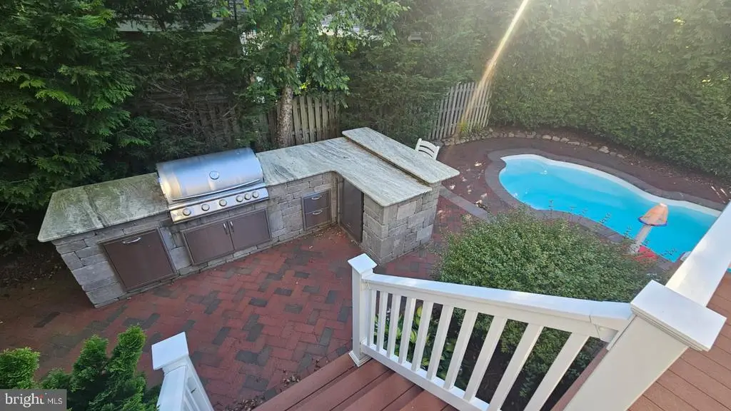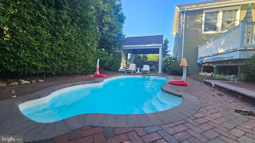 Step through the welcoming foyer into an airy, open floor plan. The kitchen features granite countertops, custom cabinetry, and a full suite of stainless‑steel appliances. It flows seamlessly into a generous dining area and a sun‑filled living room anchored by a gas fireplace and bespoke built‑ins. Sliding glass doors extend the living space outdoors to a beautifully landscaped side deck with a heated in‑ground pool and cabana. Upstairs, a versatile second family room accompanies spacious bedrooms, including a primary suite, plus two stylish full baths. Additional highlights include, covered front porch and rear patio, fully fenced yard and outdoor shower, direct‑entry garage with abundant storage.