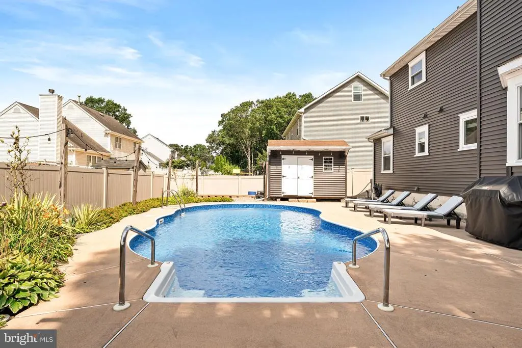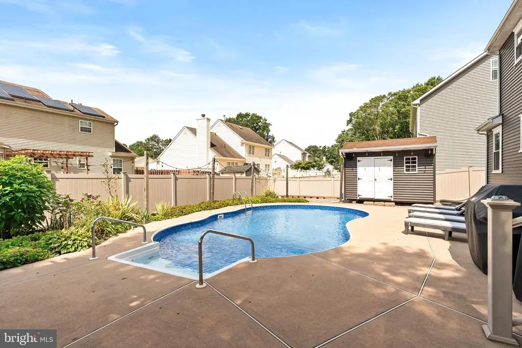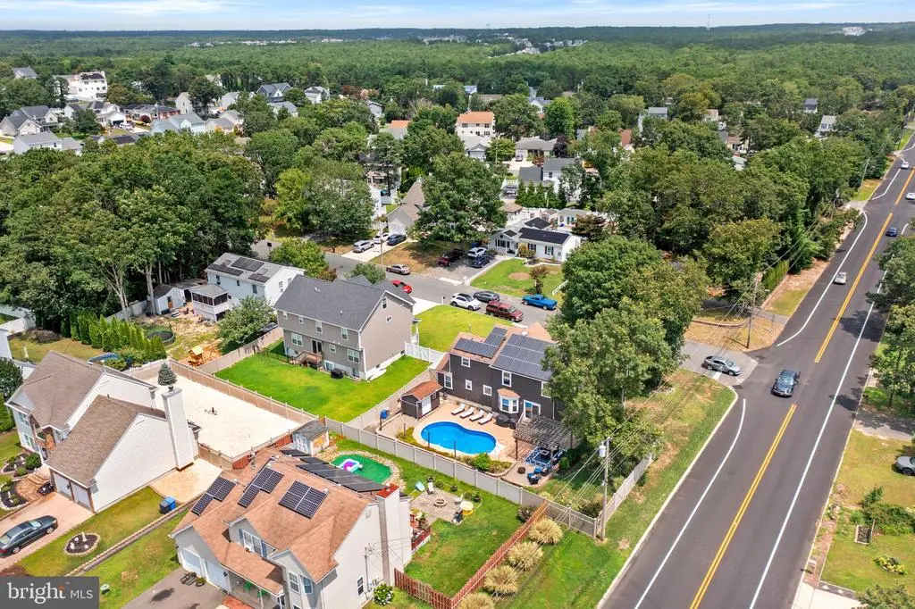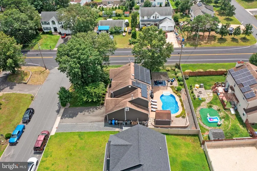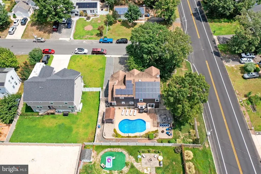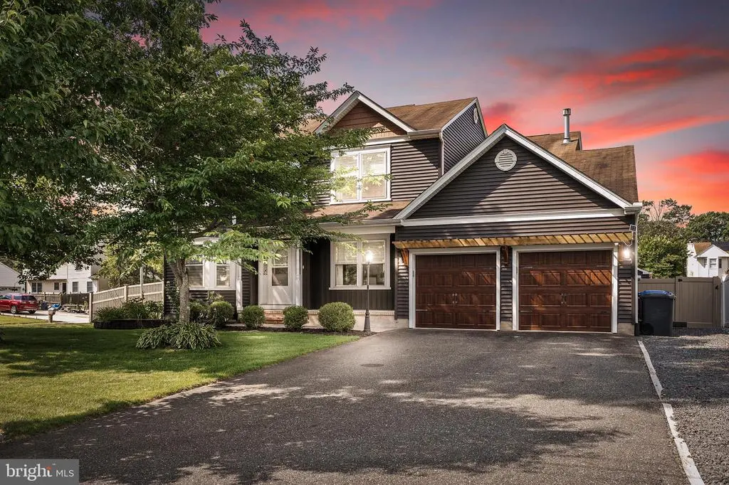 This five bedroom, three full bath coastal Colonial home radiates curb appeal featuring dark gray siding, crisp white trim and warm cedar accents. A charming front porch with an arched window adds a welcoming touch, while wood-look garage doors and decorative lighting highlight its elegance. The manicured lawn, neat landscaping and classic lamp post complete the picture—making this home as inviting outside as it is inside. You are whisked through the ornate front door to find fresh paint and new luxury vinyl flooring throughout. Behind French doors, an elegant home office impresses. Just steps away is a sun-drenched open-concept living room with sliding doors to the backyard, a bright breakfast nook and gorgeous kitchen remodel. This renovation boasts an expansive center island, full-slab Quartz counters and backsplash, full-height, soft-close cabinetry with custom storage and organization solutions at every turn, stainless steel appliance package, modern under-mount sink and convenient pantry. A formal dining room rounds out the entertaining space while the corner of the home features access to the two-car garage with plenty of storage and a workbench, main-level laundry, a hall closet complete with charging station for all your appliances as well as a bedroom (currently being used as an office) and full bathroom ideal for guests or multigenerational living. Upstairs, three newly carpeted bedrooms share a hall bathroom on one side of the floor while the primary suite of your dreams awaits on the other. This expansive personal retreat features a vaulted ceiling over the bed area, a walk-in closet and a luxurious bathroom remodel featuring frameless glass shower, soaking tub, water closet with modern floating toilet and a dual quartz vanity below a grand illuminated wall mirror with defogger function. Lastly, nearly 200 square feet of unfinished attic space presents even more possibilities for the next owner -a gym, library, home theater? You decide! Outside, your own paradise awaits featuring a pergola, fire pit area and saltwater pool. The many technological perks of this home are powered by the fully paid solar panels and a private well pump supplies the irrigation system to keep the lawn looking lush and beautiful. There’s simply nothing left to do but move in and make this house your dream home down at the Jersey shore.