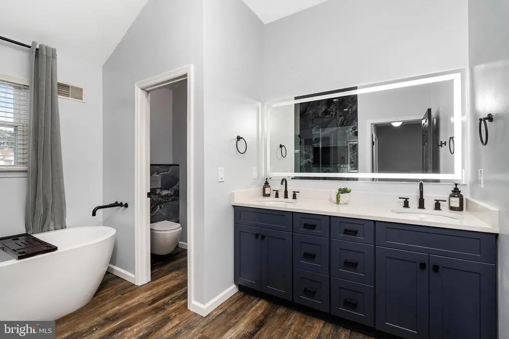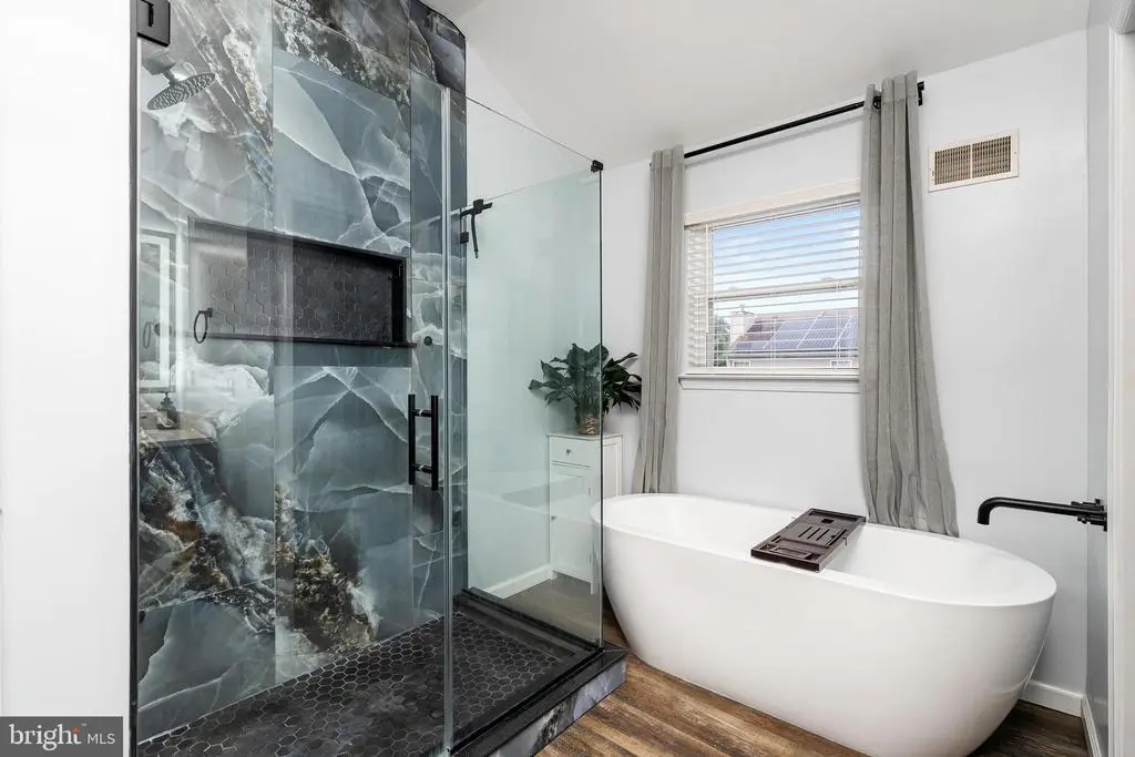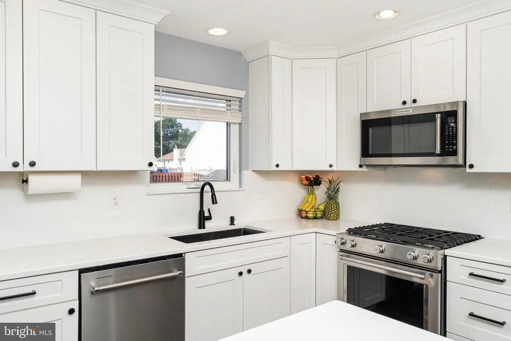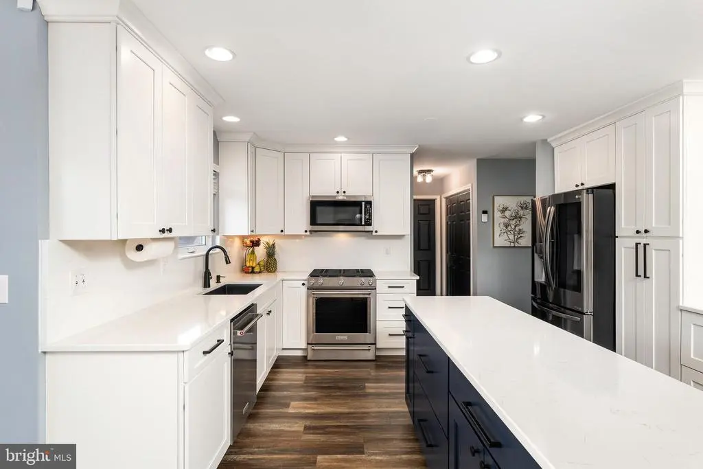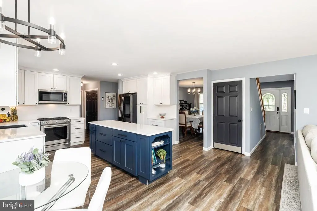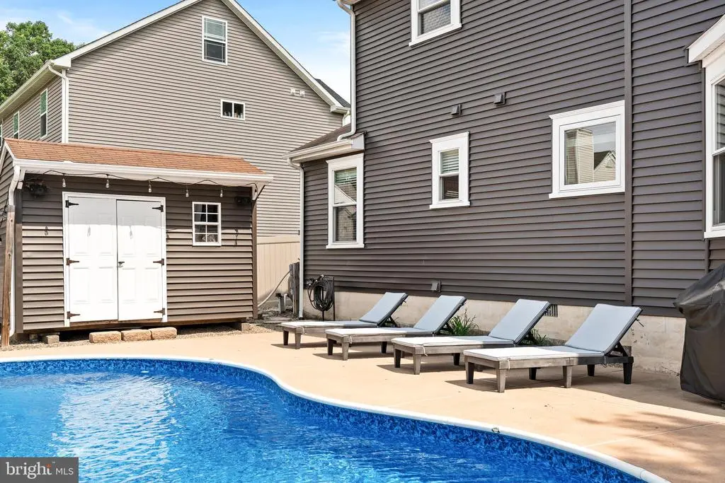 This five bedroom, three full bath coastal Colonial home radiates curb appeal featuring dark gray siding, crisp white trim and warm cedar accents. A charming front porch with an arched window adds a welcoming touch, while wood-look garage doors and decorative lighting highlight its elegance. The manicured lawn, neat landscaping and classic lamp post complete the picture—making this home as inviting outside as it is inside. You are whisked through the ornate front door to find fresh paint and new luxury vinyl flooring throughout. Behind French doors, an elegant home office impresses. Just steps away is a sun-drenched open-concept living room with sliding doors to the backyard, a bright breakfast nook and gorgeous kitchen remodel. This renovation boasts an expansive center island, full-slab Quartz counters and backsplash, full-height, soft-close cabinetry with custom storage and organization solutions at every turn, stainless steel appliance package, modern under-mount sink and convenient pantry. A formal dining room rounds out the entertaining space while the corner of the home features access to the two-car garage with plenty of storage and a workbench, main-level laundry, a hall closet complete with charging station for all your appliances as well as a bedroom (currently being used as an office) and full bathroom ideal for guests or multigenerational living. Upstairs, three newly carpeted bedrooms share a hall bathroom on one side of the floor while the primary suite of your dreams awaits on the other. This expansive personal retreat features a vaulted ceiling over the bed area, a walk-in closet and a luxurious bathroom remodel featuring frameless glass shower, soaking tub, water closet with modern floating toilet and a dual quartz vanity below a grand illuminated wall mirror with defogger function. Lastly, nearly 200 square feet of unfinished attic space presents even more possibilities for the next owner -a gym, library, home theater? You decide! Outside, your own paradise awaits featuring a pergola, fire pit area and saltwater pool. The many technological perks of this home are powered by the fully paid solar panels and a private well pump supplies the irrigation system to keep the lawn looking lush and beautiful. There’s simply nothing left to do but move in and make this house your dream home down at the Jersey shore.