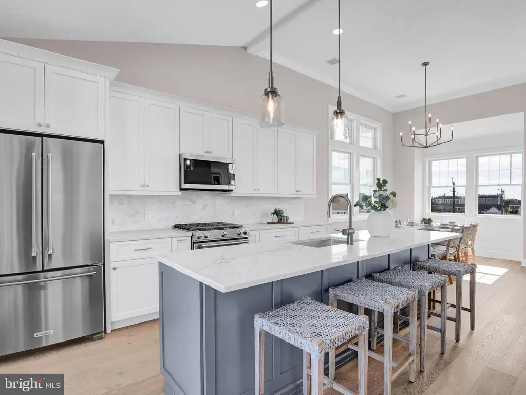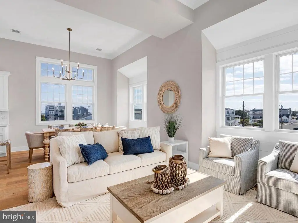 New construction, a stunning coastal contemporary built by Mancini Custom Homes! This shore home offers three floors of living space with 4 bedrooms, 3.5 baths, first and third floor family rooms, a three-stop elevator, and an enormous rooftop deck. The top floor features vaulted ceilings and a bright and airy kitchen, living and dining area. The kitchen has counter seating for four, quartz countertops and a KitchenAid appliance package. A shiplap fireplace with black granite surround and custom mantel are the focal point of the living room. Sliding glass doors off of the kitchen provide access to a spacious dining deck. A powder room is also conveniently located off the kitchen for guests. Interior stairs lead to the rooftop deck, where you can take in stunning views of both the ocean and the bay along with morning sunrises and evening sunsets. The middle floor features a large primary suite, two additional bedrooms, a full bath with tub as well as a laundry closet. Upon entry, the ground floor greets you with a large family room with a convenient wet bar, a bedroom, and a full bath. Enjoy the restaurants, shopping, and nightlife that nearby Beach Haven has to offer. This is one of two fully-detached single family homes, each with its own fenced yard, offered as condominiums on one 80 x 65' lot. 10A W Marshall and 10B W Marshall are offered separately but would also make a fantastic family compound or investment property if bought together. 10A W Marshall will have a fenced 40x65’ lot area which will be described in the master deed. Taxes to be assessed.