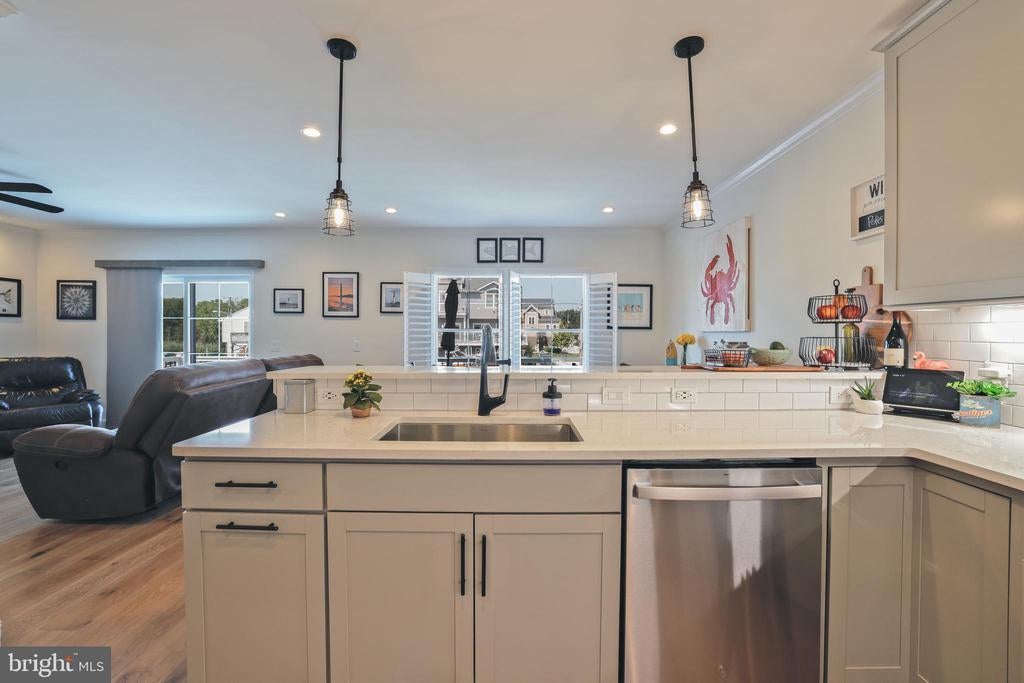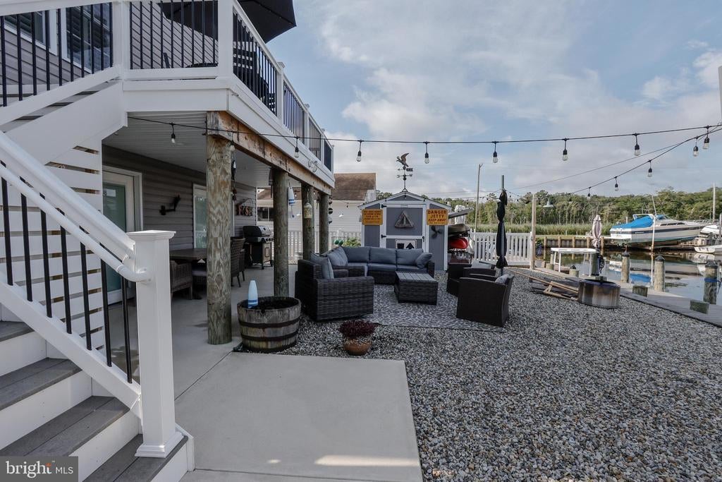 Welcome to 5 Sands Point Rd. Built in 2020 - This stunning, raised 3-bedroom, 2.5-bath home offers a bright and spacious open-floor plan perfect for comfortable living. Enjoy breathtaking water views from this lagoon-front property. Beautifully appointed kitchen features granite counters, stainless steel appliance, custom tile backsplash, and a large peninsula with an undermount sink. Recessed lighting and luxury vinyl plank flooring run throughout the majority of the home. 50 foot vinyl bulkhead with composite decking - sprawling rear deck off the main level - oak staircases and rails with matte black spindles - Large primary suite with full bath and a walk in closet - 2 zoned HVAC - partially finished ground level area great for entertaining featuring ductless heat and A/C, epoxy floors, double french doors that open out to the backyard and covered concrete patio - dual hard-lined gas grill hookups - outdoor shower - 2 car garage - partially fenced yard - outdoor shed - water and electric at the dock - all located in a quiet location just minutes to the open bay.