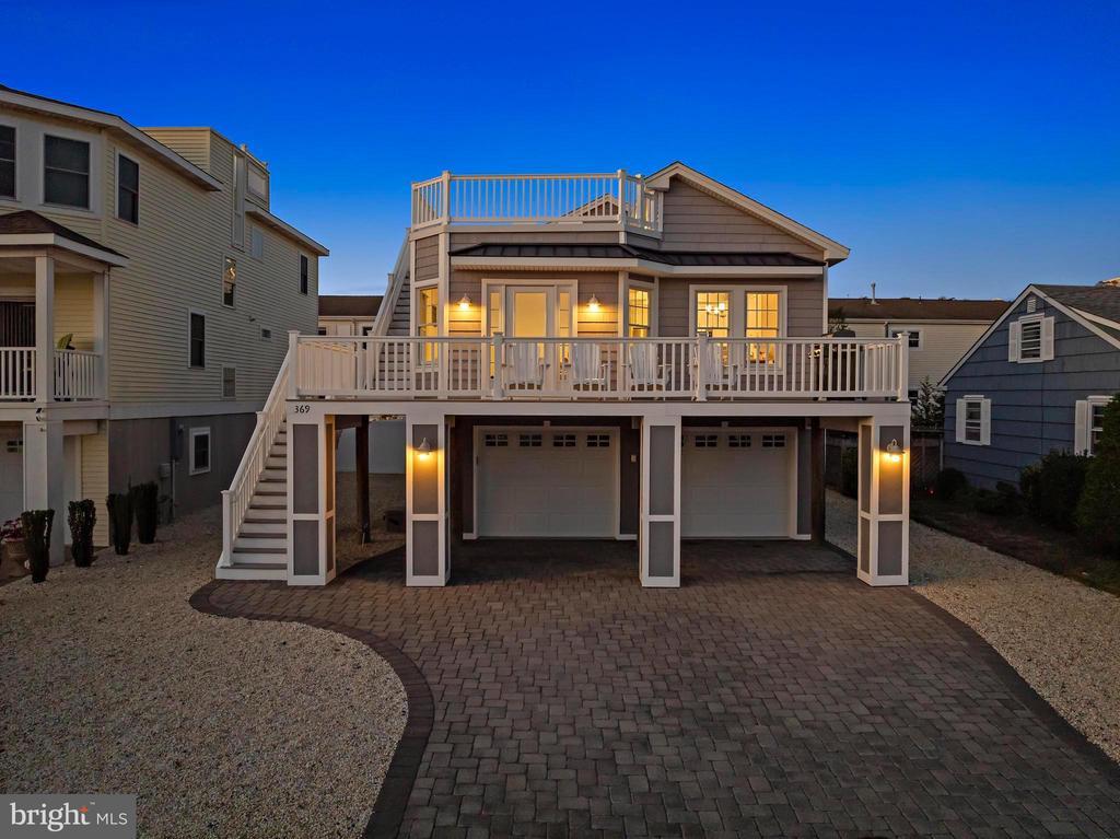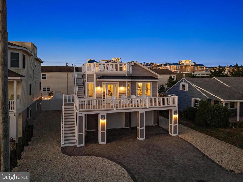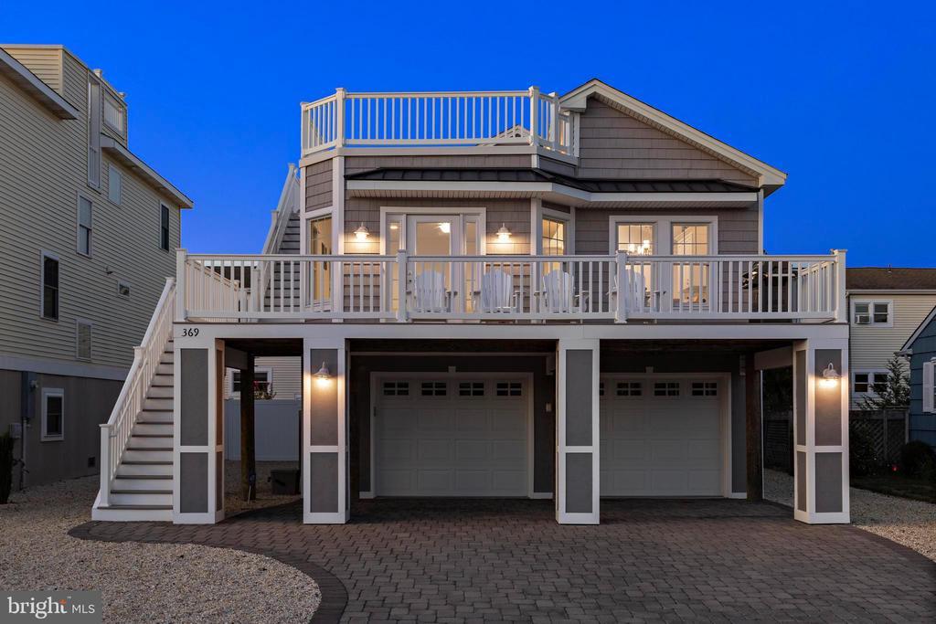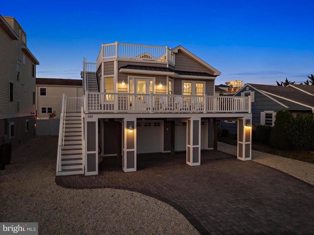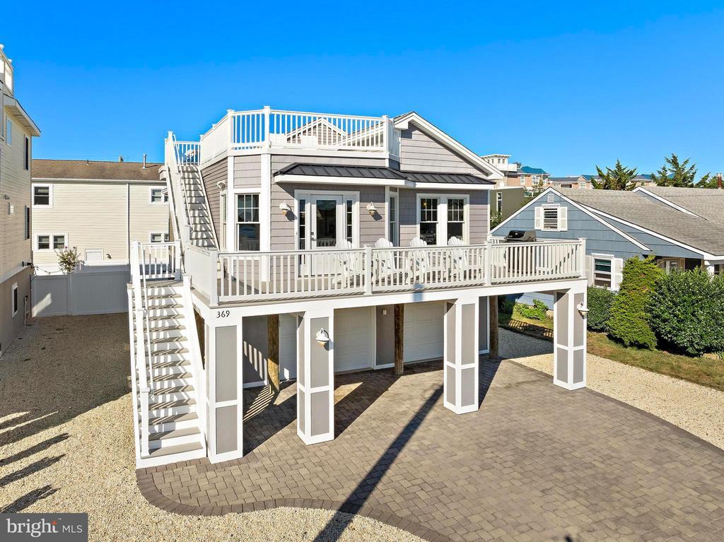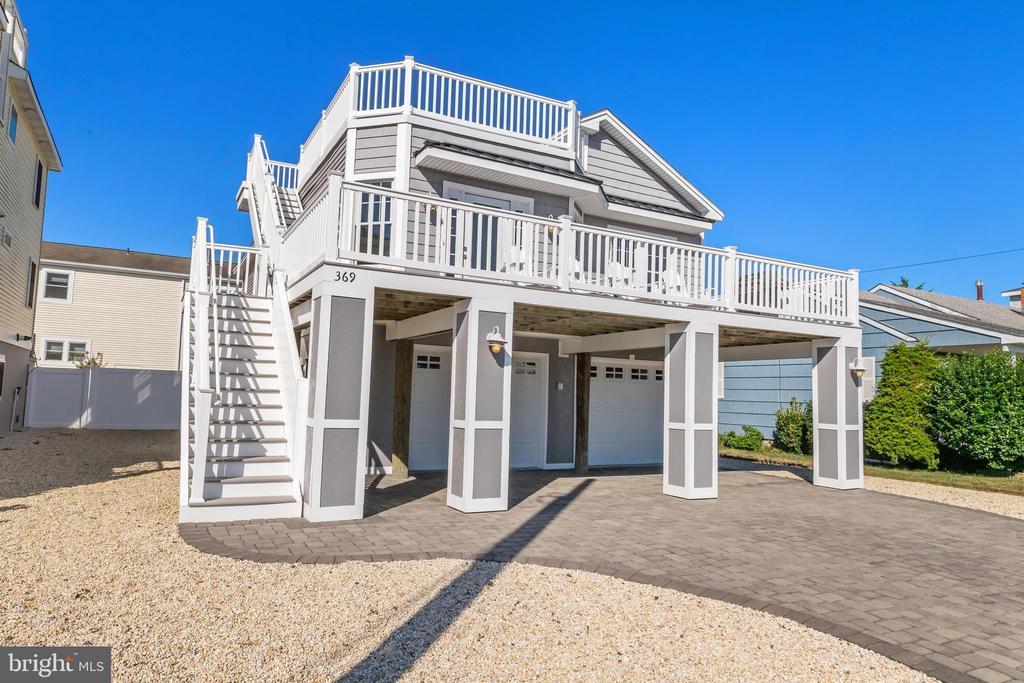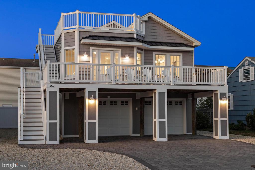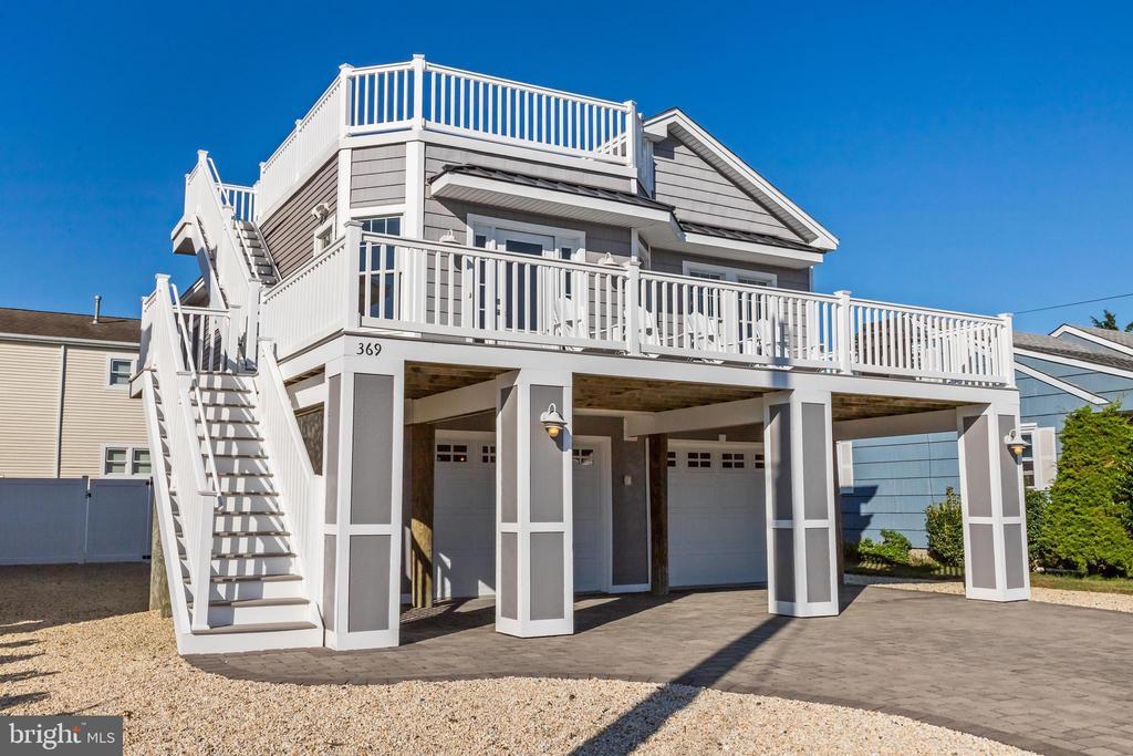 Welcome to 369 W 10th Street in Ship Bottom, a beautifully built raised ranch offering the perfect combination of modern design, coastal charm, and a prime bayside location. Just three homes from the water and minutes from the beach, this 2018-built residence captures the essence of Long Beach Island living with a layout designed for comfort, style, and ease. From the moment you arrive, the inviting curb appeal sets the tone for the lifestyle that awaits. Elevated construction provides both peace of mind and enhanced views, while a spacious two-car garage offers abundant storage for vehicles, bikes, and all of your beach gear. Step inside to a bright, open-concept living space filled with natural light and highlighted by vaulted ceilings, wide-plank flooring, and a cozy gas fireplace. The seamless flow between living, dining, and kitchen areas makes entertaining effortless. The kitchen is a true focal point, featuring granite countertops, stainless steel appliances, glass tile backsplash, and a breakfast bar perfect for casual dining or morning coffee. Three well-proportioned bedrooms provide ample space for family and guests. The primary suite offers comfort and privacy, while the additional bedrooms can serve as guest rooms, a home office, or flexible space. Two full bathrooms, finished with coastal-inspired details, enhance convenience and style. Outdoor living is where this home truly shines. A large front deck runs the width of the home, ideal for alfresco dining and enjoying bay breezes. An exterior staircase leads to the rooftop deck, where panoramic water views and spectacular sunsets create the ultimate backdrop for gatherings or quiet evenings under the stars. Practical features include central air, ceiling fans, washer/dryer, and thoughtful design that makes the home as functional as it is beautiful. With a 4,700+ sq. ft. lot, there is room to enjoy your outdoor spaces while still being just moments from Ship Bottom’s shops, dining, and activities. Whether you are looking for a year-round residence, a summer getaway, or a smart investment on Long Beach Island, 369 W 10th Street offers it all—modern construction, a bayside location, and move-in ready comfort. This is coastal living at its best, where every day feels like vacation.