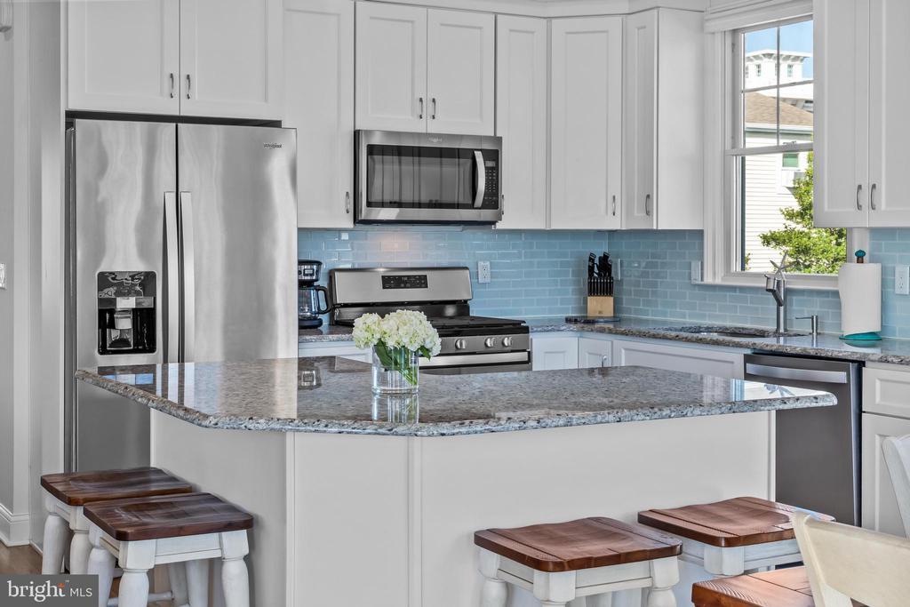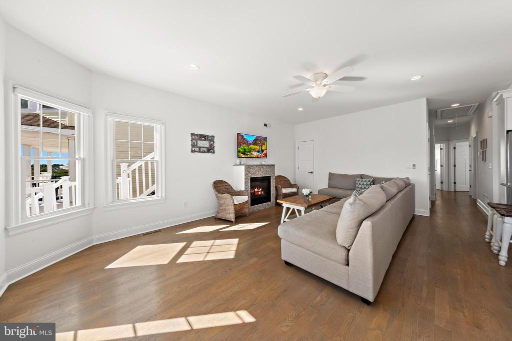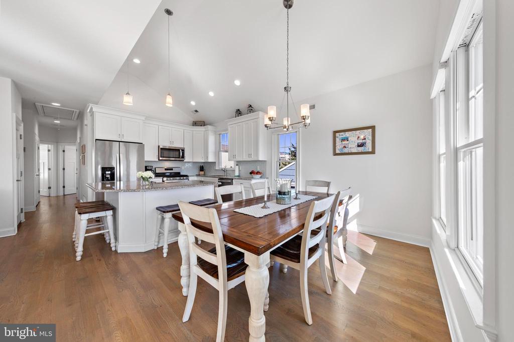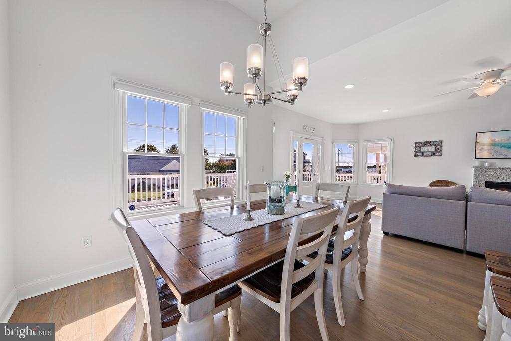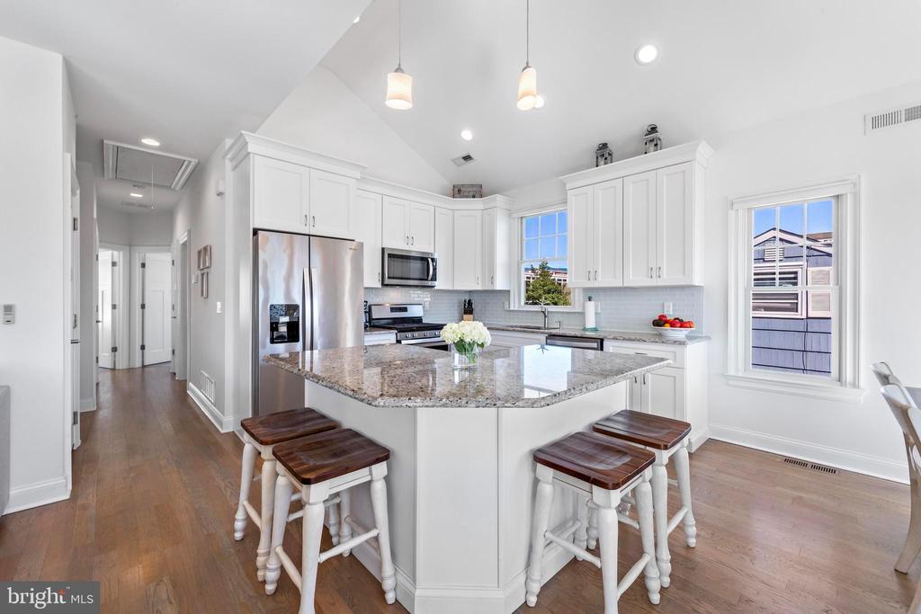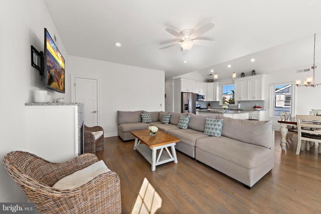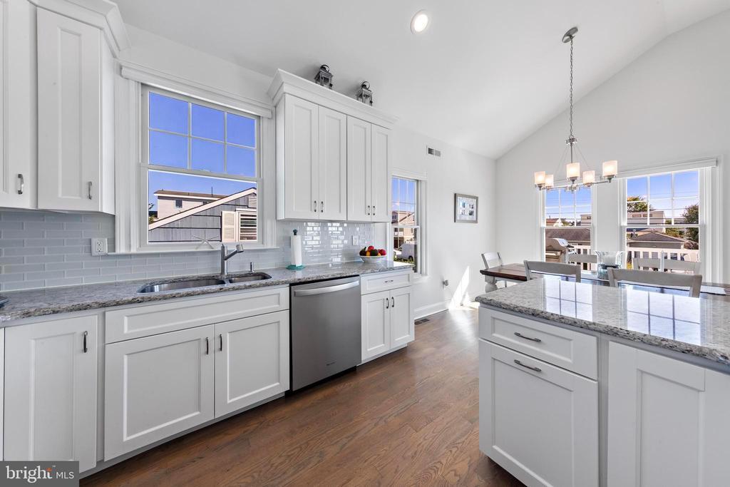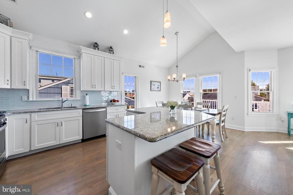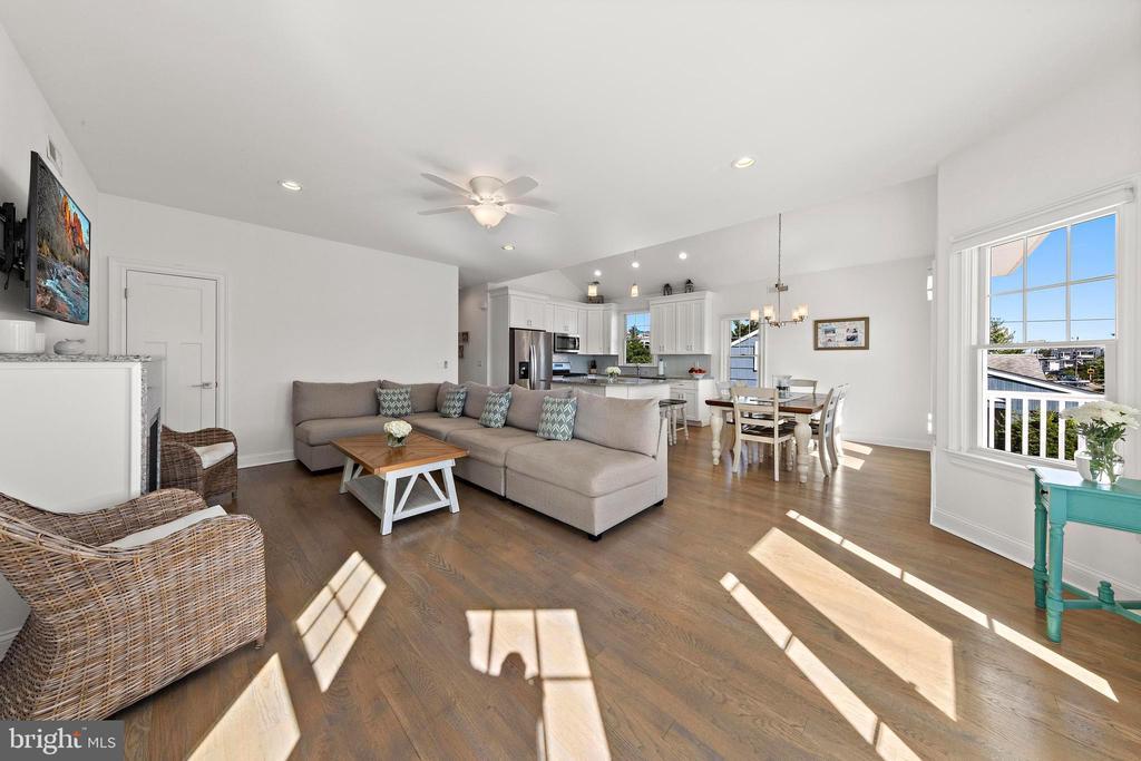 Welcome to 369 W 10th Street in Ship Bottom, a beautifully built raised ranch offering the perfect combination of modern design, coastal charm, and a prime bayside location. Just three homes from the water and minutes from the beach, this 2018-built residence captures the essence of Long Beach Island living with a layout designed for comfort, style, and ease. From the moment you arrive, the inviting curb appeal sets the tone for the lifestyle that awaits. Elevated construction provides both peace of mind and enhanced views, while a spacious two-car garage offers abundant storage for vehicles, bikes, and all of your beach gear. Step inside to a bright, open-concept living space filled with natural light and highlighted by vaulted ceilings, wide-plank flooring, and a cozy gas fireplace. The seamless flow between living, dining, and kitchen areas makes entertaining effortless. The kitchen is a true focal point, featuring granite countertops, stainless steel appliances, glass tile backsplash, and a breakfast bar perfect for casual dining or morning coffee. Three well-proportioned bedrooms provide ample space for family and guests. The primary suite offers comfort and privacy, while the additional bedrooms can serve as guest rooms, a home office, or flexible space. Two full bathrooms, finished with coastal-inspired details, enhance convenience and style. Outdoor living is where this home truly shines. A large front deck runs the width of the home, ideal for alfresco dining and enjoying bay breezes. An exterior staircase leads to the rooftop deck, where panoramic water views and spectacular sunsets create the ultimate backdrop for gatherings or quiet evenings under the stars. Practical features include central air, ceiling fans, washer/dryer, and thoughtful design that makes the home as functional as it is beautiful. With a 4,700+ sq. ft. lot, there is room to enjoy your outdoor spaces while still being just moments from Ship Bottom’s shops, dining, and activities. Whether you are looking for a year-round residence, a summer getaway, or a smart investment on Long Beach Island, 369 W 10th Street offers it all—modern construction, a bayside location, and move-in ready comfort. This is coastal living at its best, where every day feels like vacation.