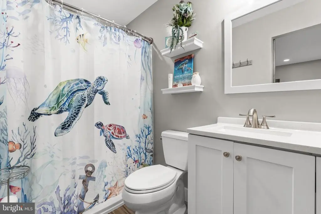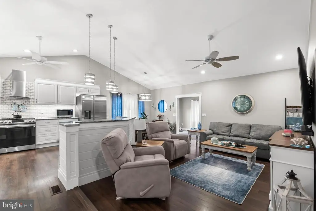 Wonderful opportunity to move right in to this beautifully renovated home. Updates inside and out, under 15 minutes to LBI, and in a lake community. The front door welcomes you into an open concept living space with vaulted ceilings, dining area and phenomenal kitchen space. With fresh white cabinets, a stainless appliances package, huge island and tons of storage, the kitchen leaves little be desired. Moving to the back of the home you will find a second living space that also leads to one of the bedrooms and access to the fully fenced backyard. The front hall way offers access to the laundry room, hall bathroom as well as two other bedrooms including the primary. The primary bedroom offers an ensuite bathroom with walk-in shower. Tons of outdoor entertainment space can be found in the rear yard along with access to the second driveway, an outdoor shower and a walk-through door into the garage.