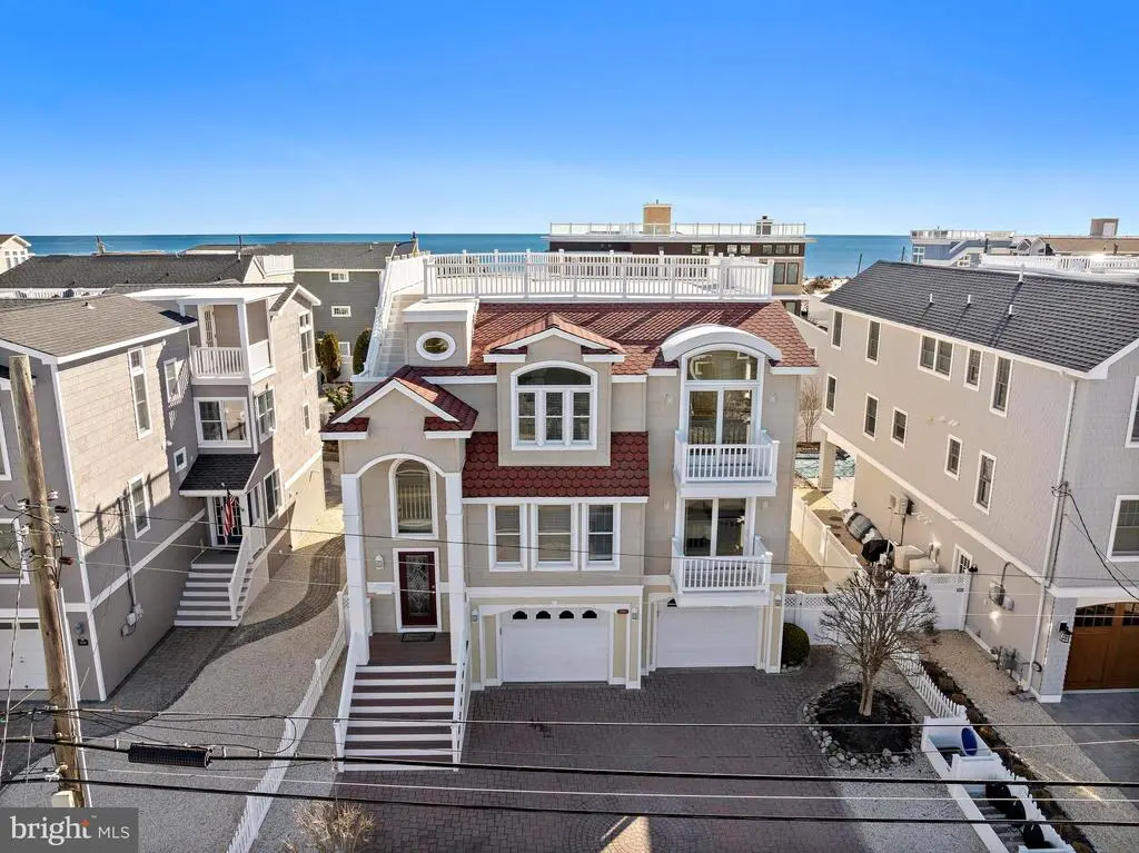 HIT THE BEACH!!! OCEANBLOCK location! 6 bedroom, 5 1/2 bath contemporary style home located just 4 houses away from the beach! Top-Shelf North Beach Haven neighborhood: Walk or bike to all things fun on LBI. And there's MORE! 3 living rooms, wet bar, 3 ensuite bedrooms, elevator, enormous rooftop deck w/awesome ocean views, oversized 2 car garage and room for a pool in the back yard. Offered fully furnished. 2025 rental income $130,000+.