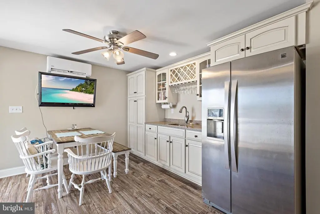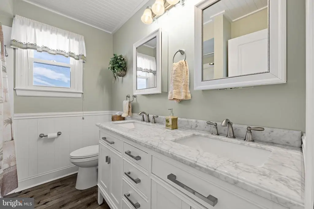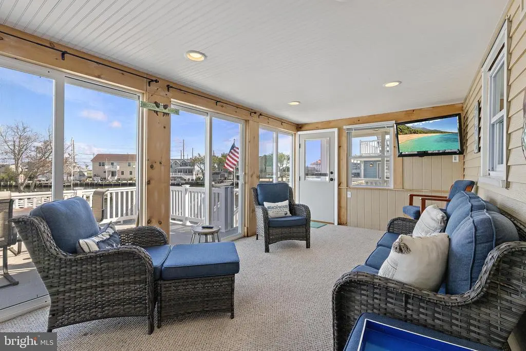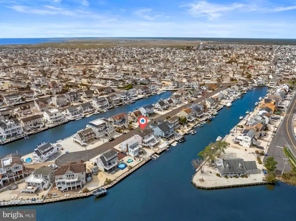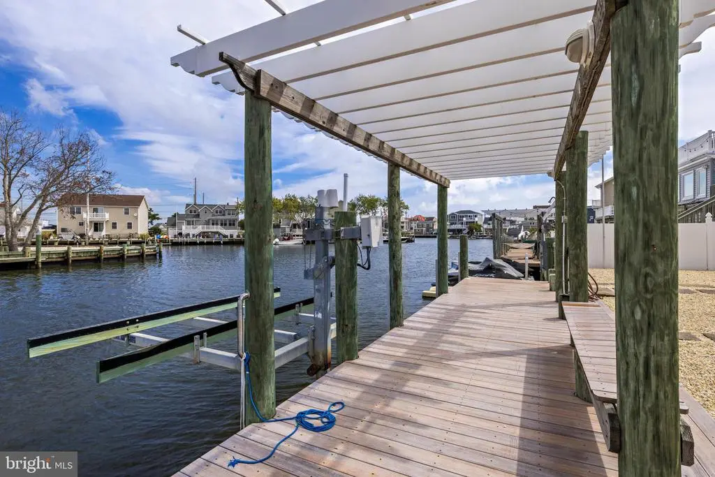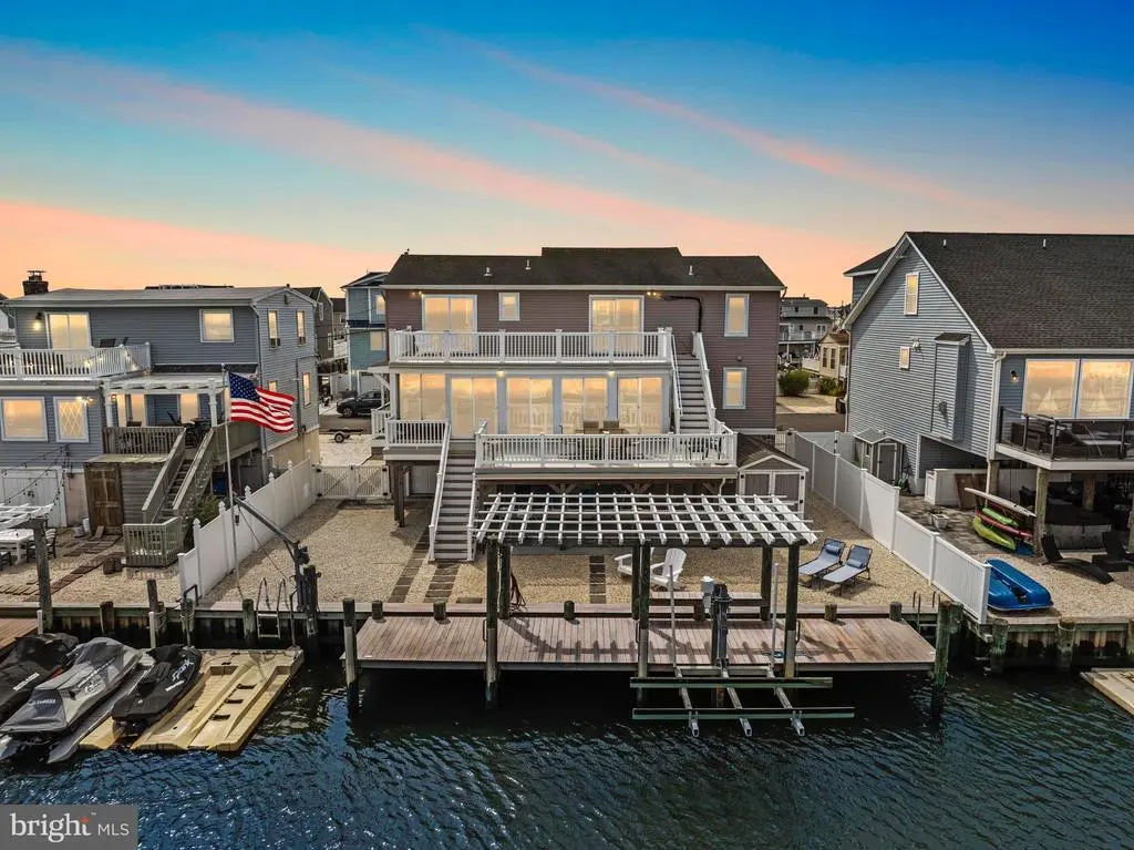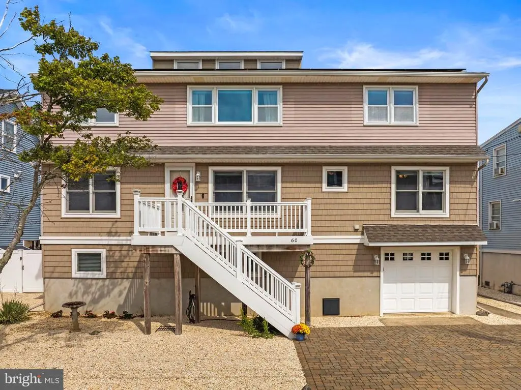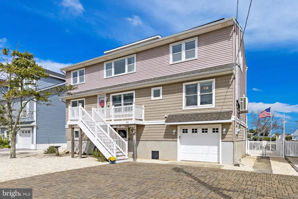 Raised and renovated, bright 2-story, 4-bedroom waterfront home with large 3 season/sunroom with forever views at the open intersection of 3 lagoons, only a minute to the open bay and 5 minutes from LBI by boat or car. This dream home offers a 60-foot vinyl bulkhead, composite boat dock, 2 floating wave runner docks, boat lift (5,000 lb.), wave runner lift, custom pergola, outdoor shower and covered outdoor space. This is a dream vacation or year-round home. There is room for everyone with 4 bedrooms, 2 Full baths, 2,264 Sq ft plus an additional 968 SF heated (gas heater) ground floor space with access to the backyard and garage. On the first floor, the eat-in gourmet kitchen with stainless appliances, wet bar and wine rack, is open to the dining room that opens to a large 3 season/sunroom with a wall of sliders out to the huge first floor deck. The kitchen is also open to the living room.Two bedrooms, a large full walk in bath and large laundry room complete the first floor. The second floor offers 2 additional bedrooms, including a large primary bedroom and bath, with a large family room/den with custom ceiling and sliders out to a large second floor deck overlooking the water. Both decks are connected via outside stairs that go down to the ground level. This home is efficiently and economically heated and cooled by 7 ductless mini split heat/AC systems, which make it easy to individually control temperatures in each room, and a 30,000 BTU vent less gas stove in the living room, that heats the house on its own. And, you no longer have to worry about electric bills with solar panels that provide most of the electrical needs for this property (and often more, for a credit on your electric bill), for a low-cost transferable lease ($94/month). Enjoy this wonderful home year-round or just for summer and water fun. 60 Jennie Drive offers everything you can want. Come see for yourself.