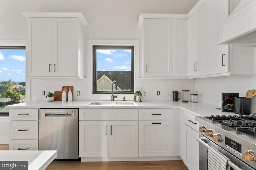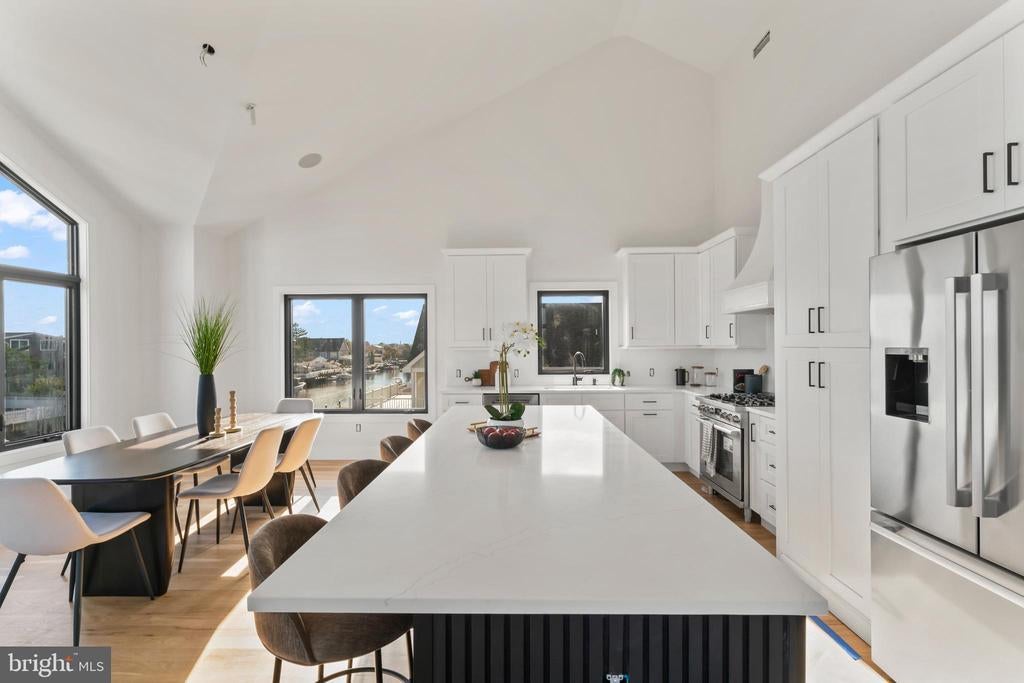 Experience modern coastal luxury in this brand-new, custom-built home situated on a naturally deep-water lagoon in Mystic Island. Designed with a reverse living floor plan to maximize water views, this residence blends high-end finishes with thoughtful functionality. Inside, you’ll find white oak hardwood floors throughout, a chef’s kitchen with quartz countertops and backsplash, Bosch stainless steel appliances, and an open-concept layout perfect for entertaining. The expansive living area seamlessly connects to the outdoors through 14' bi-fold patio doors, leading to a fiberglass deck with stainless steel cable railings. Smart-Home Ready for Modern Living — this home features complete Wi-Fi pre-wiring for seamless whole-home coverage, dedicated wiring for indoor and outdoor multi-zone audio, and every TV location is ready for a clean, wire-free installation. Additional highlights include a 3-level dumbwaiter for convenience, tankless water heater, and PVC board & batten siding for timeless coastal charm. Outside, a vinyl bulkhead borders a naturally deep-water lagoon that can accommodate large boats, offering easy access via Roundabout Creek to Great Bay — with no bridges to go under. Whether you’re seeking a year-round residence or a stunning shore retreat, this home delivers the perfect balance of elegance, comfort, and waterfront living.