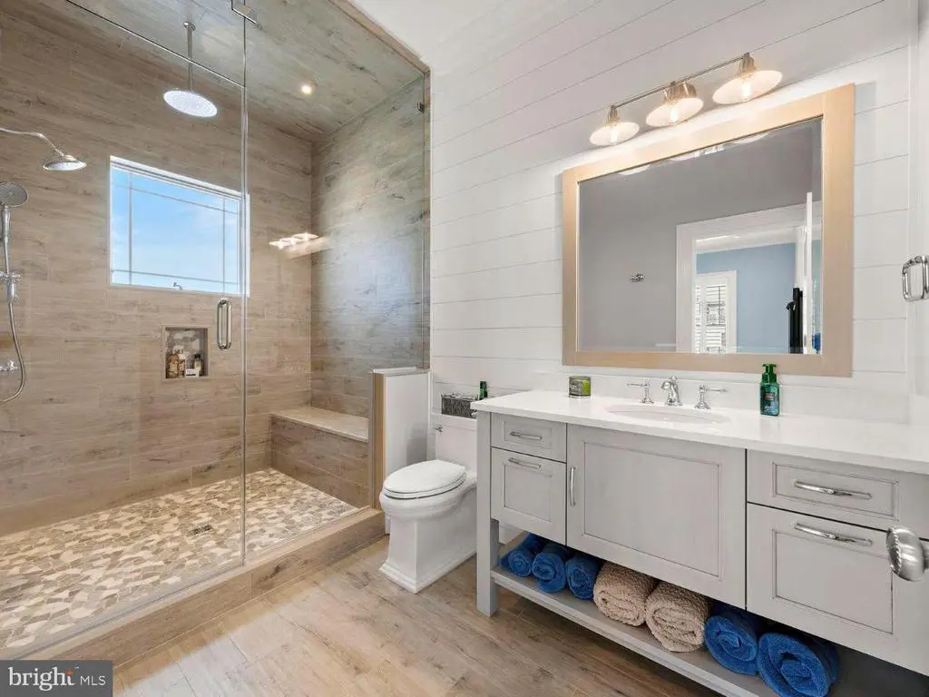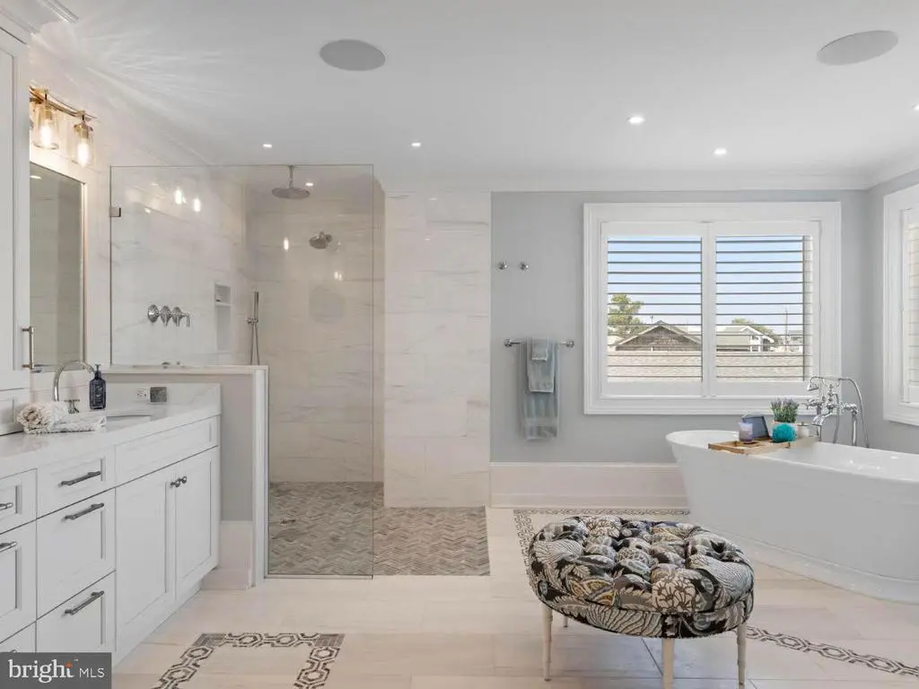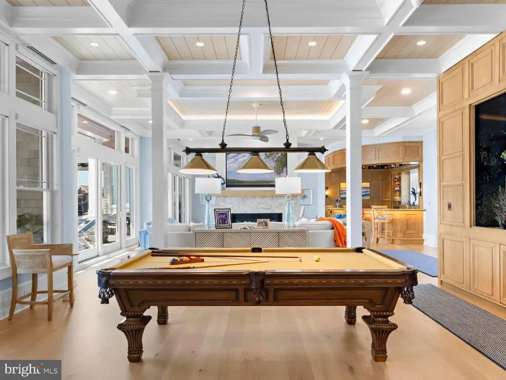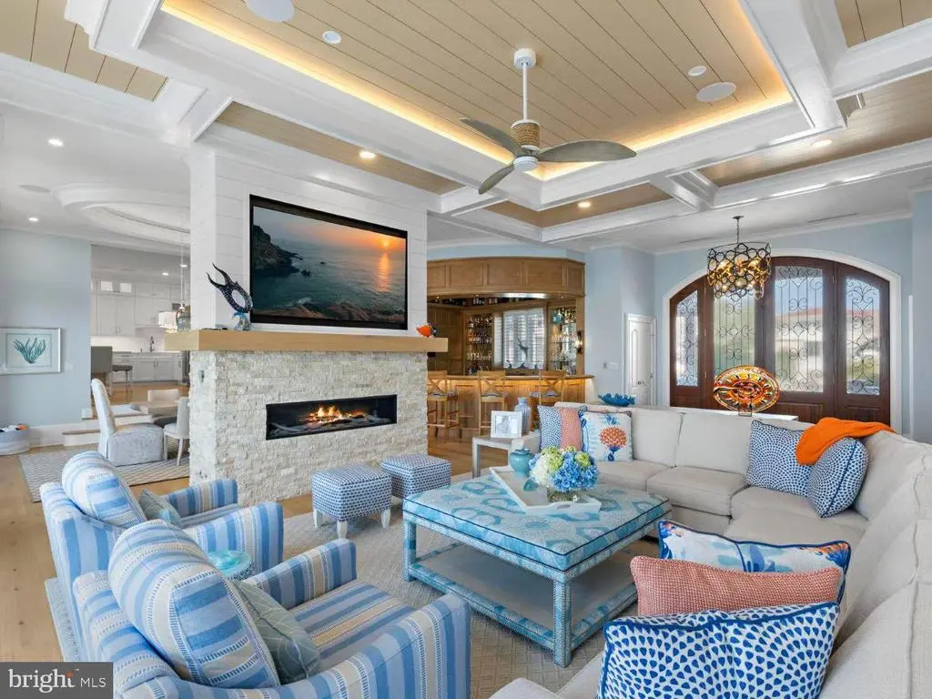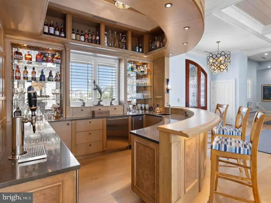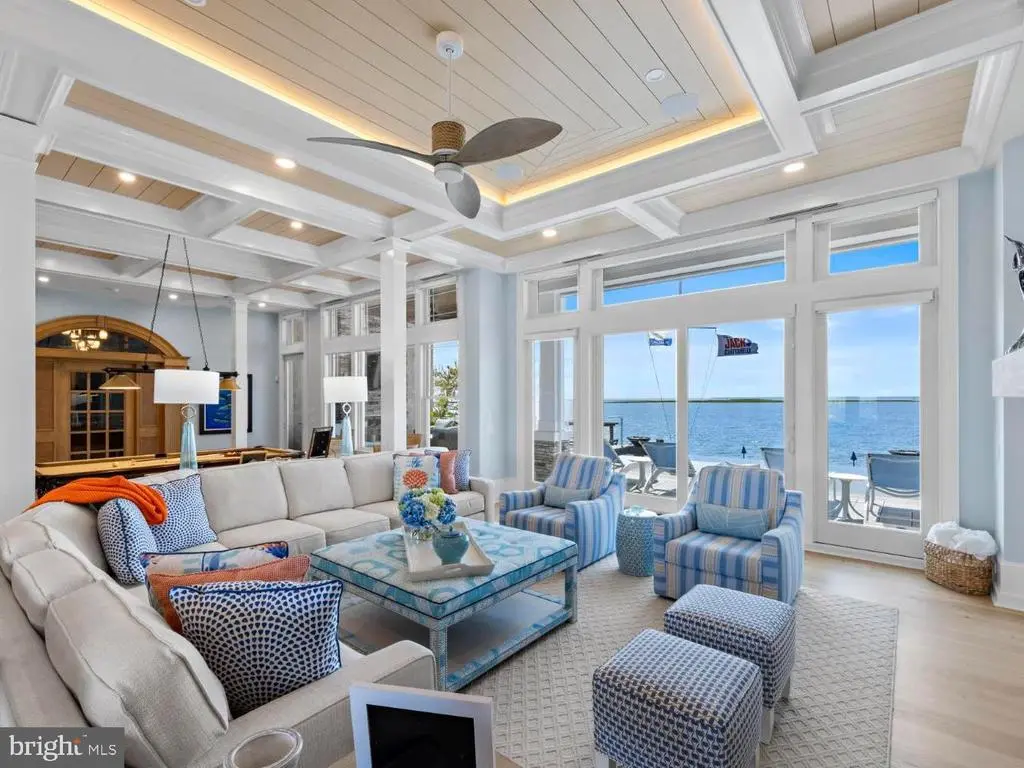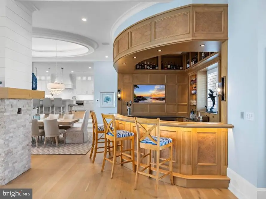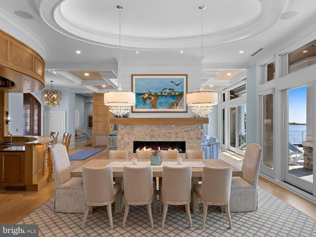 An extraordinary opportunity to own a breathtaking gated bayfront estate on Long Beach Island (LBI) offering stunning panoramic bay views. This custom-built, 8,300 sq ft home is situated on a private property where the bay truly becomes your horizon. Spacious decks provide the perfect setting for evenings ending in rose-colored sunsets mirrored on the bay's surface. Inside, the home features expansive spaces ideal for gathering and reflection while intimate suites offer breathtaking water views, privacy and comfort. The home has been constructed with the latest techniques and products to allow for easy year-round maintenance and longevity. The main level includes grand living and dining areas with 13-ft ceilings, with floor-to-ceiling sliders, beautiful custom millwork, a gourmet kitchen with premium appliances and a hidden full butler’s pantry. The coffered ceiling living room, complete with a custom-built bar and fireplace opens up to a space featuring a pool table and a tropical 1,300-gallon aquarium along with a custom built, temperature-controlled wine room. The infinity edged raised pool provides breathtaking exposure to the bay and sunsets. The east side of the main floor houses a lounge with a bar that leads into a professional grade golf simulator room, and a gym filled with state-of-the-art exercise equipment and a full steam shower bathroom. Take the four-stop elevator down to the three conditioned garages and dog washroom or up to the second level which features six en-suite bedrooms with walk-in closets, a double laundry room and a sitting room. Three of the en-suites lead out to an expansive deck with a fireplace and stunning water views. The primary suite is a true sanctuary with its own private stairwell, offering an office, two walk-in closets, a soaking tub, and a private deck along with a convenient stackable washer and dryer closet. The home was built by Mancini Custom Homes and decorated by highly regarded interior designer Mary O'Brien Cabaron Interior Design with high end furniture and fixtures. Ample storage for water toys, fishing gear, and outdoor furniture is available in the walkable expansive crawl space or in the fourth conditioned garage located on the northwest side of the home opening up to the backyard making it easy to store all your outdoor belongings. The home has radiant heat throughout (including garages), smart home technology including motorized and programming shades throughout, Lutron programmable lighting, Hikvision movable exterior cameras, high-tech security system, Generac whole-house generator, and Control 4/Sonos audio/video technology. The beautifully professionally landscaped exterior amenities include an outdoor kitchen, a firepit with seating, two outdoor showers, a putting green, a pickleball/basketball court, a roof-top hot tub, and high end motorized hurricane screens on the first floor decks designed to extend the seasons for outdoor living, and protection from the sun. Summer days can be enjoyed by the heated infinity gunite pool and spa overlooking the Bay, complete with deck lighting, a Sonos Sound system and SunBrite television. On cooler evenings, you can cozy up and relax in a lounge area by a gas fireplace located on either the first-floor patio or second floor deck. For boating enthusiasts, a dock with two high end hydraulic No-Profile platform boat lifts (40k and 20k lifting capacity) and a WayKleen Power Washer are already in place offering direct access to the water. This estate is more than a home; it is a rare retreat where elegance meets serenity.