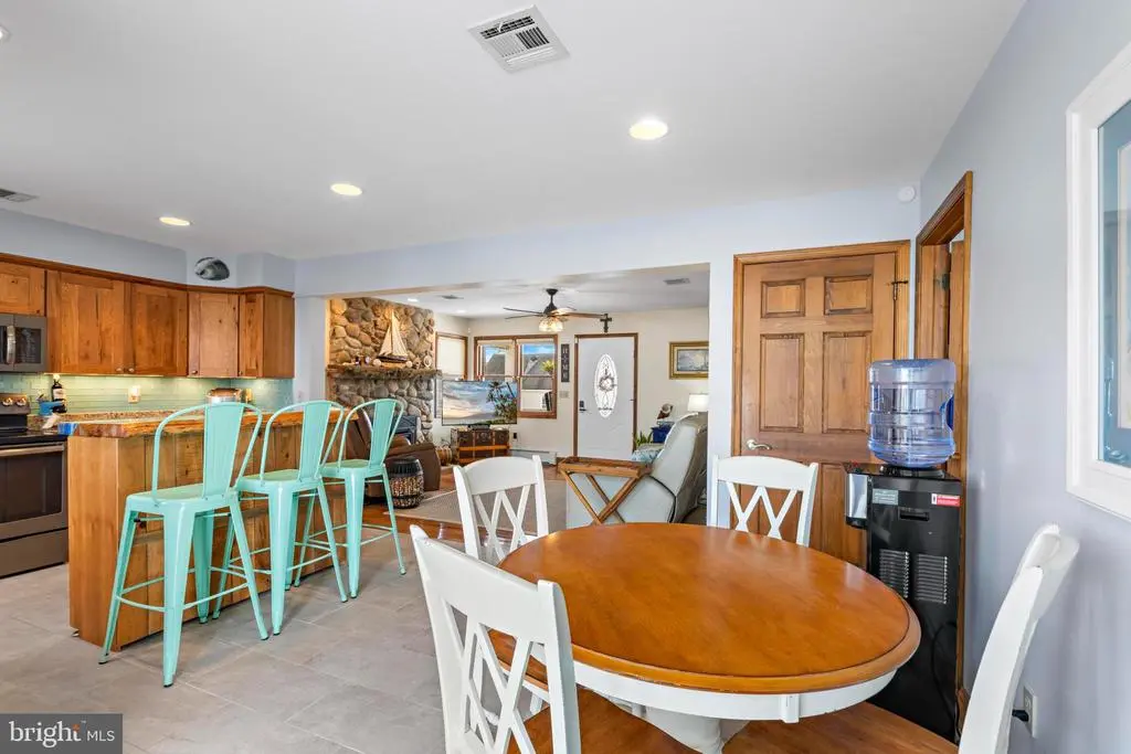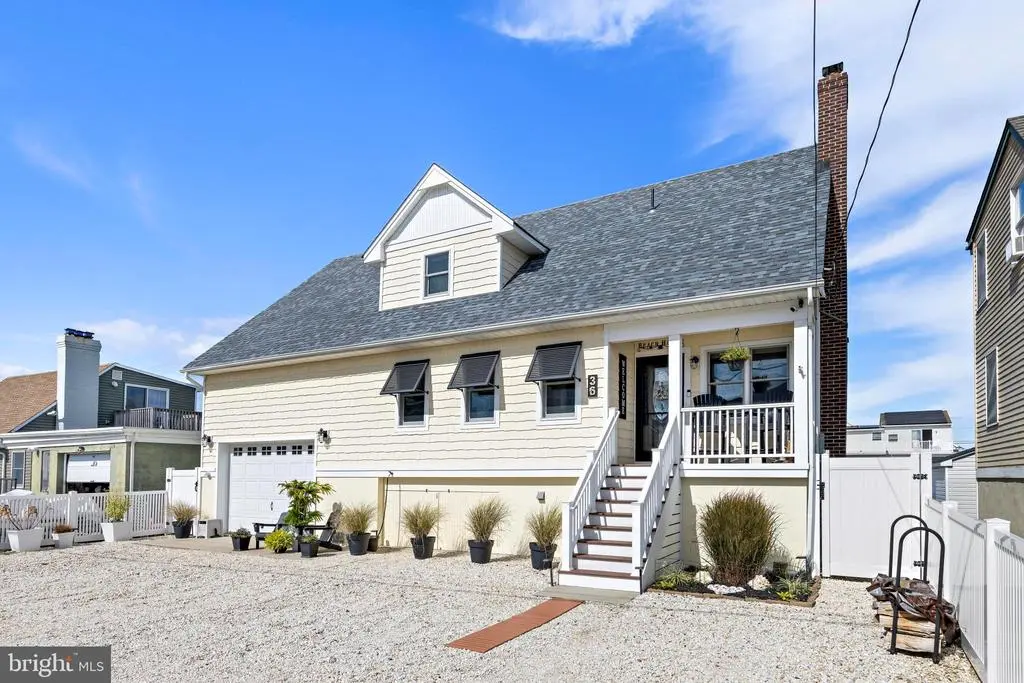 Location, location, location — this custom-built coastal home sits on a prime lagoon front lot in the sought-after Beach Haven West section of Stafford Township, just over the bridge from LBI. Designed for the shore lifestyle, this 10-year-young home combines craftsmanship, comfort, and functionality — all within a boater’s dream setting. Step inside to find beautiful hardwood floors, solid wood doors and trim, and an open-concept floorplan that flows seamlessly from the spacious living area to the dining space and custom kitchen. The kitchen features solid wood cabinetry, a stylish glass tile backsplash, and a unique live-edge island countertop — a true statement piece that perfectly captures coastal charm. The Delaware River Stone woodburning fireplace add warmth and ambiance, creating the perfect place to unwind after a day on the water. The first-floor primary suite offers convenience and privacy with a full bath, while the second floor includes three large bedrooms and abundant storage throughout — ideal for family and guests. Every detail was thoughtfully designed to make the most of both indoor and outdoor living. Enjoy your morning coffee or evening gatherings on the large deck off the kitchen, overlooking the lagoon and spacious backyard with room for entertaining, sunbathing, or relaxing by the dock. The oversized garage features extra-tall doors on both the front and back, easily accommodating two cars or a boat — and doubles as an additional entertainment area when the party moves indoors.