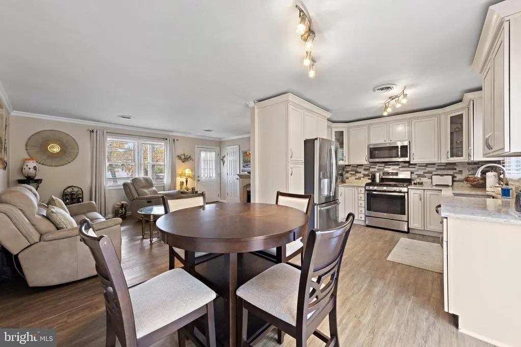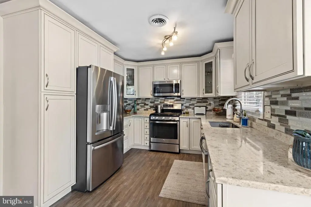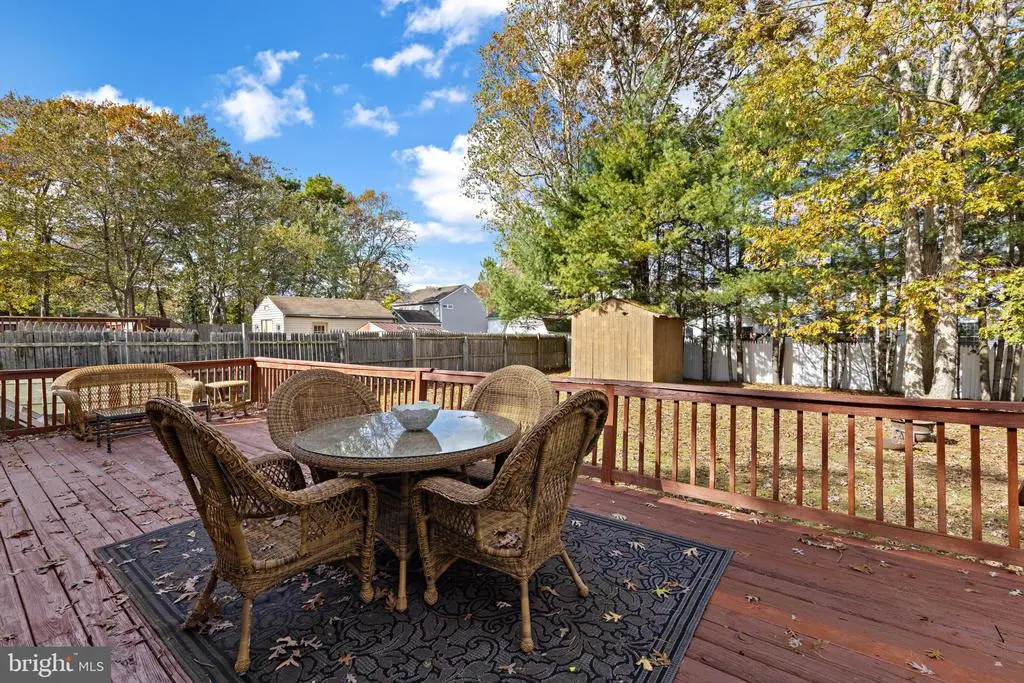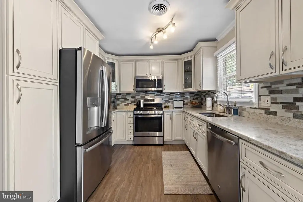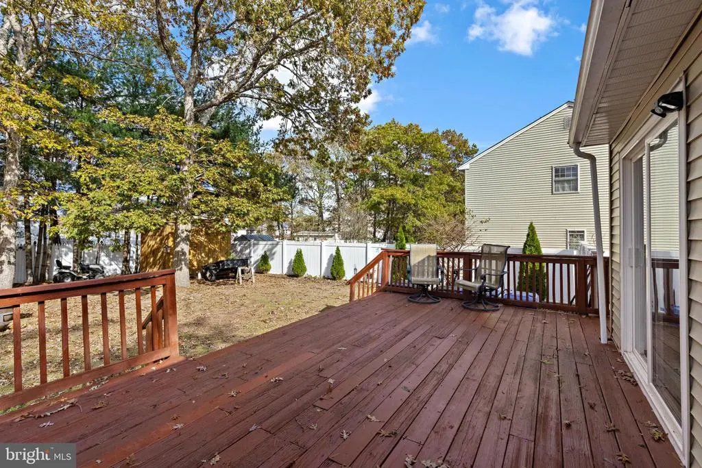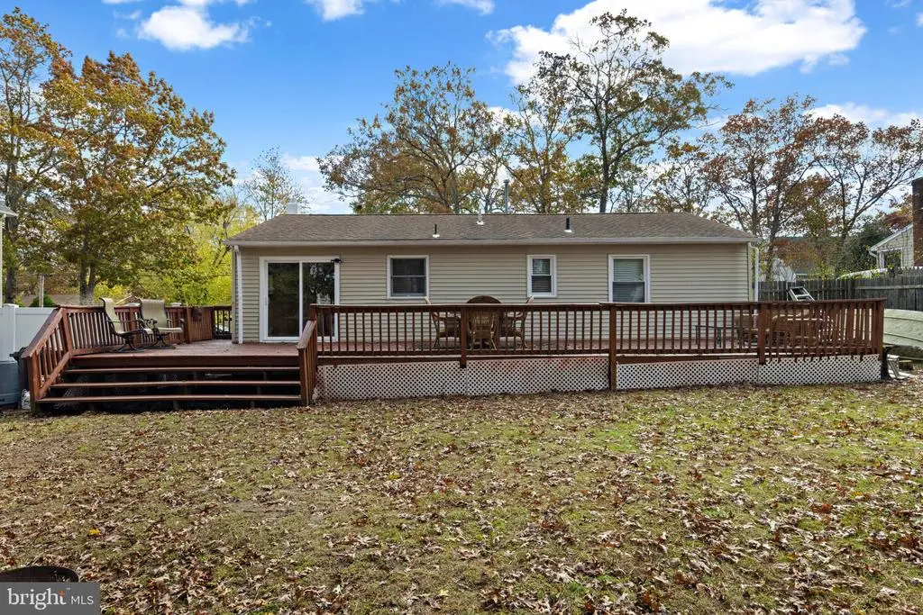 Welcome to this move-in ready two-bedroom, one-bath ranch in the desirable Ocean Acres section of Manahawkin. Enjoy relaxing on the inviting front porch before stepping inside to a home that has been thoughtfully updated throughout. The stunning kitchen has been completely renovated with dazzling quartz countertops, high-quality custom cabinetry, stainless steel appliances, a tile backsplash, and a modern garbage disposal—offering both elegance and everyday functionality. Vinyl plank flooring flows throughout, creating a cohesive and easy-to-maintain space. Originally a three-bedroom, the layout can easily be converted back if desired, offering flexibility for your needs. Additional highlights include a tankless water heater, a newer roof (approximately six years old), and an HVAC system replaced about five years ago. Step outside to an expansive rear deck perfect for entertaining or quiet evenings under the stars. The fenced-in yard provides privacy and room to play, while the shed adds valuable storage space. Ideally located just minutes from the beautiful beaches of Long Beach Island, along with nearby shopping, dining, the Garden State Parkway, and top medical facilities, this home blends comfort, convenience, and coastal living in one inviting package.
