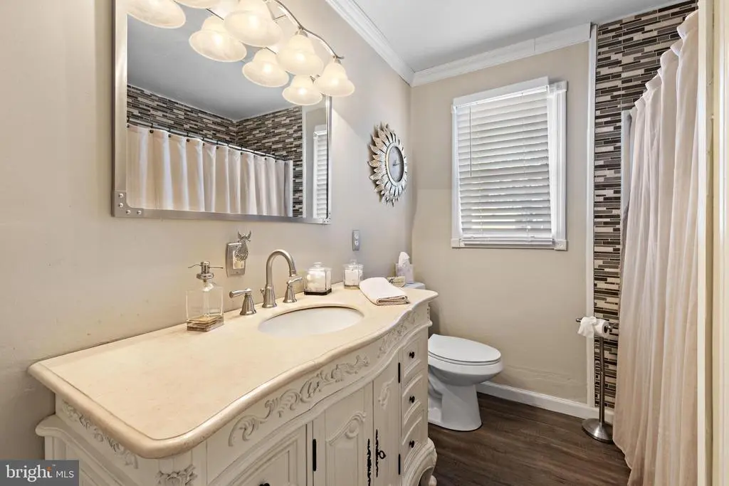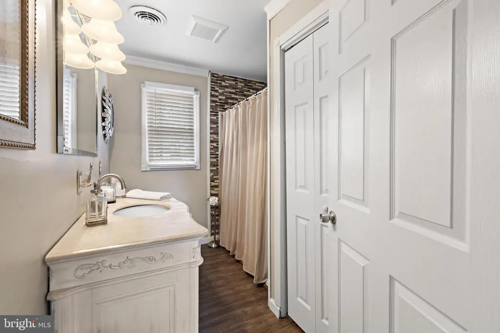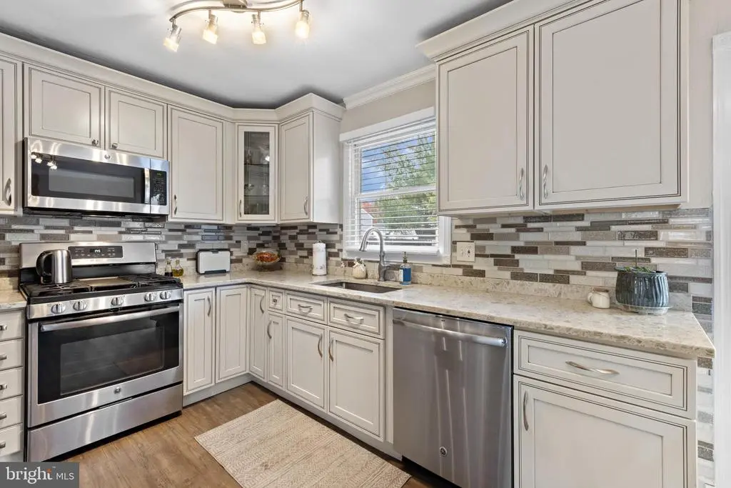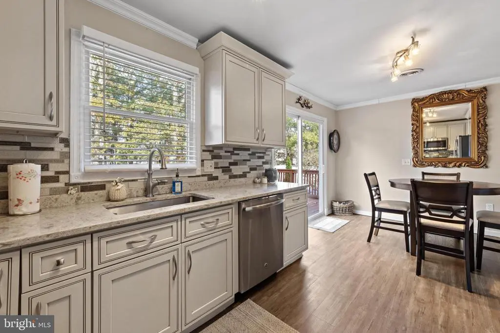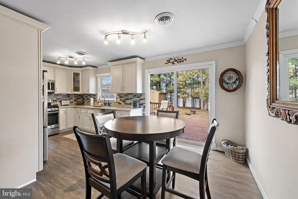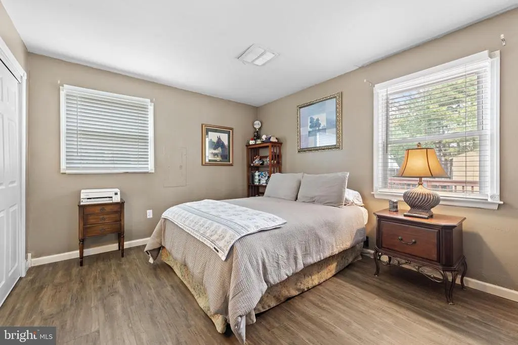 Welcome to this move-in ready two-bedroom, one-bath ranch in the desirable Ocean Acres section of Manahawkin. Enjoy relaxing on the inviting front porch before stepping inside to a home that has been thoughtfully updated throughout. The stunning kitchen has been completely renovated with dazzling quartz countertops, high-quality custom cabinetry, stainless steel appliances, a tile backsplash, and a modern garbage disposal—offering both elegance and everyday functionality. Vinyl plank flooring flows throughout, creating a cohesive and easy-to-maintain space. Originally a three-bedroom, the layout can easily be converted back if desired, offering flexibility for your needs. Additional highlights include a tankless water heater, a newer roof (approximately six years old), and an HVAC system replaced about five years ago. Step outside to an expansive rear deck perfect for entertaining or quiet evenings under the stars. The fenced-in yard provides privacy and room to play, while the shed adds valuable storage space. Ideally located just minutes from the beautiful beaches of Long Beach Island, along with nearby shopping, dining, the Garden State Parkway, and top medical facilities, this home blends comfort, convenience, and coastal living in one inviting package.