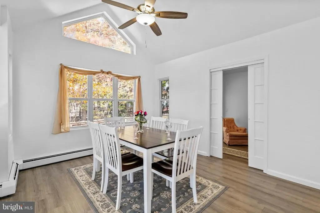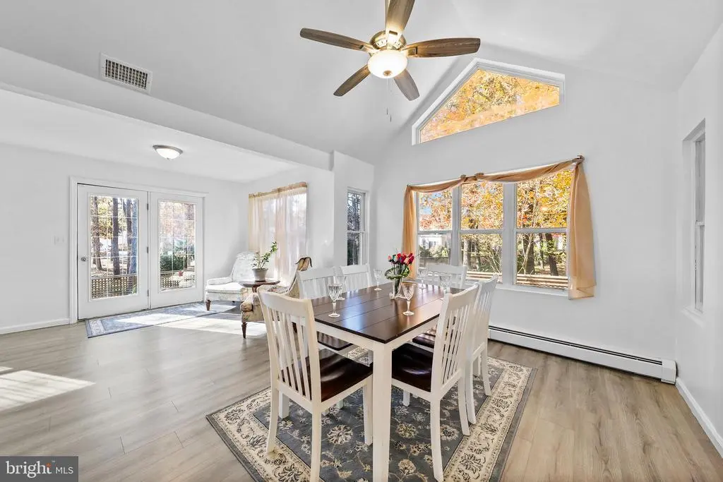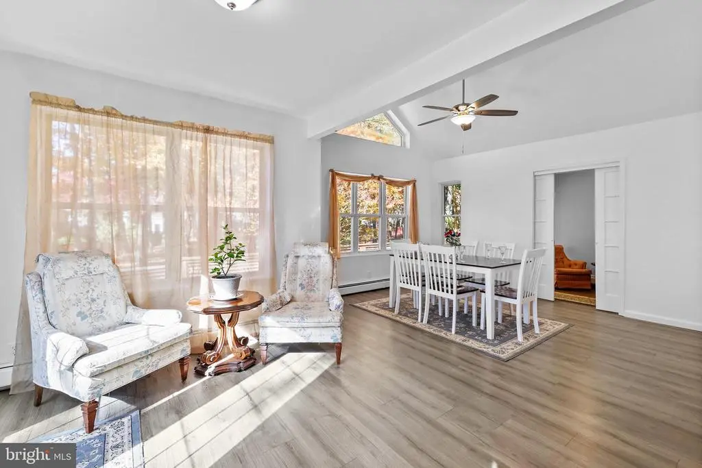Welcome to this well-maintained ranch-style home. This home sits on a desirable corner lot in a peaceful 55+ community, Atlantic Hills. Freshly painted throughout, the home an open, comfortable layout designed for easy living. The spacious living and dining area offers a vaulted ceiling with recessed lighting and plenty of natural light, creating an inviting space for relaxing or entertaining. The eat-in kitchen features a cathedral ceiling, breakfast bar and full stainless steel appliance pkg. which includes a refrigerator purchased in '23 and a ceiling fan. The primary bedroom includes a sitting area with a ceiling fan, access to the paver patio and a tiled bath complete with a walk-in shower. A second large bedroom features a ceiling fan, sitting area and a full wall window fts of natural light. A second full bath offers a tub/shower combination. Additional highlights include a laundry rm. complete with a utility sink, and washer and dryer. There's easy access to the 2-car garage from here. Outside is a brick paver patio surrounded by woods. The newer 2024 HVAC, tankless hot water heater 2024, air conditioner 2023 and solar panels will give you affordable year-round comfort. The electric service was recently replaced also. Move-in ready and freshly updated, this home offers comfort, convenience and one-level living in a sought-after community. Please overlook the boxes and little decor. Sellers are getting ready to move quickly.