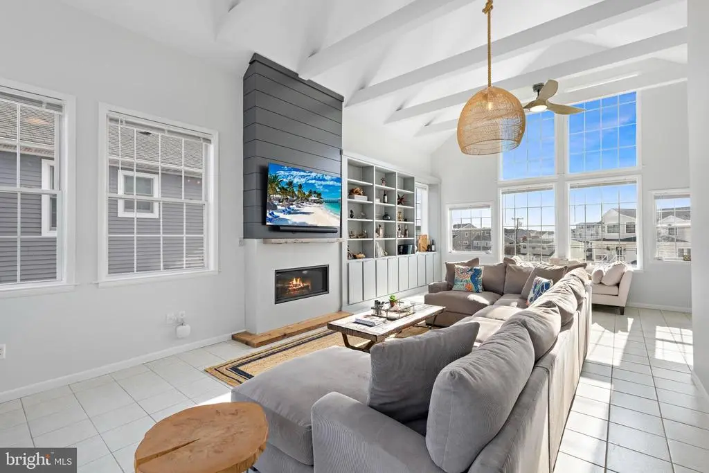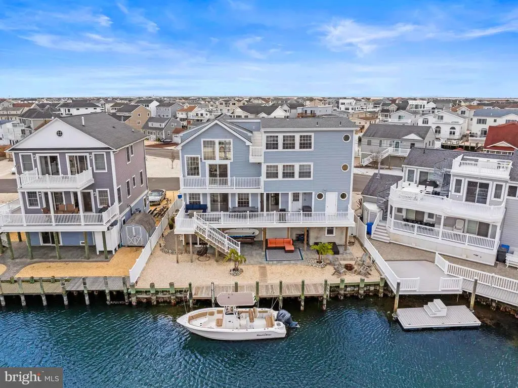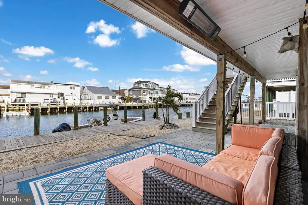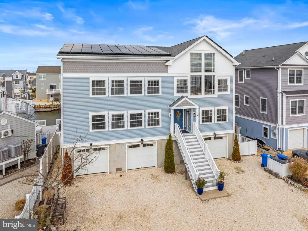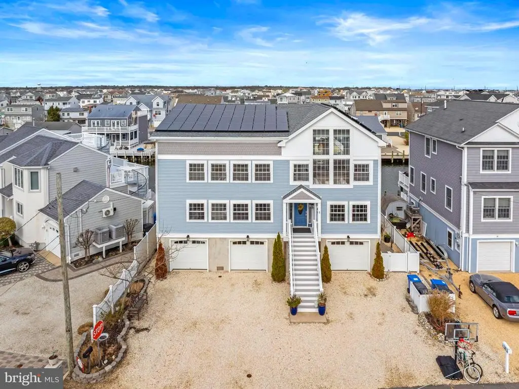 Welcome to 8 Willard Drive- An expansive waterfront home in a prime Beach Haven West location. Just five minutes by boat to the Barnegat Bay and a five minute drive to Long Beach Island’s pristine beaches, this home sits in one of the area’s most unbeatable boater’s locations. With more than 3,400 square feet of living space plus a 470-square-foot finished walk-up attic and four garage bays, the home is expansive and ready for large families, gatherings, and effortless entertaining. This raised and recently renovated home offers peace of mind with newer systems throughout, including HVAC, furnace, hot water heater, roof, appliances, fresh paint, new flooring, and fully paid-off solar panels for maximum efficiency. Inside, the main level begins with a welcoming entryway. To the right, a spacious office; to the left, a comfortable living area. This floor also features three bedrooms (one with private deck access), two and a half bathrooms, a dedicated laundry room, and a light-filled kitchen and dining area that open to the deck with beautiful water views. Head upstairs to the star of the home: a light-soaked great room with window-to-ceiling glass, soaring 14-foot vaulted ceilings, a brand new custom fireplace, and stunning views in every direction. Also on this level is the primary suite with walk-in closets, gorgeous water views, and private deck access, plus two additional bedrooms that can serve separately or function as a private guest suite complete with a bar sink and kitchenette. Above, the finished walk-up attic adds even more space for a game room, bunk room, studio, or creative retreat, along with additional storage. Outside, enjoy the best of waterfront living, featuring a paver patio, firepit, outdoor shower, a 60-foot vinyl bulkhead, and a 35-foot dock with quick access to open water. Decks on all three levels create beautiful indoor-outdoor flow for sunny summer mornings and breezy evening gatherings. Spacious, light-filled, and perfectly located, 8 Willard Drive checks all the boxes for a true waterfront paradise just moments from the bay and LBI’s beautiful beaches.