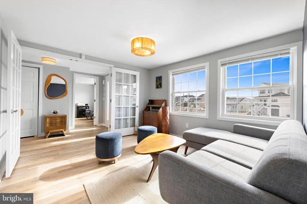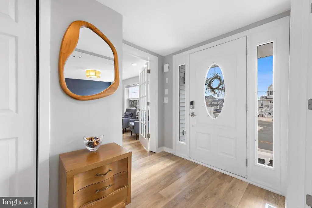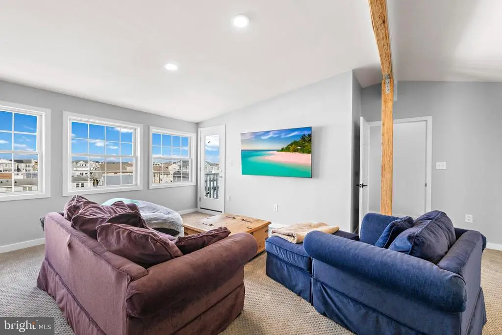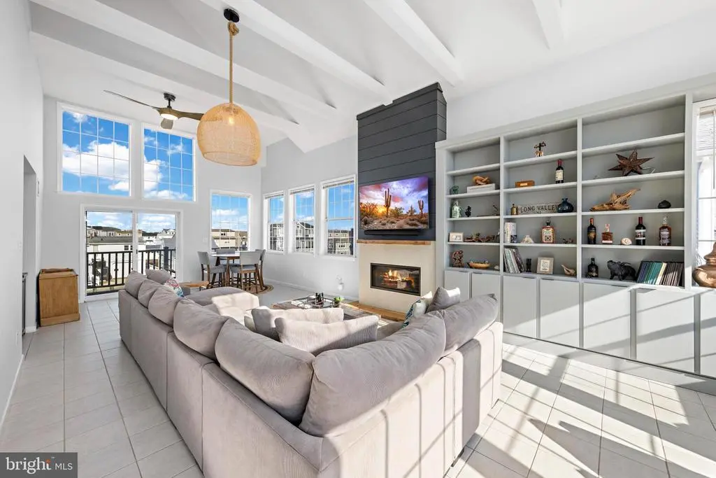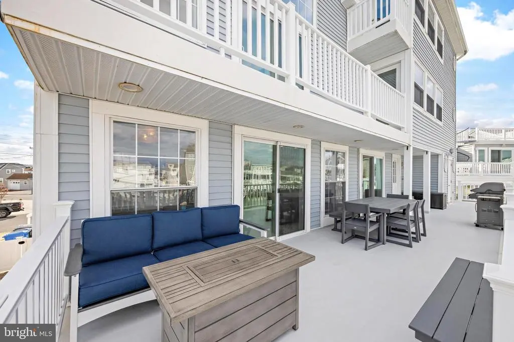 Welcome to 8 Willard Drive- An expansive waterfront home in a prime Beach Haven West location. Just five minutes by boat to the Barnegat Bay and a five minute drive to Long Beach Island’s pristine beaches, this home sits in one of the area’s most unbeatable boater’s locations. With more than 3,400 square feet of living space plus a 470-square-foot finished walk-up attic and four garage bays, the home is expansive and ready for large families, gatherings, and effortless entertaining. This raised and recently renovated home offers peace of mind with newer systems throughout, including HVAC, furnace, hot water heater, roof, appliances, fresh paint, new flooring, and fully paid-off solar panels for maximum efficiency. Inside, the main level begins with a welcoming entryway. To the right, a spacious office; to the left, a comfortable living area. This floor also features three bedrooms (one with private deck access), two and a half bathrooms, a dedicated laundry room, and a light-filled kitchen and dining area that open to the deck with beautiful water views. Head upstairs to the star of the home: a light-soaked great room with window-to-ceiling glass, soaring 14-foot vaulted ceilings, a brand new custom fireplace, and stunning views in every direction. Also on this level is the primary suite with walk-in closets, gorgeous water views, and private deck access, plus two additional bedrooms that can serve separately or function as a private guest suite complete with a bar sink and kitchenette. Above, the finished walk-up attic adds even more space for a game room, bunk room, studio, or creative retreat, along with additional storage. Outside, enjoy the best of waterfront living, featuring a paver patio, firepit, outdoor shower, a 60-foot vinyl bulkhead, and a 35-foot dock with quick access to open water. Decks on all three levels create beautiful indoor-outdoor flow for sunny summer mornings and breezy evening gatherings. Spacious, light-filled, and perfectly located, 8 Willard Drive checks all the boxes for a true waterfront paradise just moments from the bay and LBI’s beautiful beaches.