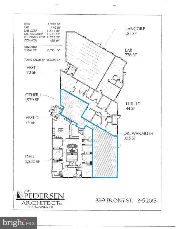 Attention Savvy Investors... Here's the sound real estate investment you have been looking for to add to your portfolio. Check out this 9,008 +/- sf ( 8,721 +/- sf net rentable area) one-story, four-unit commercial building sitting on 1.95 +/- acres. This property is well designed for medical professional services. You will appreciate this well constructed multi-tenant masonry and steel framed office building with a multi-angle pitched roof. This prime property offers 81 +/- parking spaces (including 4 designated for handicapped parking) on a macadam covered parking lot, pole-mounted lighting, concrete curbing and sidewalks and professional landscaping. The property is in the Zone X flood zone and the RP/LR-1 zoning district. The four (4) units layout are the following: Suite A - 1811 +/- sf , Suite B & C - 2391 +/- sf , Suite D - 1979 +/- sf and Suite E - 2352 +/- sf. Three of the four units are currently leased, and utilities are separately metered. The current gross annual income for the three leased units is $110,304 plus a pro-rata share of the expenses as additional income. Great location – walking distance to Inspira Medical Center and just minutes to Route 40 and Route 55. There is a 45kW natural gas powered Generac generator, which provides back-up power for Suites B and C . Great replacement property to complete a 1031 tax deferred exchange.