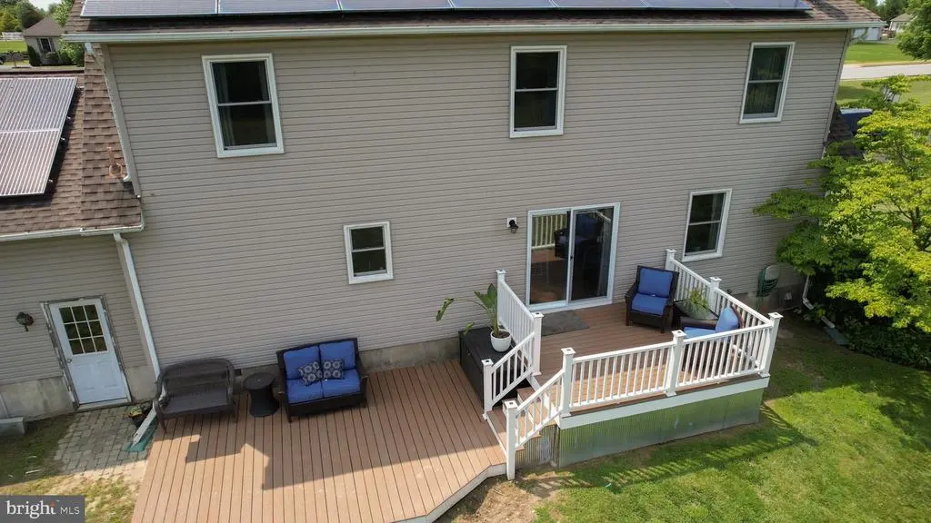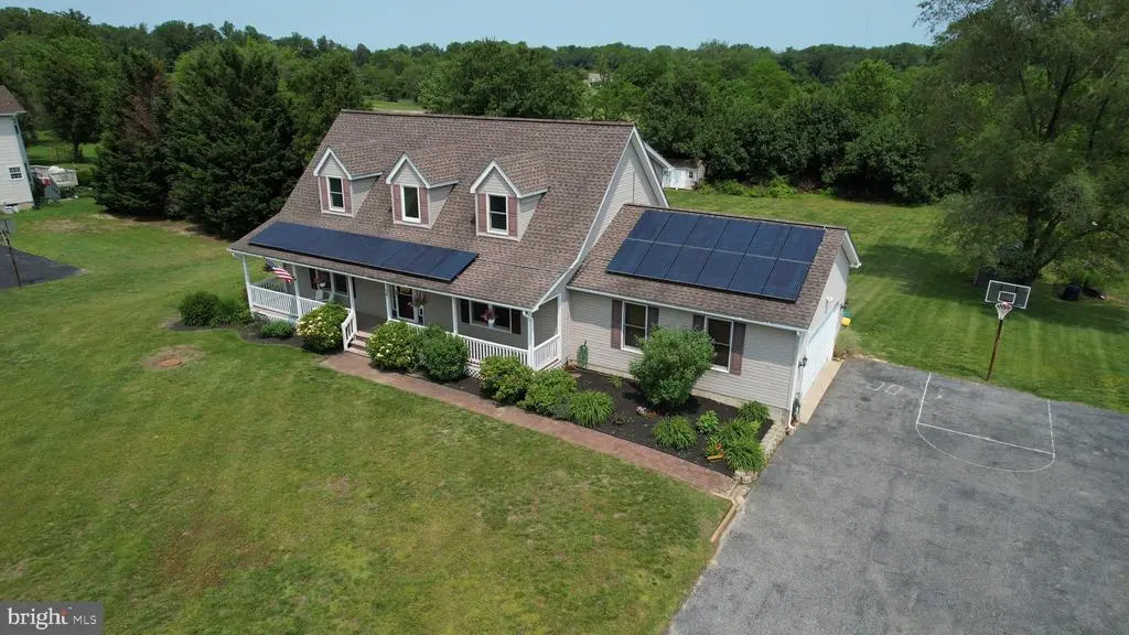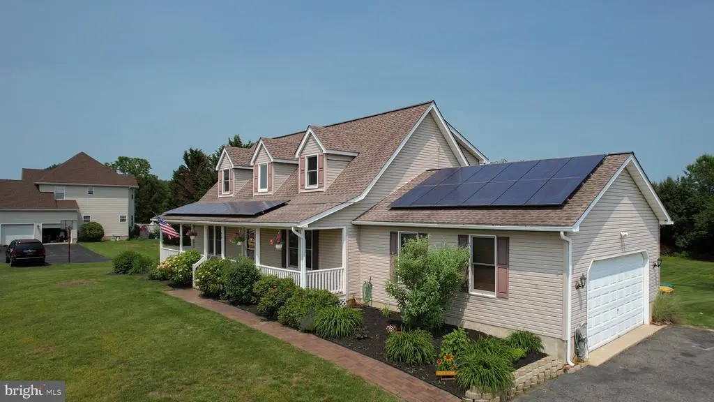 This charming 4-bedroom, 2.5-bath Cape Cod-style home offers over 2,100 square feet of comfortable living space on a full acre, backing up to scenic farmland for added privacy and natural beauty. The curb appeal is undeniable, highlighted by three eye-catching dormers. Step inside to be greeted by a stunning cathedral ceiling and a graceful staircase leading to the second floor. The spacious primary suite is conveniently located on the main level, just off the kitchen and dining area, and includes a full bath with a relaxing Jacuzzi tub. The kitchen was redone in 2021 to be a farmhouse style. The cozy living room is enhanced by custom sliding barn doors that add both charm and character. Additional highlights include a two-car garage with an extended workbench and a generous 6-foot-tall crawlspace accessible from the garage. Built as part of the Connectiv "Best Homes" energy efficiency program.