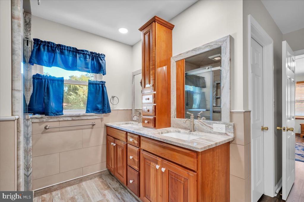 Attic, Attic/House Fan, Stall Shower, Tub Shower, Carpet, CeilngFan(s), Entry Lvl BR, Formal/Separate Dining Room, Master Bath(s), Wd Stove Insrt, Upgraded Countertops, Walk-in Closet(s), Water Treat System