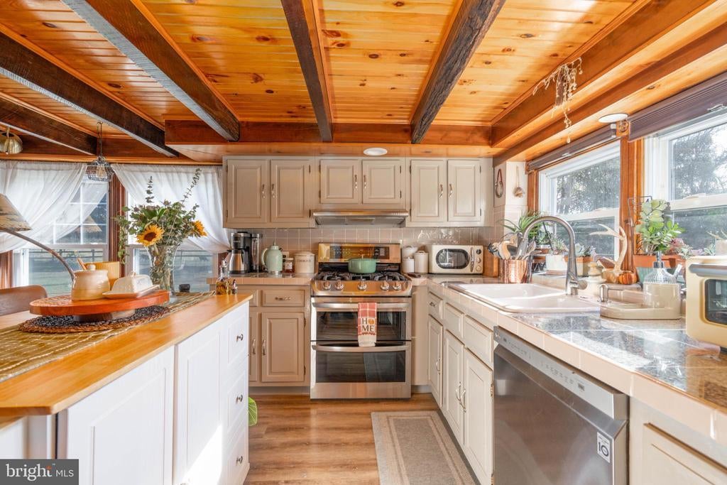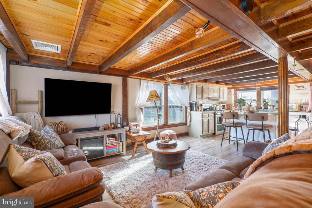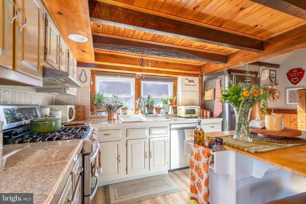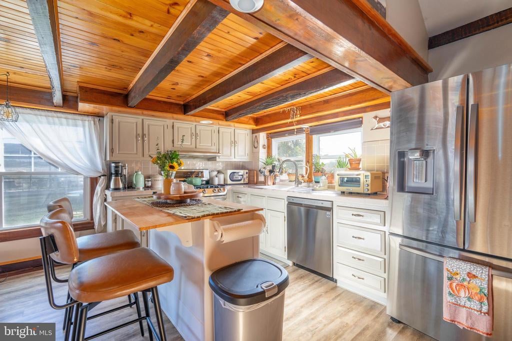 Exposed Beams, Pantry, Shades/Blinds