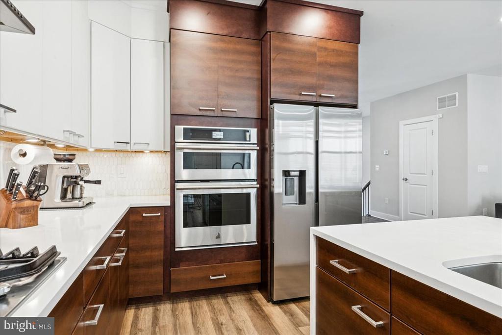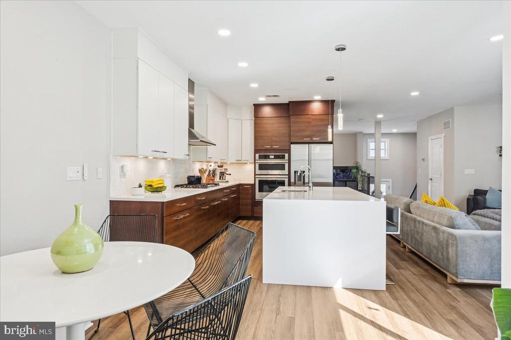 Montgomery Crossing • 0.4 mi to Starbucks & OrangeTheory • 0.5 mi to ShopRite Center • Private fenced yard • Finished lower level • Built 2020 • Near Princeton (5 mi) Luxury, location, and low-maintenance living converge in this 3-bedroom, 3.5-bath Montgomery Crossing townhome built in 2020. Designed for modern sophistication and everyday ease, the main level unfolds in an airy open-concept plan bathed in natural light. The designer kitchen impresses with quartz waterfall countertops, full-height 48-inch cabinetry, vented range hood, and a large island with counter-height seating beside an inviting breakfast area with built-in bench and hidden storage. The dining space features a striking custom accent wall, while the family room centers on a sleek gas fireplace and expansive windows that frame the sun-filled interior. Luxury vinyl plank flooring and upgraded fixtures tie every space together in contemporary style. Upstairs, the serene primary suite offers dual walk-in closets and a spa-like bath with quartz double vanity and classic subway tile. Two additional bedrooms share a beautifully finished hall bath, each showcasing the same elevated design. A full-size laundry is conveniently located on this level. The finished lower level (approx. 575 sq ft) extends the home’s versatility with a spacious layout including a flex room with closet and street level egress windows, full bath, and several large storage areas. Outdoors, the fully fenced yard is a private retreat—complete with paver patio, crushed-stone walkway, and lush lawn—ideal for morning coffee or intimate evenings under the stars. A screened enclosure discreetly houses trash and recycling for a polished look. Enjoy unmatched convenience: 0.4 mi to Starbucks, Jersey Mike’s, and OrangeTheory via Brecknell Way; 0.5 mi to Montgomery Shopping Center (ShopRite, movie theater, hardware store, dining); and 0.9 mi to the upcoming Montgomery Promenade with Whole Foods Market. Downtown Princeton is just 5 miles away. Set within the acclaimed Montgomery Township School District, this exceptional residence blends refined design, energy-efficient comfort, and a coveted location in one of Skillman’s most desirable communities.