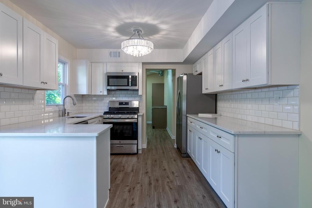 Welcome to this fully renovated cape, blending charm with modern living. 4 Beds, 2 full baths, a Living room, and a great room. Finished laundry room pantry. The spacious great room, formerly the garage, boasts soaring vaulted ceilings, creating the perfect gathering space for entertaining or relaxing. The brand-new kitchen features gleaming stainless steel appliances, granite countertops, and custom cabinetry, with wood laminate flooring flowing seamlessly throughout the home. Two completely renovated bathrooms add a touch of luxury, while thoughtful updates include a new roof, new HVAC, and a freshly paved driveway for worry-free living. Step outside to a tranquil, spacious backyard ideal for outdoor enjoyment. This commuter-friendly location is around the corner from the local elementary school and just minutes from major routes, shopping, and dining. A move-in-ready gem waiting to be called home!
