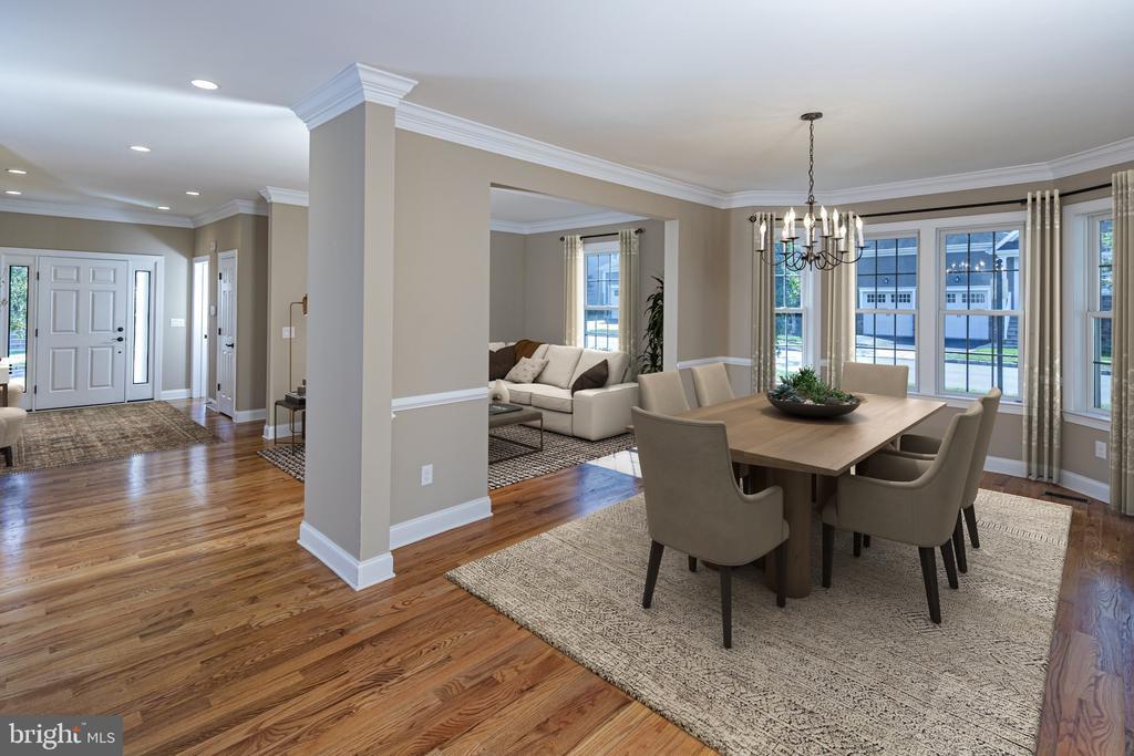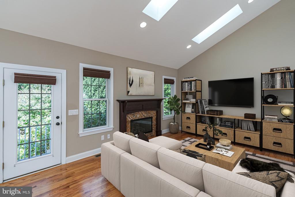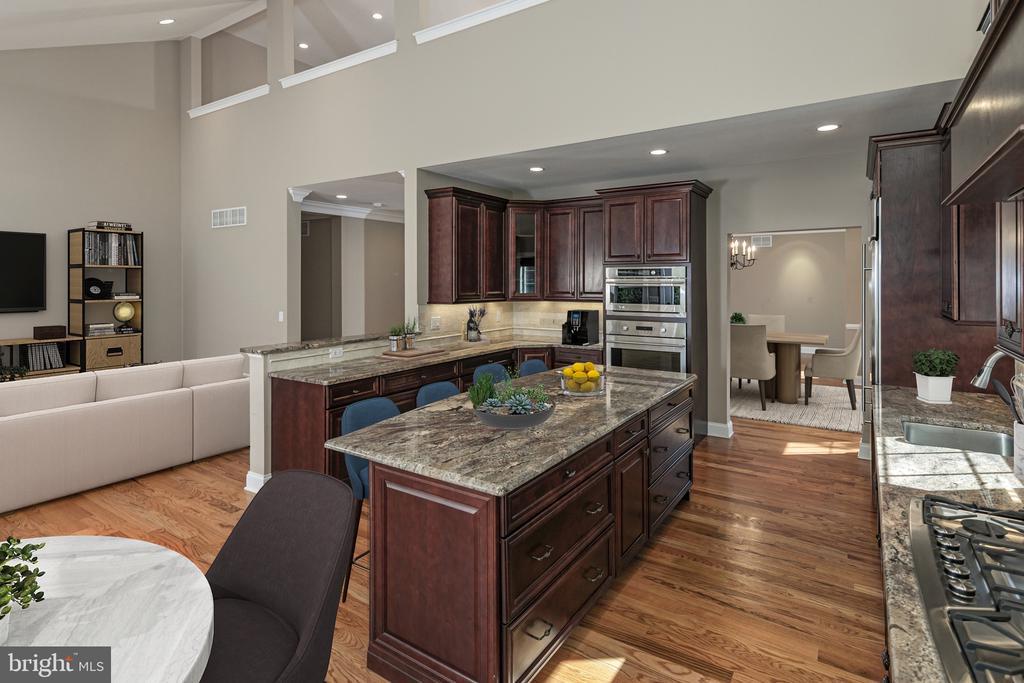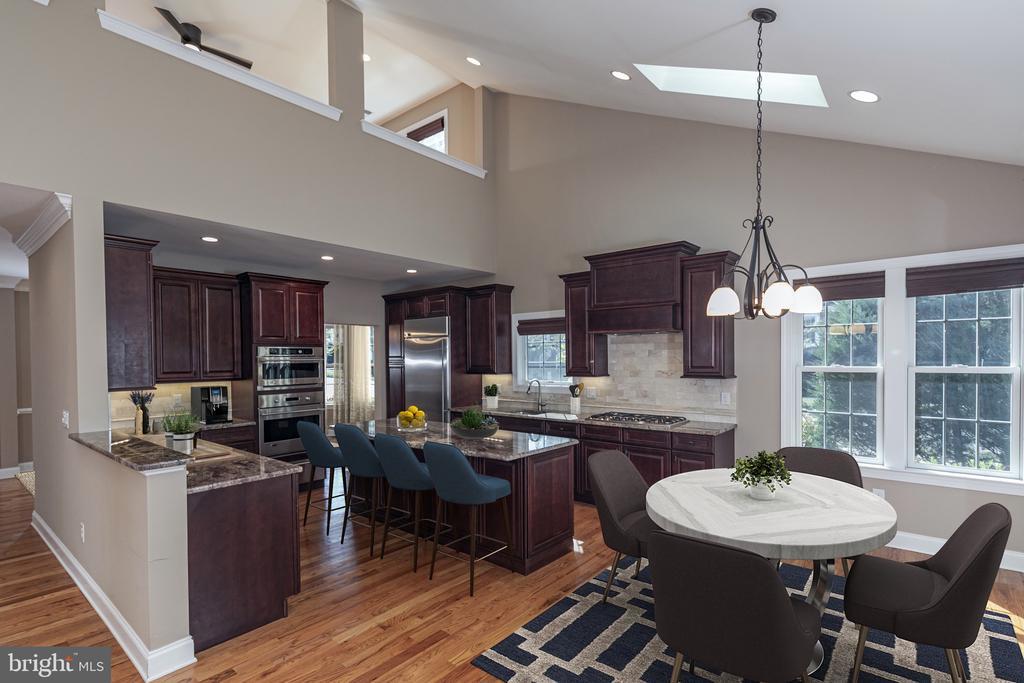 Set in the beautifully designed 55+ Tapestry community, this smartly modified Sovereign model enjoys a premium lot and close proximity to the exciting new shops and restaurants of Montgomery Promenade. The pristinely maintained interior features high ceilings with deep crown molding, gleaming hardwood floors and custom Hunter Douglas blinds, all enhanced by a warm, inviting color palette. A row of skylights within a vaulted ceiling brighten up the open family room, featuring a gas fireplace, and the adjoining kitchen, well-appointed with granite countertops and GE Monogram appliances. The formal dining room with a sunny bay has room for big holiday meals. An office presents flexibility for work, hobbies or a secondary first floor bedroom, while the spacious primary suite offers two walk-in closets and a bathroom with a generous granite-topped vanity and oversized shower with a bench. Upstairs, a large loft stands outside two comfortable bedrooms, each with its own neutral full bath. An enormous basement provides excellent storage and potential for a future home gym. Impeccably cared for and move-in ready, this home combines comfort, space, and style in one of the area’s most vibrant active adult communities. Some photos have been virtually staged.
