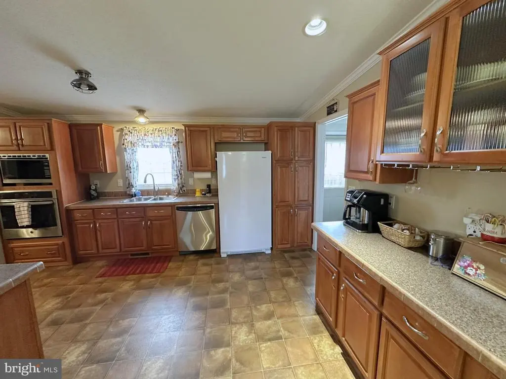 3 Bedrooms, 2 full baths with large living room with propane gas fireplace, large kitchen/dining combo, with recessed lighting, cathedral ceiling and crown moulding throughout. The kitchen has loads of counter space and storage with raised panel cabinets with adjustable shelving, double stainless-steel sink, and stainless exhaust fan over G.E. electric range top stove. This home is heated with a Coleman propane forced hot air furnace and has central air. There is a 10’ x 21’ deck, 10’ x 12’ patio, 8’ x 10’ shed, and 2 parking spaces. The windows are thermo pane tilt in with interior grids. Included in the sale: electric G.E. stainless built in oven, microwave, Rangemaster stainless hood, dishwasher, Whirlpool washer and dryer, blinds, and window treatments. Lot rent for new owner will be $875 per month. (Buyer must be approved thru Legacy Eagle View LLC) (Seller would like up to a 60-day rent back). Please check the Rules and regulation in the MLS documents for Legacy Eagle View.