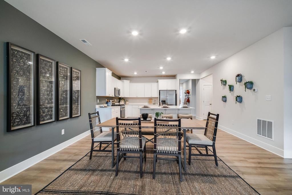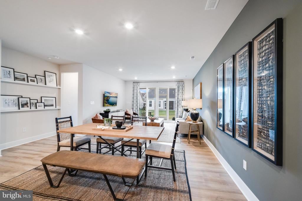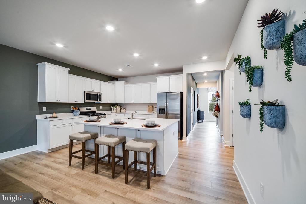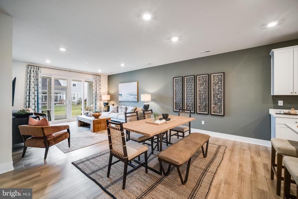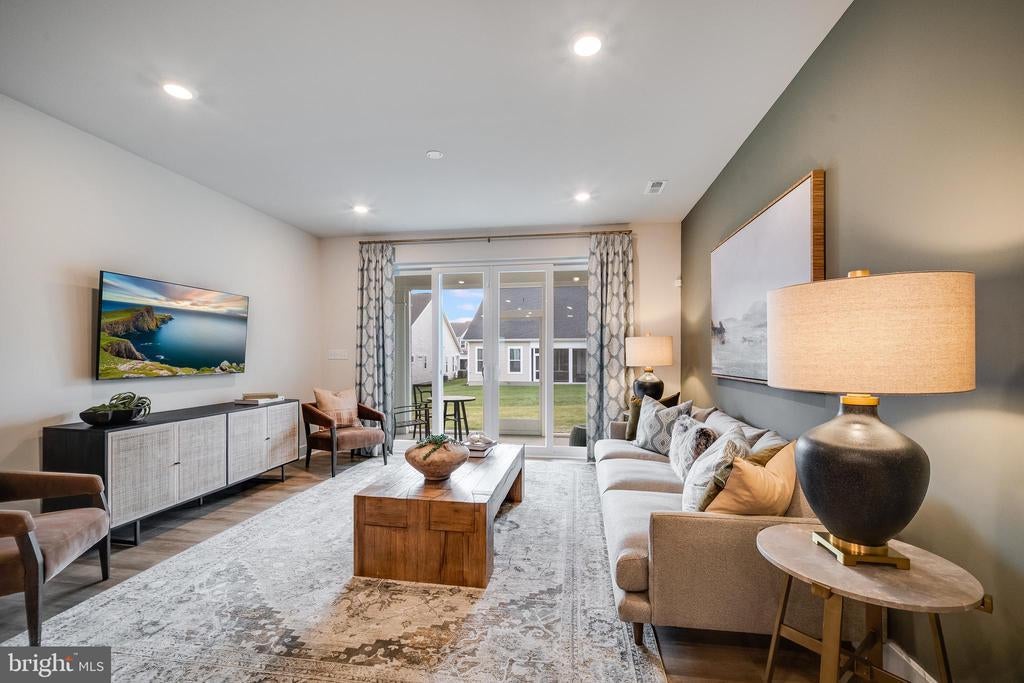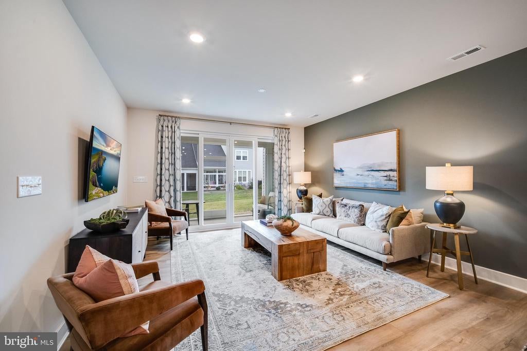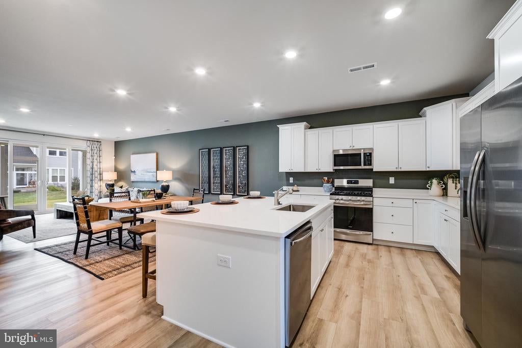 The Lincoln is a single-story villa for active adults, featuring a tray ceiling in the foyer and a flexible secondary bedroom. The open-concept kitchen, dining room, and family room. The kitchen includes an iced white quartz island, white soft-closing cabinets with upgraded hardware, stainless steel appliances, and a French door refrigerator. The covered porch with an extended paver patio is ideal for outdoor gatherings. The private owner's suite has an en-suite bathroom with granite countertops. Amblebrook offers resort-style amenities such as a pool, community center, sports and wellness campus, lounge and bar, card room, and art studio. Prices and features may change. Photos are for illustrative purposes. Clients must be accompanied by their agent on the initial visit.