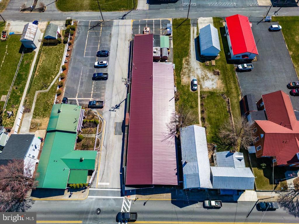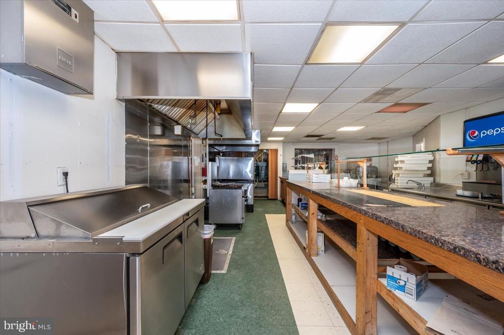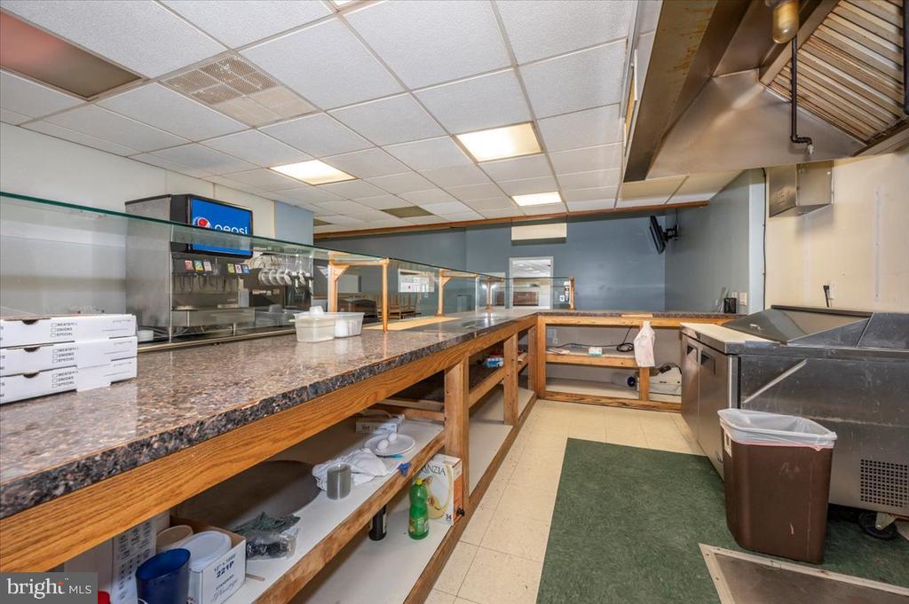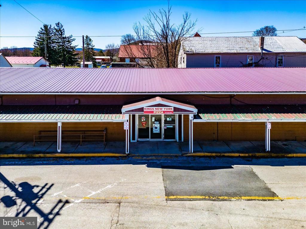 This spacious commercial building offers over 10,000 sq.ft. of versatile space previously occupied by a grocery store and pizza restaurant. With approximately 70% open floor space and the remaining 30% divided into a warehouse, kitchen, and prep areas, the layout is ideal for a wide range of business uses. The property features public and private restrooms, and ample parking is available with 36+ paved spaces