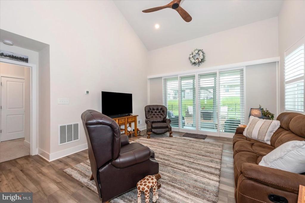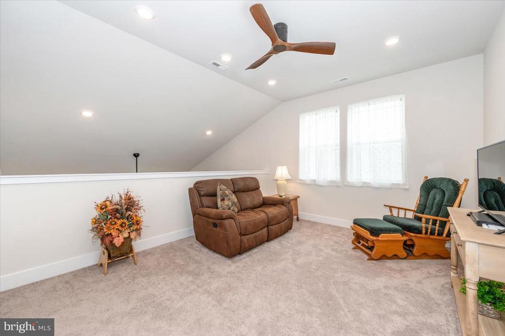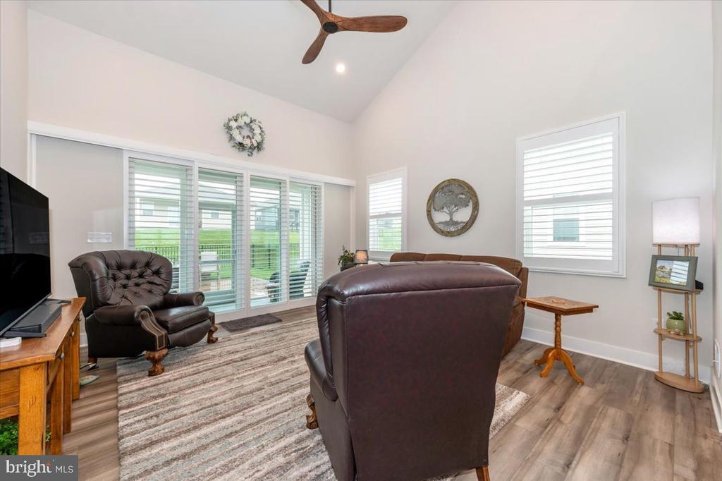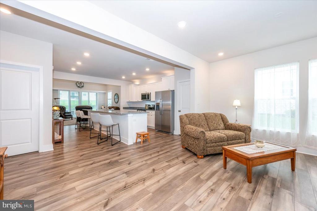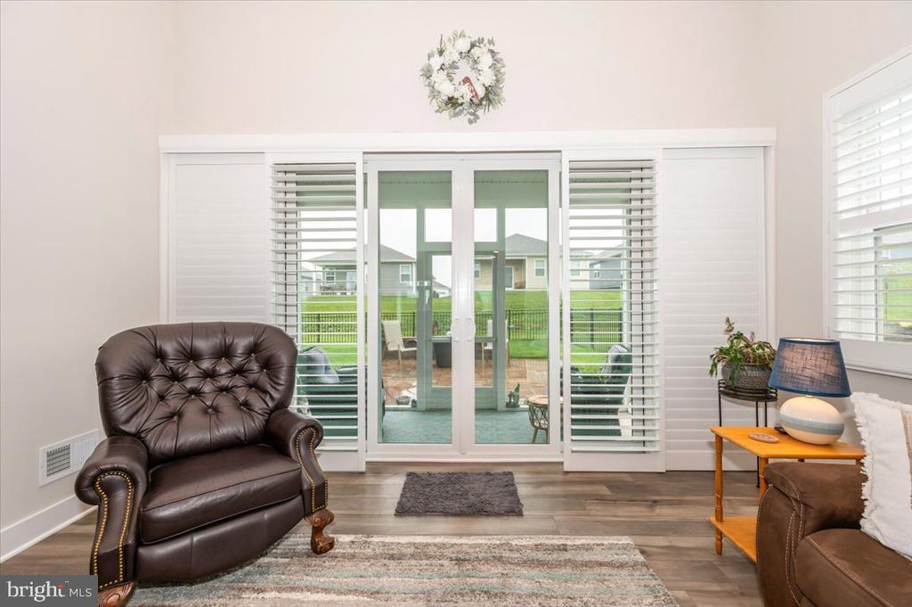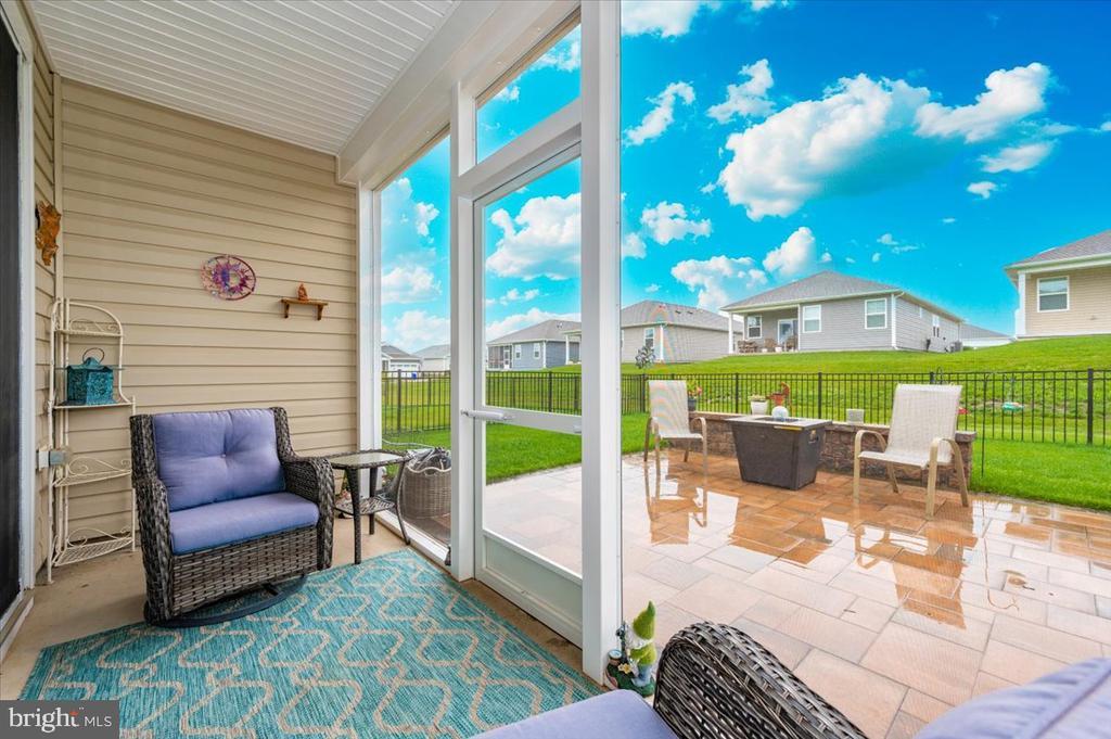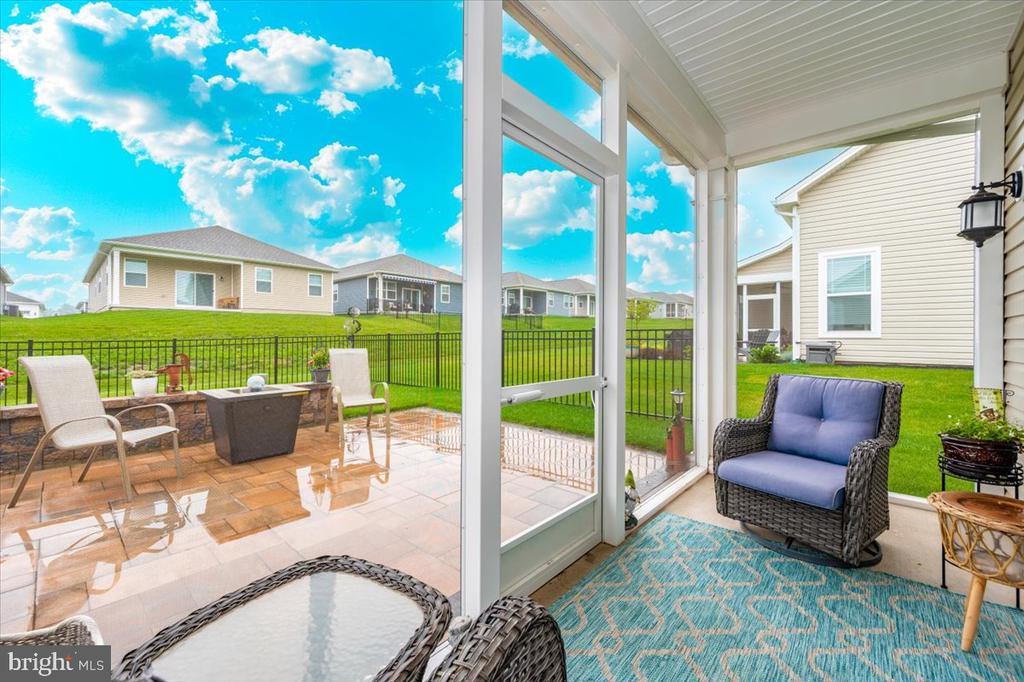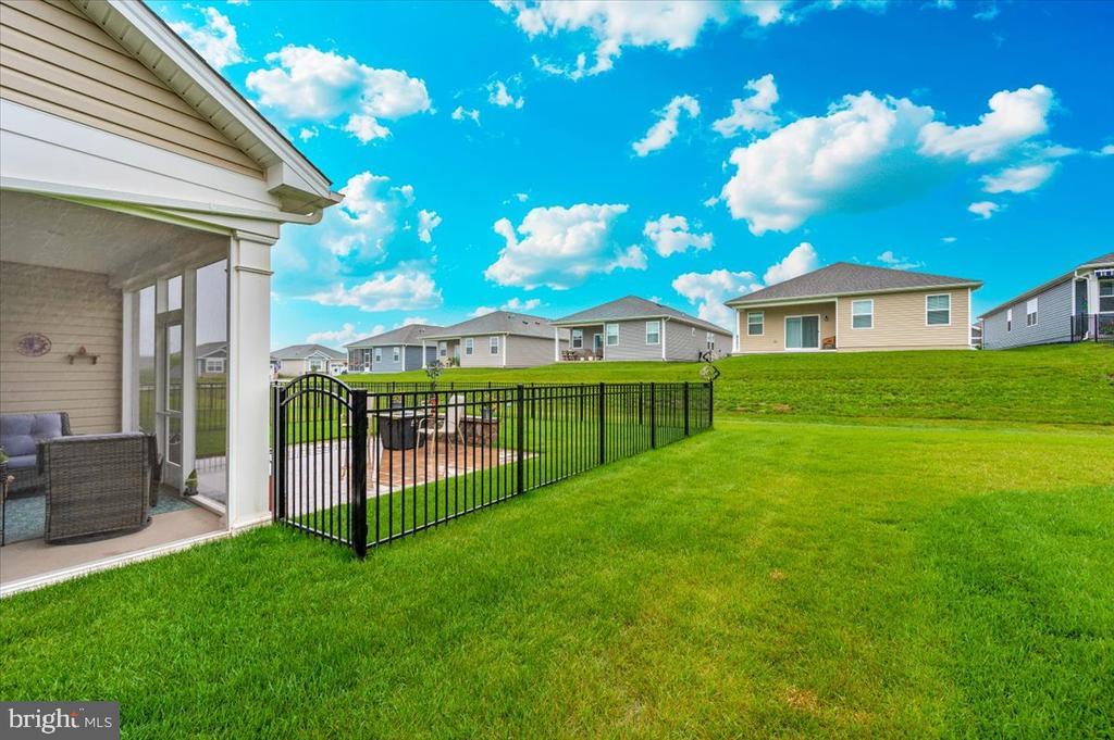 Welcome to 73 Boneset Drive, a stunning 2,739 square foot home nestled in the heart of the sought-after Amblebrook community in Gettysburg. Built in 2023, this expansive two-story property showcases thoughtful design and luxurious upgrades throughout. From the moment you arrive, the large covered front porch offers a warm and inviting entry—perfect for relaxing with a morning coffee or greeting neighbors. The main level opens with a bright sitting area and flows effortlessly into a spacious living room and chef’s kitchen featuring a massive granite island, stainless steel appliances, and beautifully upgraded cabinetry. Elegant custom plantation shutters enhance both style and privacy throughout the home. The main-level primary suite provides a peaceful retreat, complete with a large walk-in closet and a spa-like en-suite bathroom offering a tiled shower and dual vanities. A powder room, laundry area, and attached one-car garage add to the everyday convenience. Upstairs, a spacious loft creates a flexible second living area, flanked by two generously sized bedrooms and a full bathroom. An additional finished storage room upstairs provides versatility and could easily be converted into a fourth bedroom, sewing room, or recreation space. Step outside to enjoy the beautiful screened-in porch overlooking a fully fenced backyard, which now includes a stunning custom stone patio—perfect for outdoor entertaining or quiet evenings at home. Located within the vibrant 55+ Amblebrook community, this home blends upscale living with a resort-style atmosphere, offering the perfect combination of space, comfort, and serenity.