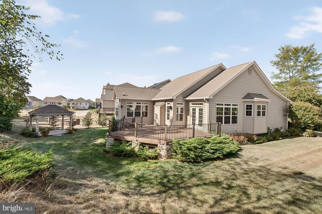 This stunning ranch home sits on a desirable corner lot and welcomes you with timeless curb appeal—stone facing, brick accents, charming dormers, and a brick paver driveway. Over 3000 sq ft of finished living area. Inside, the great room centers around a cozy gas fireplace, while floor-to-ceiling windows with transoms flood the space with natural light. The gourmet kitchen is designed for both style and function, featuring granite countertops, upgraded cabinetry, and hardwood flooring that flows through the foyer, kitchen, and breakfast area. The owner’s suite offers a spa-like retreat with a soaking tub and ceramic tile shower. Two additional bedrooms share a full bath, and the main-level laundry adds everyday convenience. The finished lower level expands your living space with LVP flooring, perfect for a recreation room, media space, or home office. Step outside to enjoy exceptional outdoor living. Cumaru decking—premium Brazilian hardwood known for its strength and natural resistance—provides a beautiful backdrop for the large gazebo, ideal for entertaining or quiet relaxation. Just a short stroll to the community pool, pickleball courts, golf course, and clubhouse. Conveniently located near Rt. 15, historic Gettysburg, and shopping. Open House Saturday Sept. 20th from 1-3pm