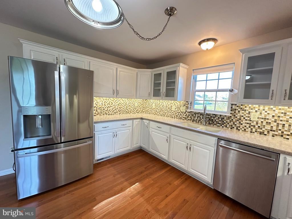 This charming end-of-row townhouse in Cedarfield offers a perfect blend of comfort and style. Built in 2006, with many upgrades between 2021-2025, which include roof, heat pump, water heater, garage door, hardwood flooring, refrigerator, stove, and the list goes on and on. This ranch-style home features 3 spacious bedrooms and 2.5 bathrooms, ensuring ample space for relaxation and privacy. Step inside to discover beautiful hardwood floors and elegant crown moldings that enhance the inviting atmosphere. The eat-in kitchen boasts upgraded countertops and modern appliances, including a dishwasher, microwave, and electric range, making meal prep a delight. Enjoy cozy gatherings in the formal dining room or unwind in the bright breakfast area. The large primary suite that is on the main level features a double bowl vanity and a generous walk-in closet. With a main floor laundry and an attached 2-car garage, convenience is at your fingertips. Outside, relax on the patio or take a stroll along the community's scenic jog/walk path. The association takes care of lawn maintenance and snow removal, allowing you to enjoy your home worry-free. Experience the warmth and comfort of this lovely property today!