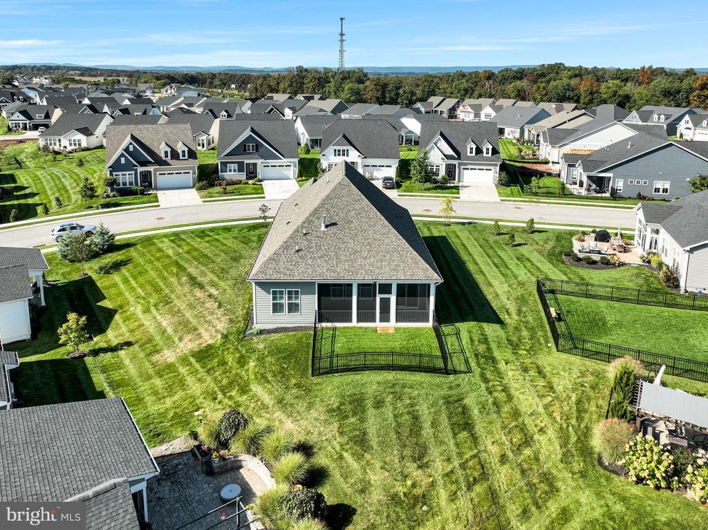 Welcome to 23 Highland View Lane in Amblebrook. This DRB Enthusiast model is uniquely situated in the center of two lots and was built with attention to detail. Throughout construction, the owner worked closely with the project manager and also brought in a private inspector, who noted this was one of the best-built homes he had seen in the community. Every stud was treated with a 30-year termite preventative, offering rare peace of mind not typically found in homes. Inside, the open floor plan showcases upgraded luxury vinyl plank flooring, a beautifully designed kitchen with fantasy brown granite countertops, upgraded pendant lighting, added windows in the café area, and a cozy fireplace in the great room. The primary suite is complete with an upgraded bath featuring a large soaking tub, expanded shower with upgraded doors, and tasteful finishes throughout. There is also a "flex room" that can easily adapt to your lifestyle. You could use it as a home office, craft space, guest room, or cozy reading nook. A rough-in for a utility sink was added in the laundry room, and all Whirlpool appliances include a transferable extended warranty. The HVAC system also has a transferable maintenance agreement in place. After settlement, the owners continued to enhance the home with a screened-in porch, backyard fence, and plantation shutters in the great room, bedrooms, and flex room, along with pull-down shades in the flex room. Additional upgrades include a custom coffee bar with cabinets, granite, and mini-fridge, a water softener with a maintenance agreement, washer and dryer with warranty, utility shelving, a ceiling fan with light in the great room, and a motion detector light at the rear entry. This home offers all the benefits of new construction without the wait, paired with the vibrant 55+ lifestyle of Amblebrook. Also, because of its location, an irrigation system is in place, that you won't find in a new build! Residents enjoy an expansive clubhouse with indoor and outdoor pools, state-of-the-art fitness and wellness centers, walking trails, sports courts, a community garden, a dog park, and a full calendar of clubs, activities, and events designed to bring neighbors together. Every day here feels like a retreat.