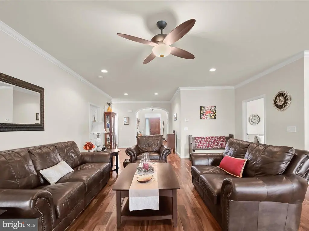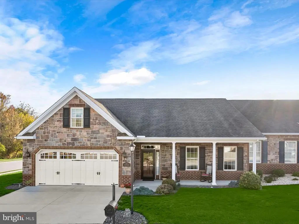 Welcome to this charming rancher in the heart of the Littlestown community of Adams County! This beautifully maintained home features a classic brick and stone exterior with landscaped grounds and a welcoming front patio. Step inside to find hardwood floors that flow through the main living areas, where the gas-burning fireplace with dentil accent molding serves as the perfect focal point. The open-concept design leads seamlessly into the kitchen, complete with 42” cabinetry, a decorative backsplash, display and wine storage, ample counter space, and stainless steel appliances. The dining area opens to a screened-in patio overlooking the fenced backyard and additional patio, ideal for relaxing or grilling. The primary bedroom suite offers plush carpet, high ceilings, custom blinds, and an en-suite bath with a double vanity and convenient access to the walk-in closet and laundry area. An additional bedroom and den/possible guest room, and a full hall bath complete the layout. Additional highlights include an attached two-car garage with a floored attic for all your storage needs, and proximity to major commuter routes such as PA-194, US-15, and Baltimore Pike. Perfect for those seeking single-level living with modern comfort and timeless charm!