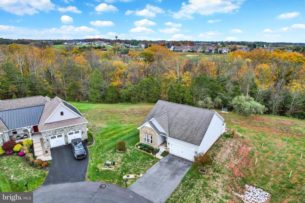 Looking for privacy? Nestled on a quiet cul-de-sac in Cumberland Crossing at The Links of Gettysburg, this charming ranch-style home offers the perfect blend of comfort, convenience, and peaceful surroundings just south of historic Lincoln Square in Gettysburg and moments from the MD/PA line. This move-in-ready home features an inviting open-concept layout with 9-foot ceilings, crown molding, and light-filled living spaces. The living room boasts a gas fireplace with a handsome stone hearth and built-in seating, while the eat-in kitchen shines with stainless-steel appliances, granite countertops, and a breakfast bar. A first-floor laundry room with pantry and coat closet adds everyday practicality. The primary suite includes a walk-in closet and private bath with a walk-in shower, both with handy space saving sliding doors. Downstairs, the finished lower level features a 38’ x 16’ family room with recessed lighting, plus a 353-square-foot unfinished utility area with a gas water heater, gas HVAC system, radon mitigation system, 200-amp electric panel, and sump pump perfect and plenty of room for storage or future expansion. Outdoor living is easy with an 8’ x 6’ covered concrete front porch and multi-level rear decks (10’ x 10’ and 11’ x 10’) overlooking a wooded backdrop for privacy. A wonderful opportunity to enjoy one-level living in a peaceful, well-kept community near golf, shopping, and all the charm of Gettysburg!