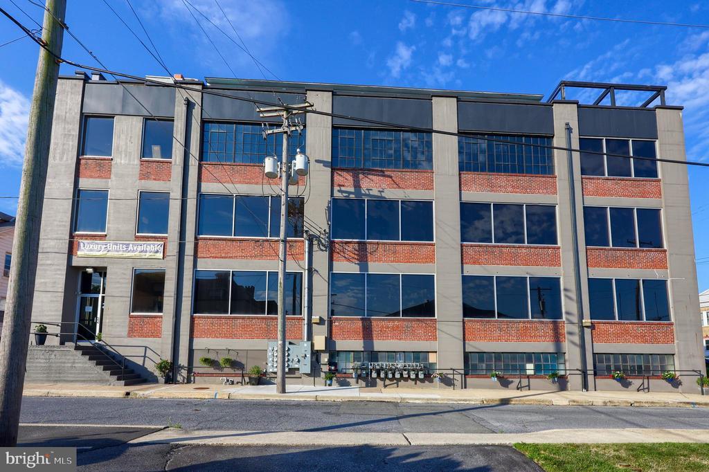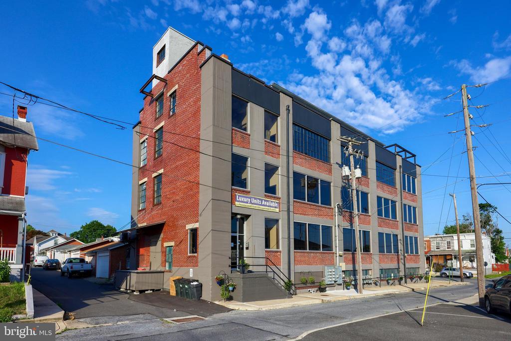 Professional Space at Sterley Lofts This completely renovated luxury condo building gives residents and business owners alike the opportunity to feel like a true city slicker — without paying like one! Located in Shillington close to a variety of restaurants and amenities, as well as Governor Mifflin high school. Through the main entrance is a welcoming common area, enhanced by high ceilings and large windows with an awesome old school service elevator with sliding garage door entry. This 1753 SF, first-floor commercial space has a modern feel with industrial touches, boasting large open spaces, a kitchenette, powder room, and storage. A great residential unit is also included on the first level with two bedrooms, one bathroom, and 1427 SF, as well as its own private entrance. Its open concept draws you from the main living space, featuring tile and vinyl flooring, high ceilings, and exposed brick. The kitchen and dining area is an entertainer's dream, featuring KraftMaid cabinetry with granite countertops and tile backsplash, stainless steel appliances, double sink, and floating breakfast bar that overlooks the open dining space. Each bedroom is enhanced by newer vinyl flooring and large windows, while the shared bathroom has a tile shower/tub. This unit also enjoys its own laundry, and extra home office space. Detached garage space is also available - ask LA for details.
