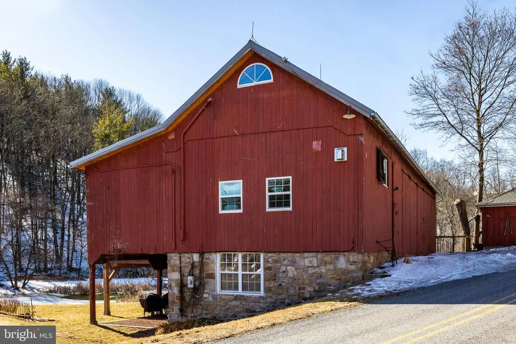 Exceptional opportunity to acquire a turnkey farm/retreat situated on 50+ acres nestled between the Appalachian Trail and Hawk Mountain. Charming 18th century farmhouse encompassed by wooded and tillable land, two ponds, a creek, hiking trails, multiple gardens, pastures, and stunning panoramic mountain views. The property also features a barn ideal for hosting events, seven cottages, yoga studio, gym, and sauna; all thoughtfully renovated and designed by the current owner. Income producing property that has previously hosted weddings, retreats, AirBnB guests, and other private events. Fantastic birdwatching in a serene setting. Ideally situated with two parallel road access points. Potential to design and build your dream residence perched above the farm with spectacular sunrises and sunsets over the mountaintops. Professionally managed (property manager can remain, at buyer's option). Only an hour and a half drive to Philadelphia, two hours to New York City, and 35 minutes to Lehigh Valley International Airport. Clean and Green property for preferential taxes.