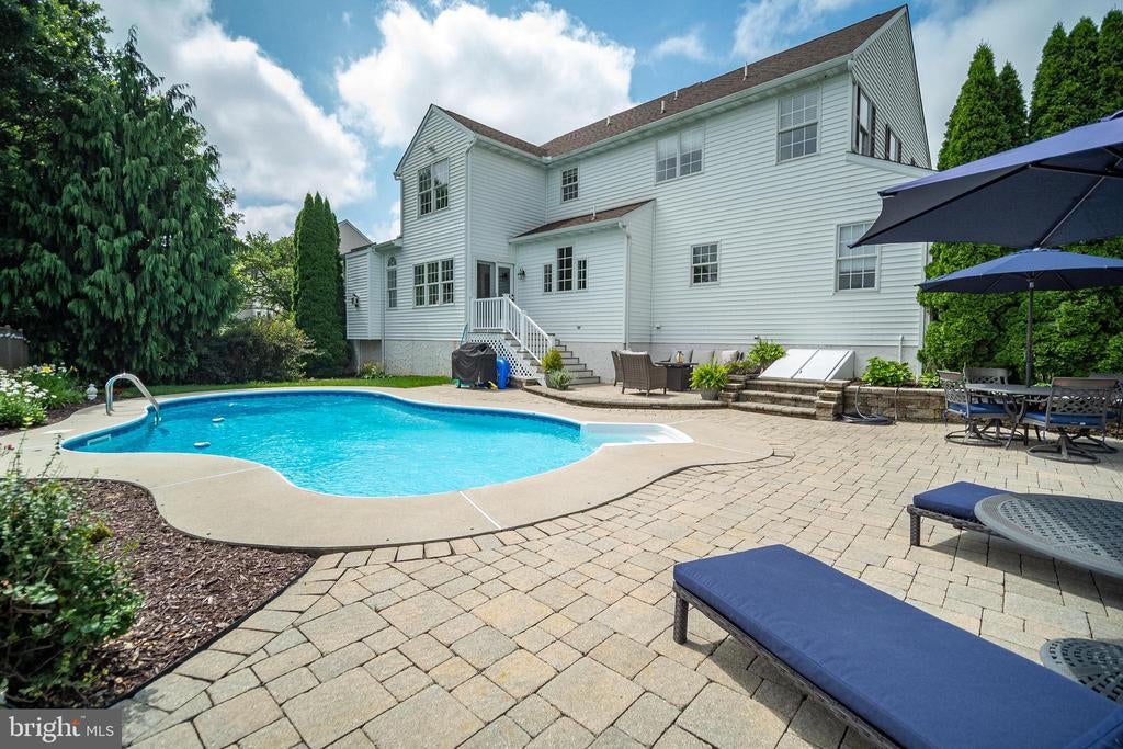 Absolutely stunning 2-story stone and vinyl home in the highly desirable Rosewood Hills Development! Boasting over 3,700 sq ft of living space, this 5-bedroom, 3.5-bath residence offers luxury, comfort, and versatility. The main level features a grand foyer with hardwood flooring, formal living and dining rooms with crown molding, and a gourmet kitchen with a large center island, newer stainless steel appliances, and a spacious pantry. Enjoy informal meals in the breakfast area or relax in the sunroom with access to the beautifully landscaped rear yard. The expansive family room includes a gas fireplace and recessed lighting, while a flexible first-floor office can double as a game room or potential bedroom. A powder room and laundry room with storage complete the main level. **Highest and Best by 7/31 at 7 P.M.** Upstairs, the primary suite impresses with a cathedral ceiling, sitting area, and a luxurious bath featuring a soaking tub, stall shower, and double vanity. Two bedrooms share a Jack-and-Jill bath, and two additional bedrooms are served by a full hall bath. The lower level offers endless possibilities and is already plumbed for a full bath. Step outside to your private oasis with a paver patio, deck, and gorgeous in-ground pool. A 3-car attached garage and large driveway provide ample parking. Home is equipped with a holiday light package and speaker system. Improvements include newer flooring throughout, newer roof, gutters and downspouts, newer heating and a/c units and new pool pump. Conveniently located near shopping, dining, schools, and major highways. This exceptional home is a must-see!
