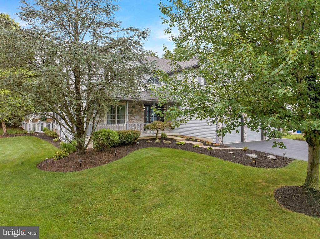 Private Resort Living on Premiere Green Valley Estates Lot A rare opportunity to own a private resort-style home with flexible living space and timeless design, tucked away in one of the area’s most desirable neighborhoods. Nestled at the serene edge of Green Valley Estates, this hidden gem sits on one of the community’s largest lots — perfectly positioned across from open fields and playgrounds for added privacy and picturesque views. A striking stone and vinyl exterior with a welcoming covered front porch offers both curb appeal and a warm welcome to visitors, only to reveal a grand 2-story, tile foyer with an elegant, curved staircase. Cozy up by the awesome gas fireplace with a wood mantle in the living room. And follow the rich hardwood flooring into the formal dining room, where trey ceiling detail, crown molding, chair rail, and classic picture frame molding set the stage for memorable dinners. The inviting family room off the kitchen creates a casual space to unwind with laminate flooring and ceiling fan, while the stunning tile sunroom with cathedral ceiling, dry bar, wall of windows, and French doors to the dining room blends indoor and outdoor living beautifully. The family chef is perfectly equipped in the gourmet kitchen, thanks to a large center island, granite countertops, tile backsplash, stainless steel appliances including built-in dishwasher, microwave, and stove with electric cooking, pantry, and breakfast room with access to the back patio through sliding glass doors. A main floor bedroom with two closets and a private en-suite bath is the perfect set up for in-laws or visiting guests, and a nearby tile laundry room offers additional convenience. Upstairs, an open hardwood landing overlooks the foyer below before leading to the Master Suite with hardwood flooring, crown molding, walk-in closet, and a luxurious ensuite bath featuring a skylight, new soaking tub, stall shower, and double marble vanity. Four additional spacious bedrooms with carpet and ceiling fans, including a potential home office or flex space accommodate everyone in the family, while a full bath with double vanity, tile flooring, and tub/shower is just across the hall. A fully finished, carpeted rec room is the perfect entertainment space, boasting a fantastic built-in wet bar with granite countertop, tile backsplash, illuminated open shelving and glass facade, and a mini fridge, as well as a tile powder room with granite vanity. Step into your own backyard oasis featuring a heated, in-ground concrete pool with integrated spa and waterfall, expansive patterned concrete patio and walkways — ideal for entertaining or relaxing in seclusion. The backyard is professionally landscaped and thoughtfully designed for privacy, blending natural beauty with functional outdoor living, while a spacious 3-car garage and an outdoor shed provide plenty of storage. Seller is offering a 1-year home warranty.