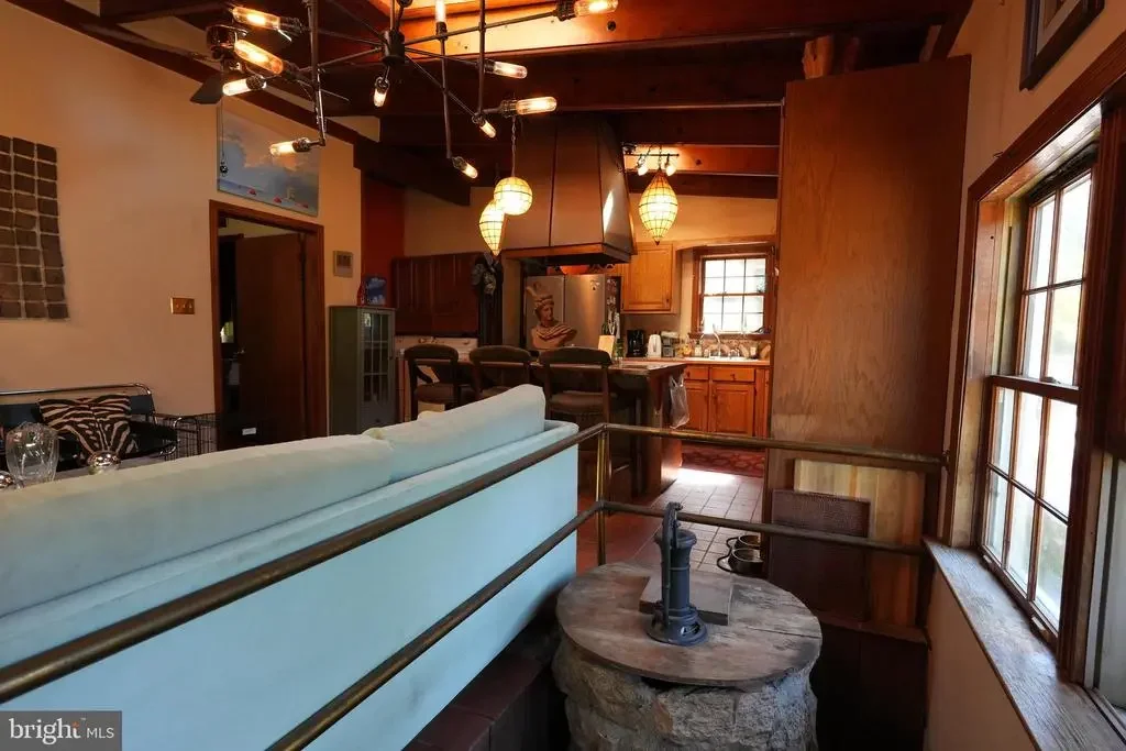 Welcome to this captivating c.1800 stone farmette, where timeless charm meets colorful garden splendor. Tucked away on 1.3 beautifully landscaped acres, this one-of-a-kind property offers a soul-soothing escape in a storybook setting. Inside, the home features a bright and airy layout with exposed beams, wide plank floors, and a dramatic stone fireplace anchoring the main living space. The original dining room and parlor retain their historic character, while a private in-law suite with a large bedroom and full bath on the first floor adds flexibility for extended family or guests. Two additional bedrooms grace the second floor, with a fully finished third floor offering charming sleeping quarters under the eaves. Garden lovers will fall head over heels, this property boasts the most vibrant, lovingly curated flower beds you’ll see. A stone pathway winds alongside the home through blooming borders, leading to a sunny back patio surrounded by lush plantings and bursts of color in every direction. Out back, the c.1900 stone-and-frame bank barn retains classic architectural details, with original beams, footholds, and stalls intact. The lower level is well preserved and functional, while the main floor offers tremendous storage or creative space. A chicken coop, currently home to hens and a proud rooster, and a root cellar add to the property's rustic charm. Though no longer standing, the original blacksmith shop's stone foundation remains at the edge of the lot, echoing the rich past of this early homestead. Recent updates include a newer roof and modern heating system, blending comfort with history. This property offers peace, beauty, and a deep sense of place, perfect for anyone looking to slow down and enjoy the simple, meaningful pleasures of country life.