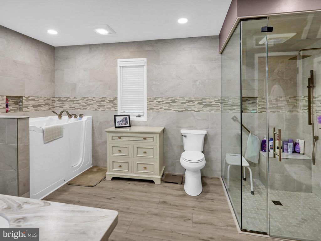 Additional Stairway, Bar, Soaking Tub, Bathroom - Jetted Tub, Stall Shower, Tub Shower, Bathroom - Walk-In Shower, Built-Ins, Carpet, CeilngFan(s), Central Vacuum, Elevator, Exposed Beams, Pantry, Master Bath(s), Recessed Lighting, Spiral Staircase, Upgraded Countertops, Walk-in Closet(s), Water Treat System, Wet Bar/Bar, Shades/Blinds, Wood Floors