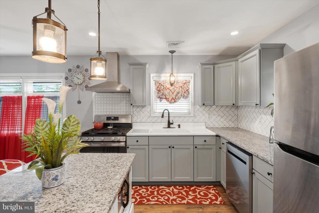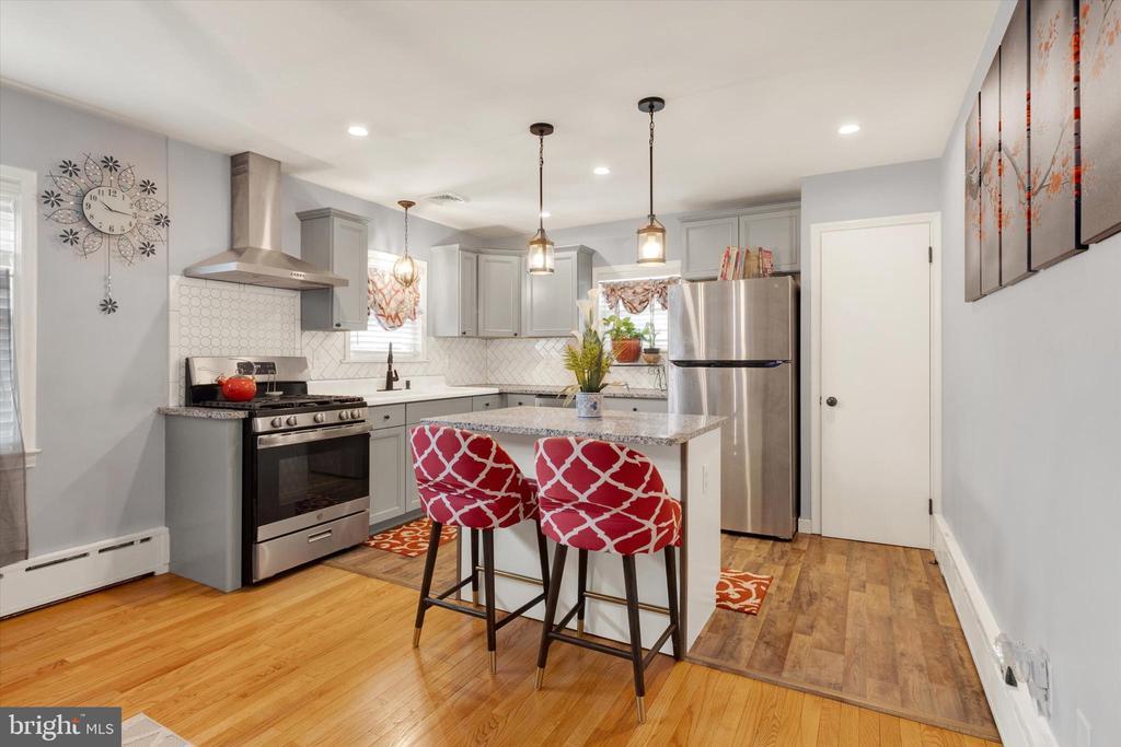 Take a look at this charming brick single in the Governor Mifflin School District, full of curb appeal and modern updates! Inside, the home features a beautifully remodeled kitchen with stainless steel appliances, gas cooking, an exhaust hood, dishwasher, refrigerator, recessed lighting, new cabinetry, a tiled backsplash, and a convenient island. The spacious living room offers refinished hardwood floors and recessed lighting, while the updated bathroom includes a tiled shower, modern vanity, and fresh lighting. Both bedrooms are comfortably sized, and the large basement, with egress and recessed lighting already in place, offers the opportunity to create a third bedroom or additional living space. Outside, you’ll find a flat backyard with newly added arborvitae for privacy, new retaining walls along the driveway, and fresh gutters with gutter guards on the front of the home. A macadam driveway leads to the garage, giving plenty of space for parking and convenience. Additional updates include a newer electrical panel, newer vinyl replacement windows, economical gas heat, new insulation to keep temperatures comfortable in the home, a new concrete pad in the rear of the home, and a newer central air system. Schedule your showing today and see everything this home has to offer!