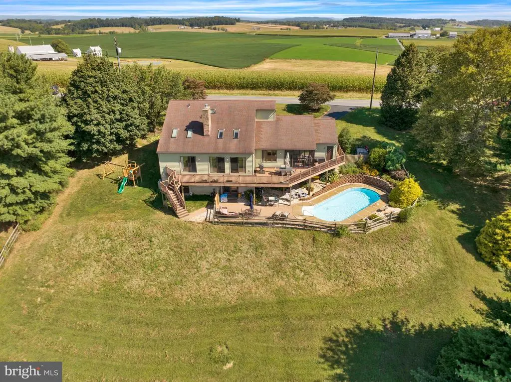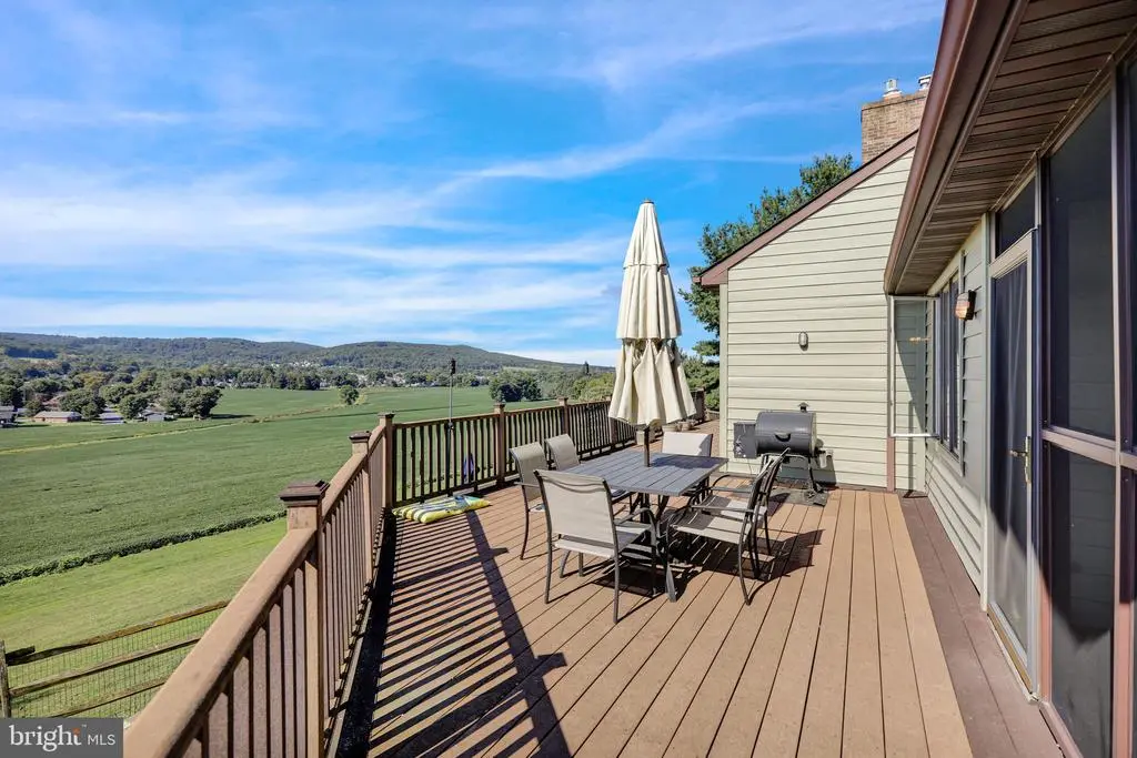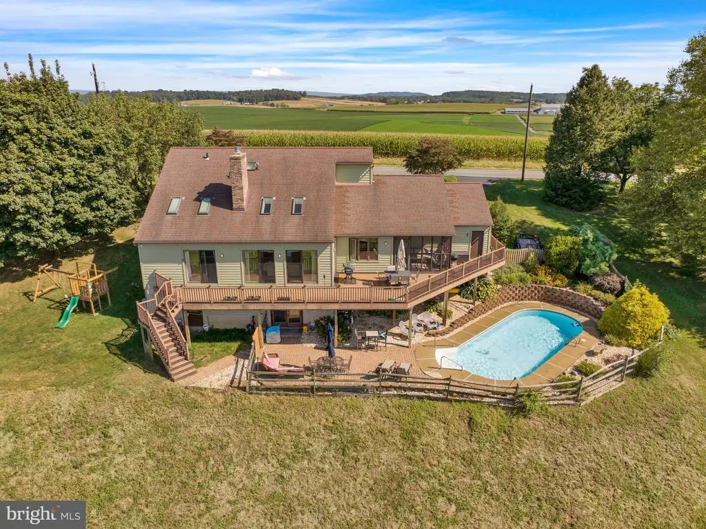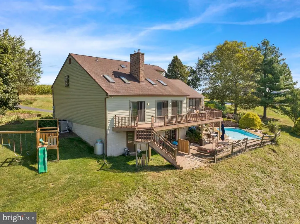 Welcome to 356 Big Spring Road in the desirable Conrad Weiser Area School District. Tucked away on a beautiful lot with a wrap around driveway, this home immediately sets a warm and inviting tone. Step inside to a bright foyer with soaring vaulted ceilings that lead you into the heart of the home. The living room is filled with natural light from skylights and glass doors to the back deck, while a floor to ceiling brick fireplace and custom built ins create a cozy focal point. The kitchen offers plenty of cabinet space, a center island with seating, and flows seamlessly into the formal dining room, where large windows frame sweeping views of the countryside. Just off the dining room, a charming sunroom invites you to slow down and soak in the scenery. The main level primary suite is a private retreat with direct access to the deck—perfect for peaceful mornings or quiet evenings. The en-suite bathroom feels spacious and relaxing with a double vanity, a jetted soaking tub, and a separate stall shower. A convenient laundry room and half bath complete the main floor. Upstairs, two additional bedrooms share a full bath, while the finished lower level adds even more living space with a wet bar, a fourth bedroom, another full bath, and walk out access to the patio. Outside, summer fun awaits with a sparkling inground pool set against the backdrop of open farm fields, offering both privacy and breathtaking views. This home combines comfort, space, and timeless charm—schedule your showing today and see it for yourself.