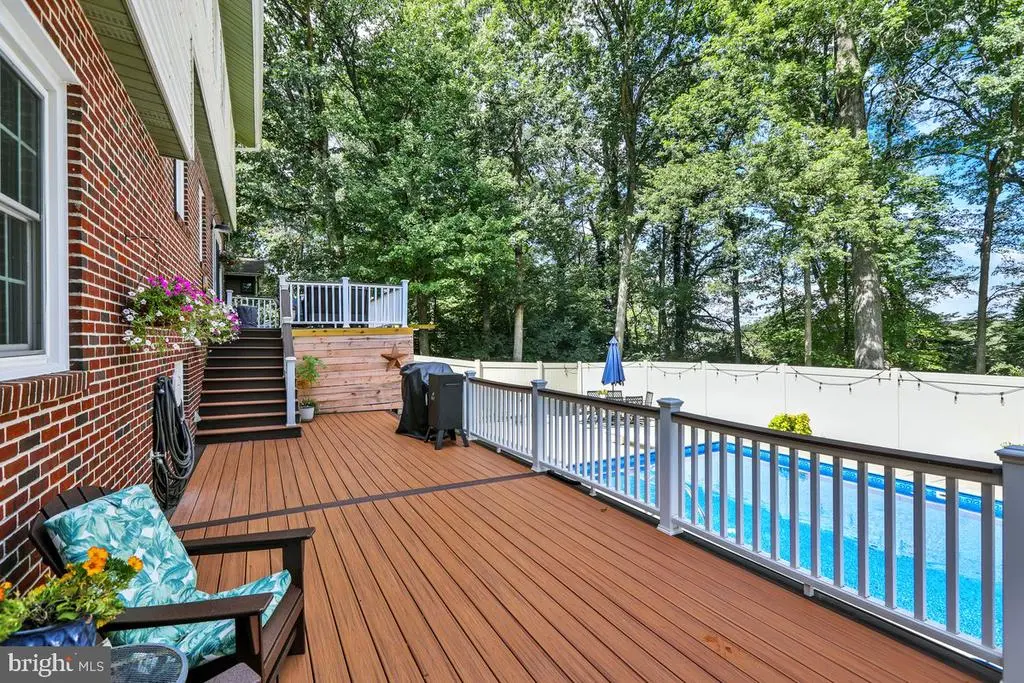 Welcome home to 13 Edgedale Court, located in the highly desirable Wyomissing Area School District. This spacious property offers four bedrooms, three full bathrooms, and one half bathroom, all situated on a quiet cul-de-sac with excellent curb appeal with professional landscaping. Inside, the charming foyer includes a convenient storage closet. The living room is bright and open, highlighted by a bay window that fills the space with natural light. The kitchen was fully remodeled in 2021 and features crisp white cabinets, seating at the counter, room for a dining table, and access to the large Trex deck that spans the length of the home. Just a few steps up, the primary suite offers plenty of room to relax, a walk in closet, and an updated full bathroom. On the next level, you’ll find the additional three bedrooms—including two with two closets—along with another full bathroom and a hall full bath. New carpet was installed in the upstairs bedrooms in 2023, while hardwood floors remain throughout the home under the LVT and carpet. The lower level provides a finished area with a cozy fireplace, a large window for natural light, and direct access to the garage. The wood stove insert and chimney are serviced annually while all mechanicals are professionally checked and serviced twice per year. The water heater and softener were replaced in 2024, ensuring peace of mind for years to come. Out back, enjoy your own private retreat. The fenced in inground pool features a newer liner, pump, salt system, and concrete work completed between 2022–2025. Surrounded by mature trees for privacy, the backyard is the perfect space for entertaining or relaxing. This home is within walking distance of Wyomissing Hills Elementary and Wyomissing Park, yet just minutes from shopping, restaurants, and major highways. Schedule your private showing today and experience the ideal combination of comfort, updates, and location in this Wyomissing gem!