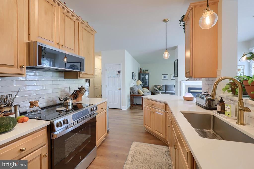 Discover unparalleled modern comfort in this stunning 3-bedroom, 2.5-bath residence located in the sought-after Thomas Gardens community. This meticulously maintained home offers a vibrant living experience, blending thoughtful upgrades with desirable features perfect for today's lifestyle. You will love this home from the minute you see it. As you enter the home, you will immediately notice the open floor plan with recently added luxury vinyl plank flooring and all of the natural light that flows into the home. The custom kitchen has just been upgraded to include Quartz countertops, deep sink, luxury vinyl plank flooring (easy on the feet), all stainless steel appliances,(including a low profile built-in microwave with a powerful exhaust fan), and new lighting—ideal for both cooking and entertaining. The range is currently electric, but a gas hook-up is also available. The cabinets include custom organizers and pull-out shelving. Enjoy your morning coffee in your eat-in kitchen by the gas fireplace or step out to your newly expanded patio with a privacy fence, and professionally designed landscaping. It is a perfect setting for grilling and relaxing. The floor plan boasts an expansive great room for large gatherings and can accommodate your large widescreen tv, as well as a more intimate living room in the rear of the home, highlighted by a dual sided fireplace . Upstairs, the expansive master suite boasts abundant walk-in closet space, made even better by a custom closet system. The main bedroom also includes a private bath with double sinks, jetted tub, walk-in shower, and tiled floors. Two additional bedrooms and a full bath provide comfortable accommodations for family or guests. The laundry is conveniently located on the main floor just inside the attached 1-car garage entrance. This home is equipped with gas heat, central a/c, and was recently upgraded with an high efficiency Lennox HVAC system. The HOA has recently replaced the roof and repaved the entire development. All of this, plus a prime location that is conveniently located minutes from major roads, health care facilities, parks for walking and riding bikes, as well as shopping and restaurants. This home offers an exceptional opportunity to experience sophisticated living in a highly desirable neighborhood at an incredible value.