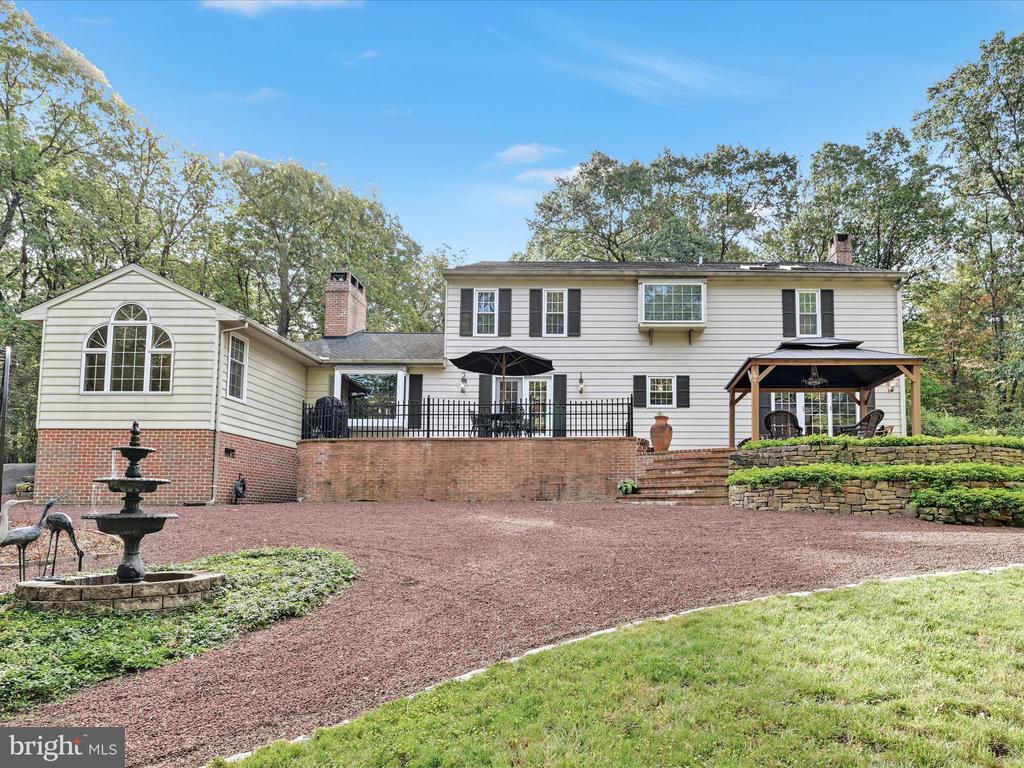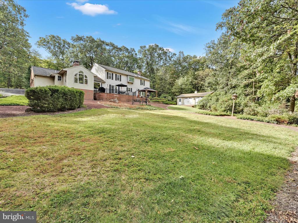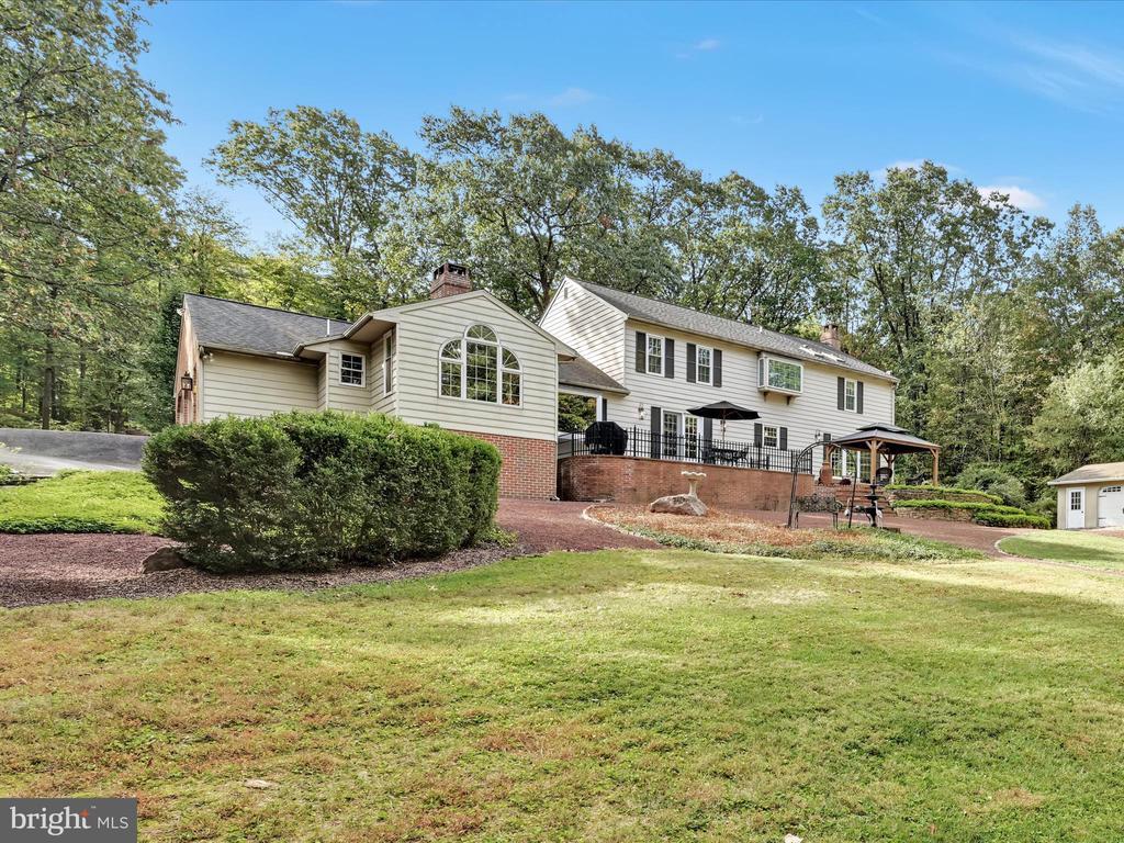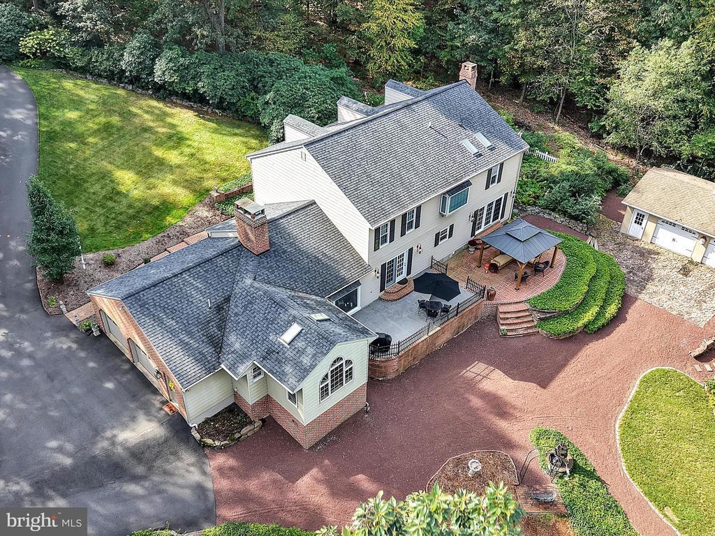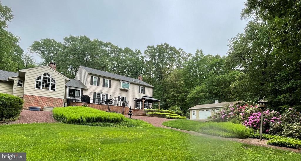 This Colonial Williamsburg-inspired custom home blends timeless design with modern comfort on a beautifully landscaped 3+ acre lot in Briarwood. A grand two-story foyer with a circular staircase welcomes guests into an elegant interior featuring solid oak wide-plank floors, custom millwork, and authentic hand crafted wood wainscoting in the foyer, dining room and great room. This home tells a story of true craftsmanship. The spacious kitchen is designed for everyday living and entertaining, featuring a custom storage island, brick columns and backsplash, and French doors leading to a brick and stamped-concrete patio. The family room offers cozy charm with beamed ceilings, built-ins, and a Quadra Fire wood stove (installed in 2019) set in a colonial walk-in brick fireplace- -perfectly heating the family room and adjoining kitchen on chilly nights. A formal dining room showcases a corner cabinet, elegant crystal chandelier, fireplace (ready for electric logs), wainscoting, wide-plank oak floors, and crown molding. The great room continues the craftsmanship of the home with a brick fireplace encased in custom trim work (propane logs, owned propane tank), more wide-plank oak floors, and triple French doors leading to the patio with gazebo (included in sale). The main level also includes a full bath, laundry (washer/dryer included), and a light-filled office or optional 4th bedroom with skylights, built-ins, closet, and new LVP flooring (2024). Upstairs, find three bedrooms and two full baths. Bedroom 1 offers a cedar walk in closet, new carpet, and access to the hall bath (partially renovated in 2019). Bedroom 2 includes double closets and new carpet. The primary suite features pine floors, crown molding, a cedar walk in closet, and a renovated bath (2022) with skylights, double vanity, soaking tub, and glass shower. Finishing the 2nd floor is door access to a walk-up attic with excellent potential for future finished space. The home includes an attached oversized 2 car garage with attic storage and electric panel (a second panel is for generator hookup, set up for a portable generator). A 22x30 detached 2 car garage offers 100 amp service- ideal for hobbyists or car enthusiasts. The two-tiered patio at the back of home offers peace and quiet. Enjoy summer evenings under the gazebo reading a book and listening to the crickets. The patio has lush views of the woods and an abundance of flowers and fragrant butterfly bushes behind the fieldstone walls. A natural stone fire pit is tucked away behind the wood pergola. Absolutely perfect for everyday living and entertaining! New central air unit and ductwork in 2020; new radon fan 2025; well pump & tank replaced 2025; repaved driveway 2023; roof replaced 2019. Located in the peaceful Briarwood community, just minutes from the PA Turnpike and major commuter routes, with nearby conveniences including Lowes, Walmart, Starbucks, and local restaurants. Outdoor recreation abounds with French Creek and Hopewell State Parks, Twin Valley Pool, and two private golf courses all close by. Served by Twin Valley Schools with private school options, all within only a few miles. OPEN HOUSE: SUNDAY, OCT. 26TH 1-4PM OFFER DEADLINE IS MONDAY, OCT. 27 AT 12NOON.