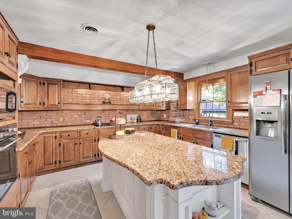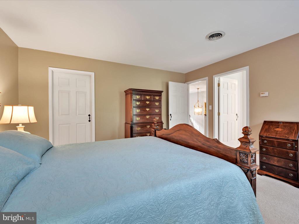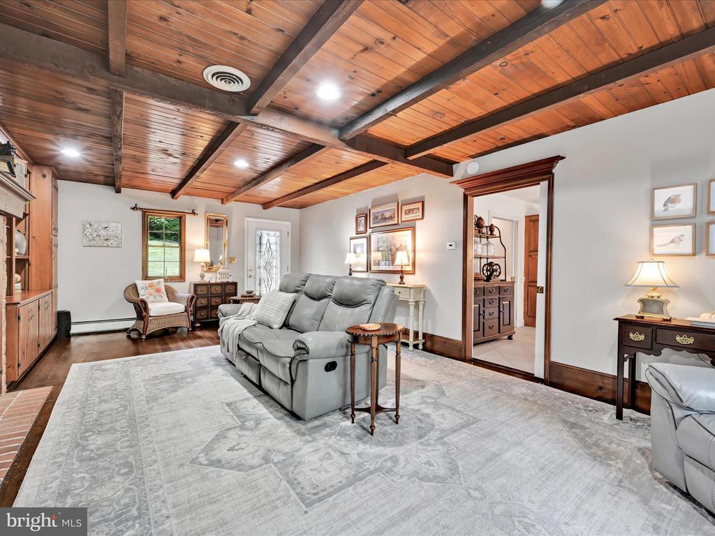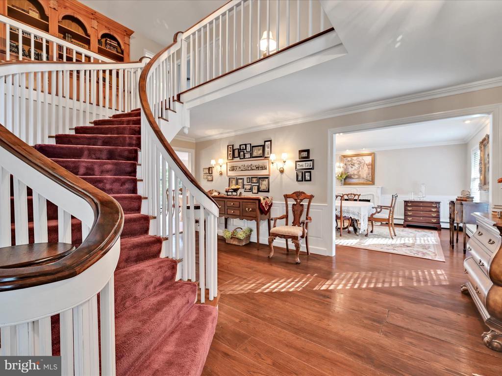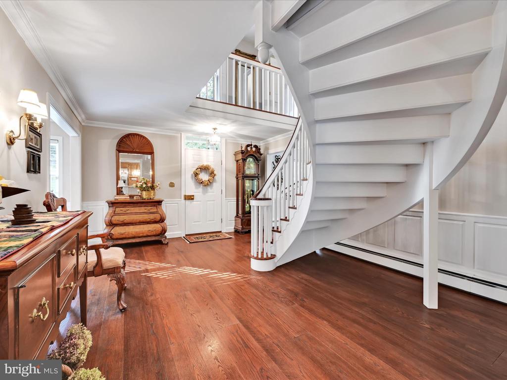 This Colonial Williamsburg-inspired custom home blends timeless design with modern comfort on a beautifully landscaped 3+ acre lot in Briarwood. A grand two-story foyer with a circular staircase welcomes guests into an elegant interior featuring solid oak wide-plank floors, custom millwork, and authentic hand crafted wood wainscoting in the foyer, dining room and great room. This home tells a story of true craftsmanship. The spacious kitchen is designed for everyday living and entertaining, featuring a custom storage island, brick columns and backsplash, and French doors leading to a brick and stamped-concrete patio. The family room offers cozy charm with beamed ceilings, built-ins, and a Quadra Fire wood stove (installed in 2019) set in a colonial walk-in brick fireplace- -perfectly heating the family room and adjoining kitchen on chilly nights. A formal dining room showcases a corner cabinet, elegant crystal chandelier, fireplace (ready for electric logs), wainscoting, wide-plank oak floors, and crown molding. The great room continues the craftsmanship of the home with a brick fireplace encased in custom trim work (propane logs, owned propane tank), more wide-plank oak floors, and triple French doors leading to the patio with gazebo (included in sale). The main level also includes a full bath, laundry (washer/dryer included), and a light-filled office or optional 4th bedroom with skylights, built-ins, closet, and new LVP flooring (2024). Upstairs, find three bedrooms and two full baths. Bedroom 1 offers a cedar walk in closet, new carpet, and access to the hall bath (partially renovated in 2019). Bedroom 2 includes double closets and new carpet. The primary suite features pine floors, crown molding, a cedar walk in closet, and a renovated bath (2022) with skylights, double vanity, soaking tub, and glass shower. Finishing the 2nd floor is door access to a walk-up attic with excellent potential for future finished space. The home includes an attached oversized 2 car garage with attic storage and electric panel (a second panel is for generator hookup, set up for a portable generator). A 22x30 detached 2 car garage offers 100 amp service- ideal for hobbyists or car enthusiasts. The two-tiered patio at the back of home offers peace and quiet. Enjoy summer evenings under the gazebo reading a book and listening to the crickets. The patio has lush views of the woods and an abundance of flowers and fragrant butterfly bushes behind the fieldstone walls. A natural stone fire pit is tucked away behind the wood pergola. Absolutely perfect for everyday living and entertaining! New central air unit and ductwork in 2020; new radon fan 2025; well pump & tank replaced 2025; repaved driveway 2023; roof replaced 2019. Located in the peaceful Briarwood community, just minutes from the PA Turnpike and major commuter routes, with nearby conveniences including Lowes, Walmart, Starbucks, and local restaurants. Outdoor recreation abounds with French Creek and Hopewell State Parks, Twin Valley Pool, and two private golf courses all close by. Served by Twin Valley Schools with private school options, all within only a few miles. OPEN HOUSE: SUNDAY, OCT. 26TH 1-4PM OFFER DEADLINE IS MONDAY, OCT. 27 AT 12NOON.