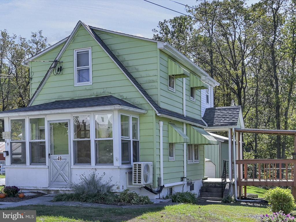 Welcome to 49 Poplar Ave. This charming home offers a generous sized bedroom on the 2nd floor along with a large full bathroom with a walk in shower. Enjoy the convenience of a full bathroom on the first floor along with the possibility of using one of the adjoining rooms as a second bedroom. This well-cared-for home offers nearly 950 sq ft of living space. Enjoy a flexible layout with brand new mini-splits for heat and A/C , and efficient oil radiant heat in the first floor bathroom,. The walk-out basement offers additional utility and storage space. Outside, relax on the enclosed porch or side deck overlooking a spacious 0.27-acre lot. A detached oversized garage with over 700 sq feet and dual access with a 10” door adds value for hobbyists or extra parking. Located in Oley Valley School District, this move-in-ready home has low property taxes. **Highest and Best** by 3 P.M. Wednesday Oct. 22.